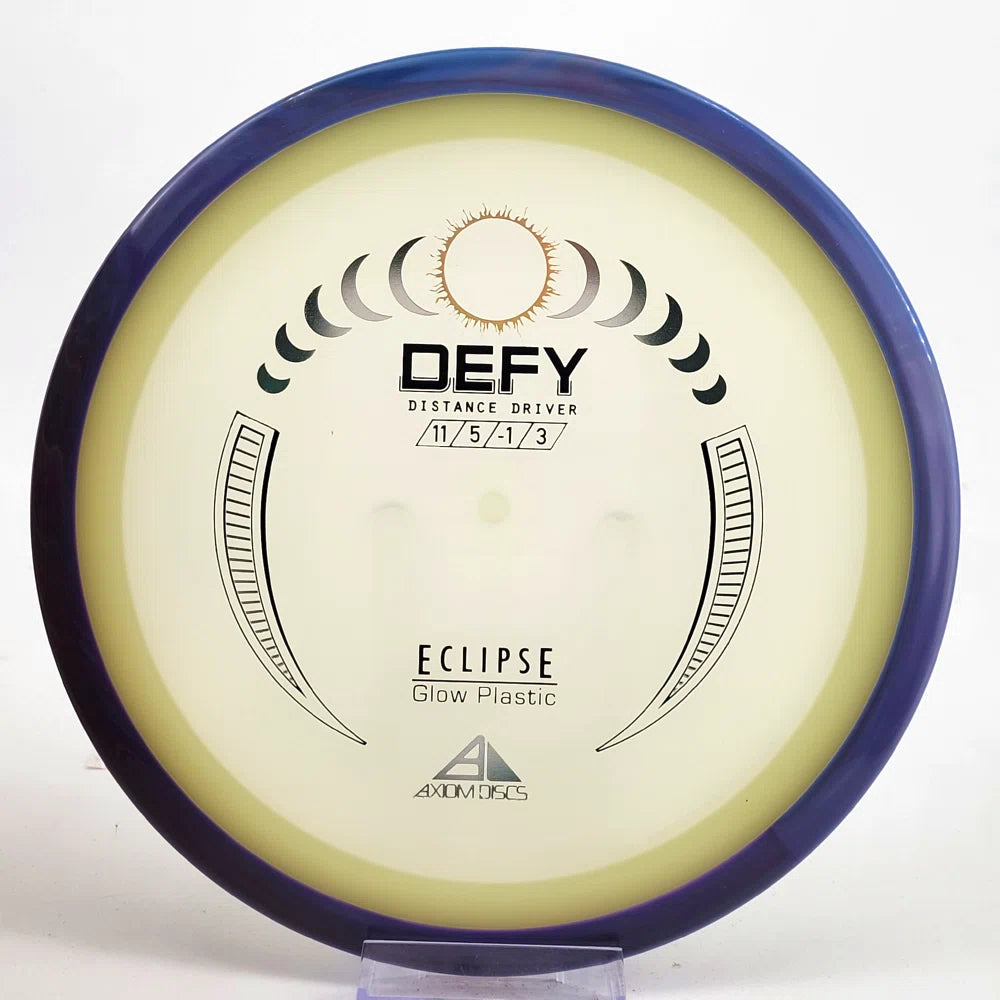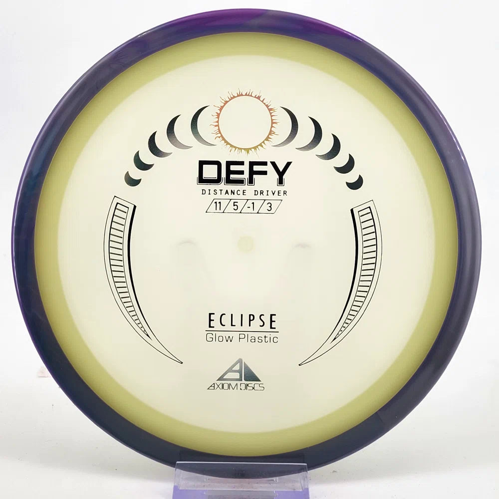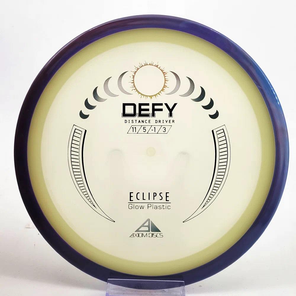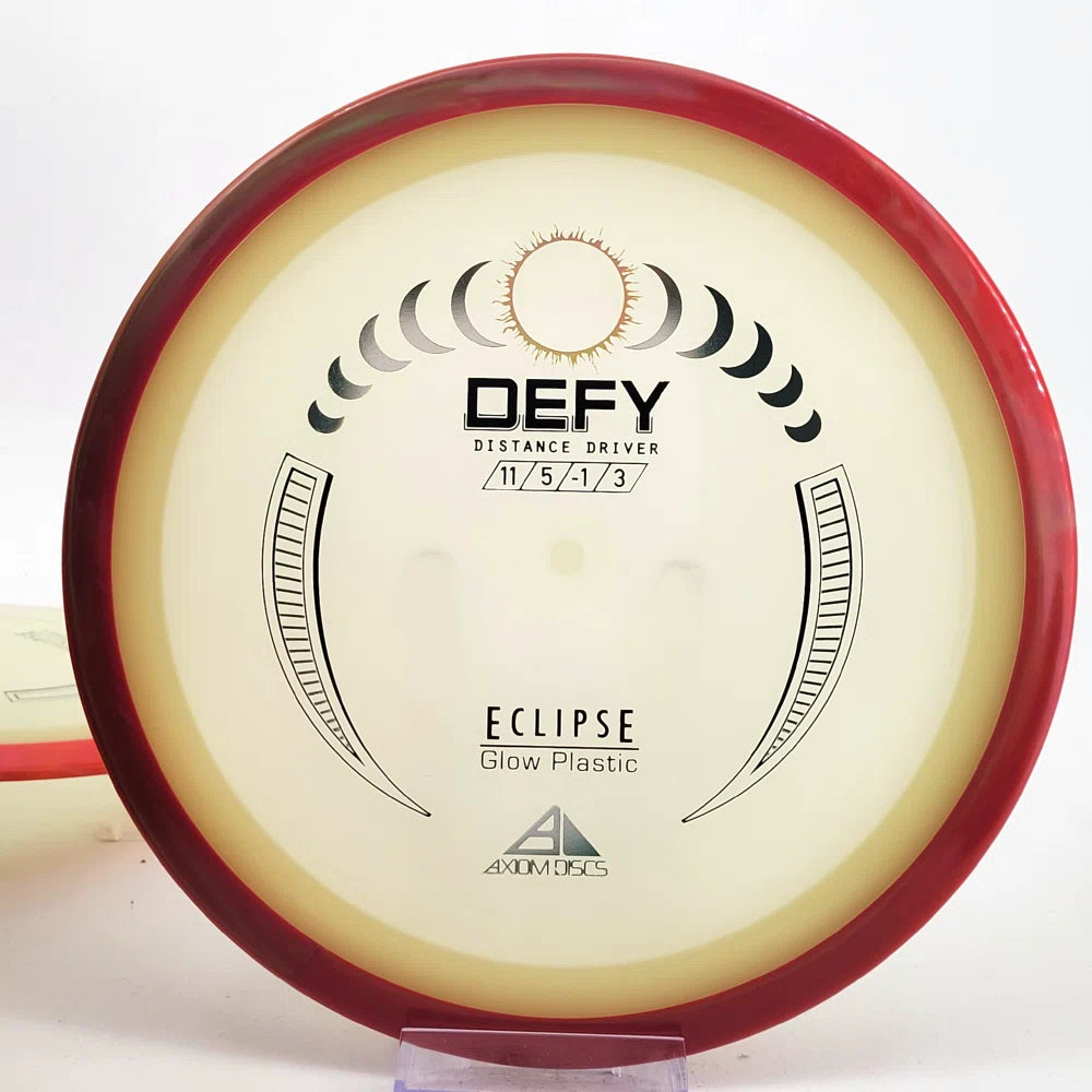 The Axiom Defy is now available in our industry-leading Eclipse plastic all year! Known for reliable distance, whether you’re throwing into the wind or with power, the Defy is perfect for long, straight, high-power shots with a forward-pushing fade and reliable lower-powered overstability. Defy headwinds and the darkness with the Eclipse Defy!