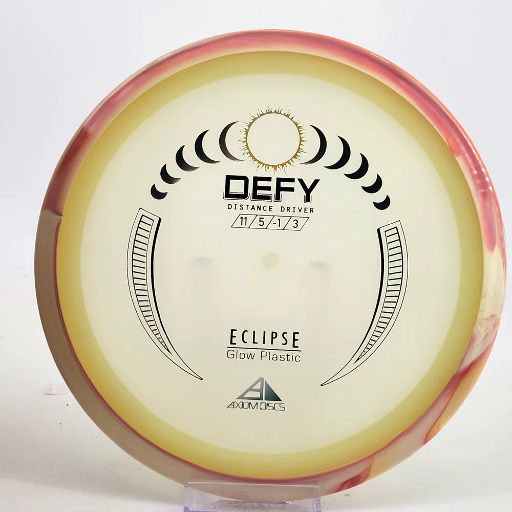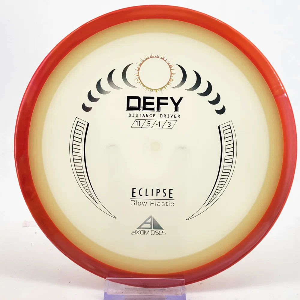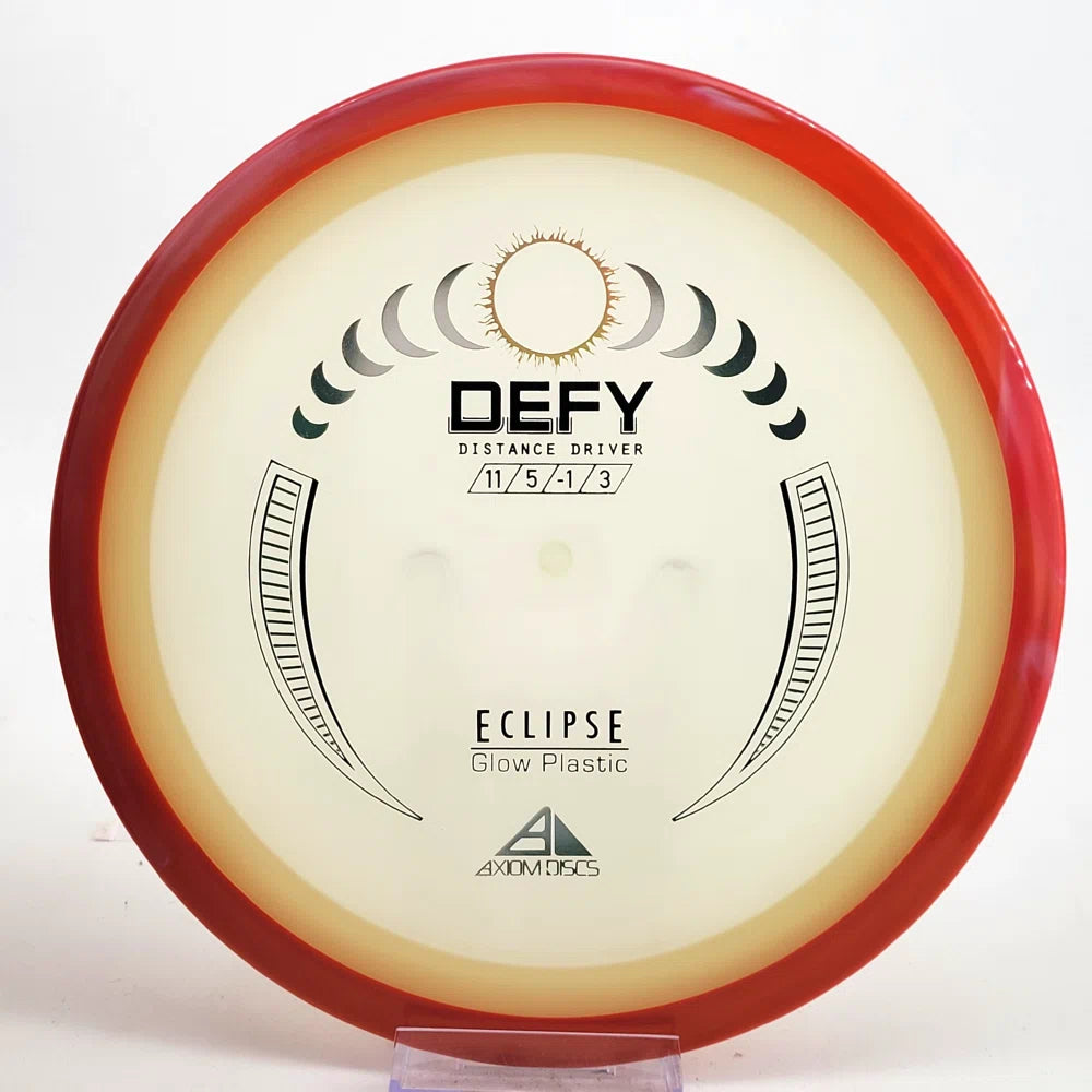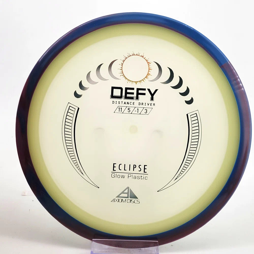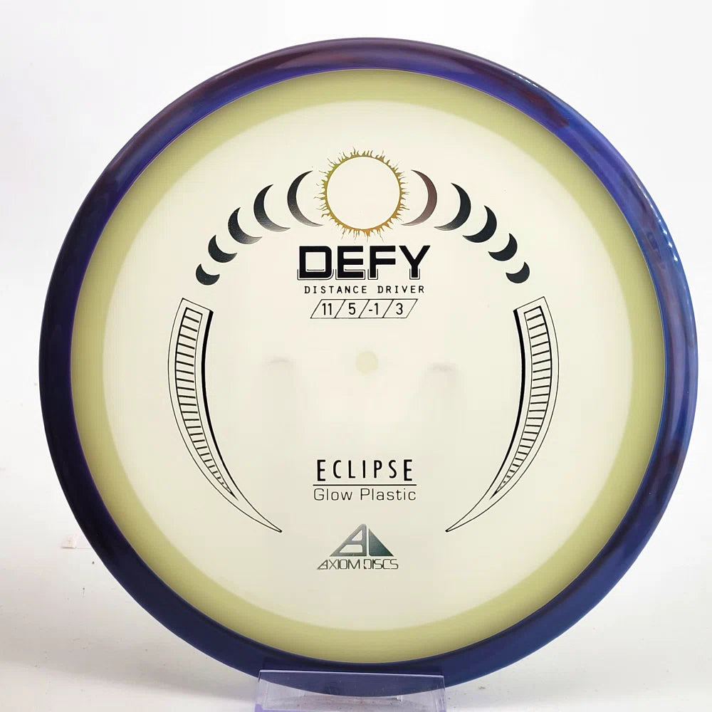 The Axiom Defy is now available in our industry-leading Eclipse plastic all year! Known for reliable distance, whether you’re throwing into the wind or with power, the Defy is perfect for long, straight, high-power shots with a forward-pushing fade and reliable lower-powered overstability. Defy headwinds and the darkness with the Eclipse Defy!