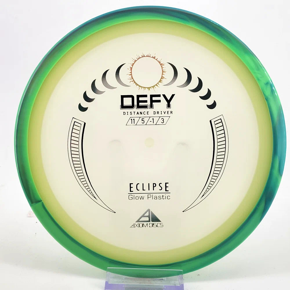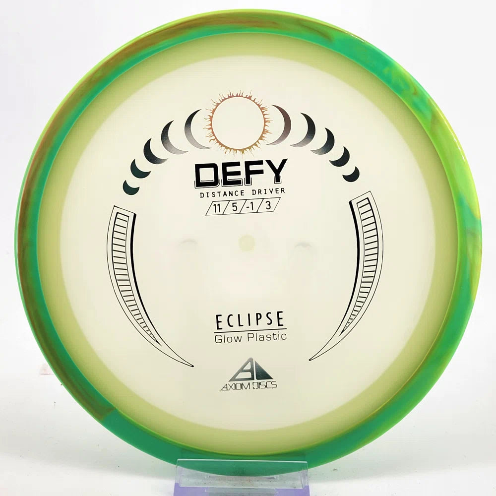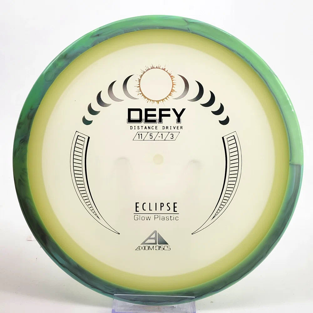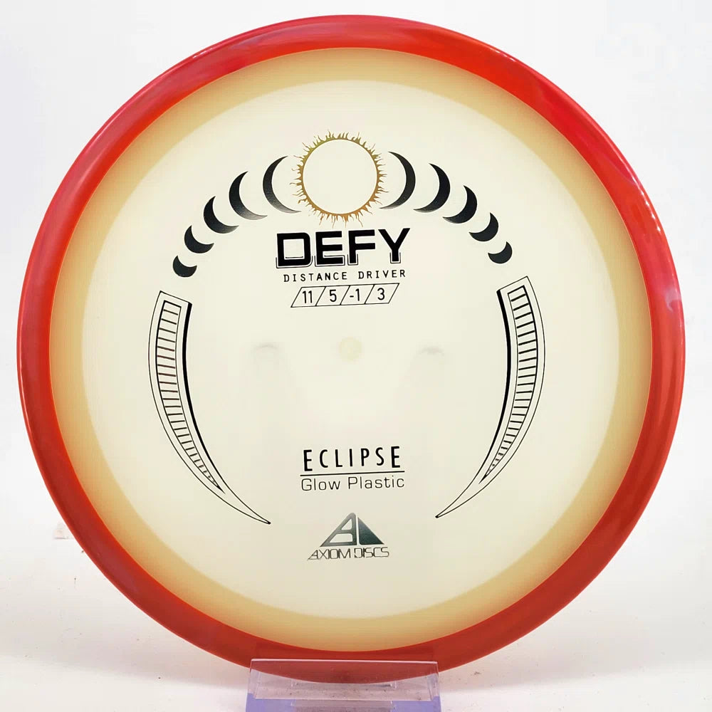 The Axiom Defy is now available in our industry-leading Eclipse plastic all year! Known for reliable distance, whether you’re throwing into the wind or with power, the Defy is perfect for long, straight, high-power shots with a forward-pushing fade and reliable lower-powered overstability. Defy headwinds and the darkness with the Eclipse Defy!