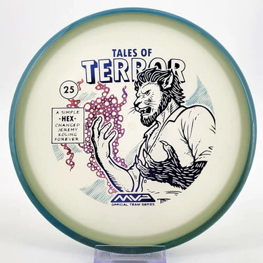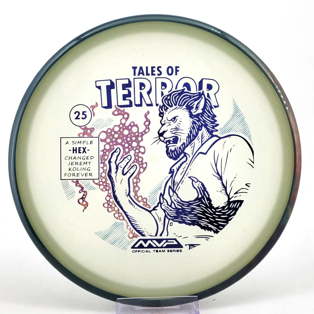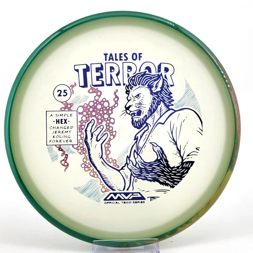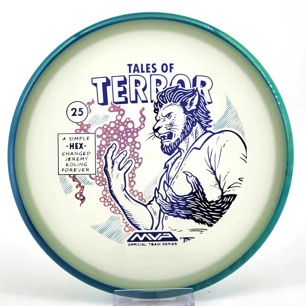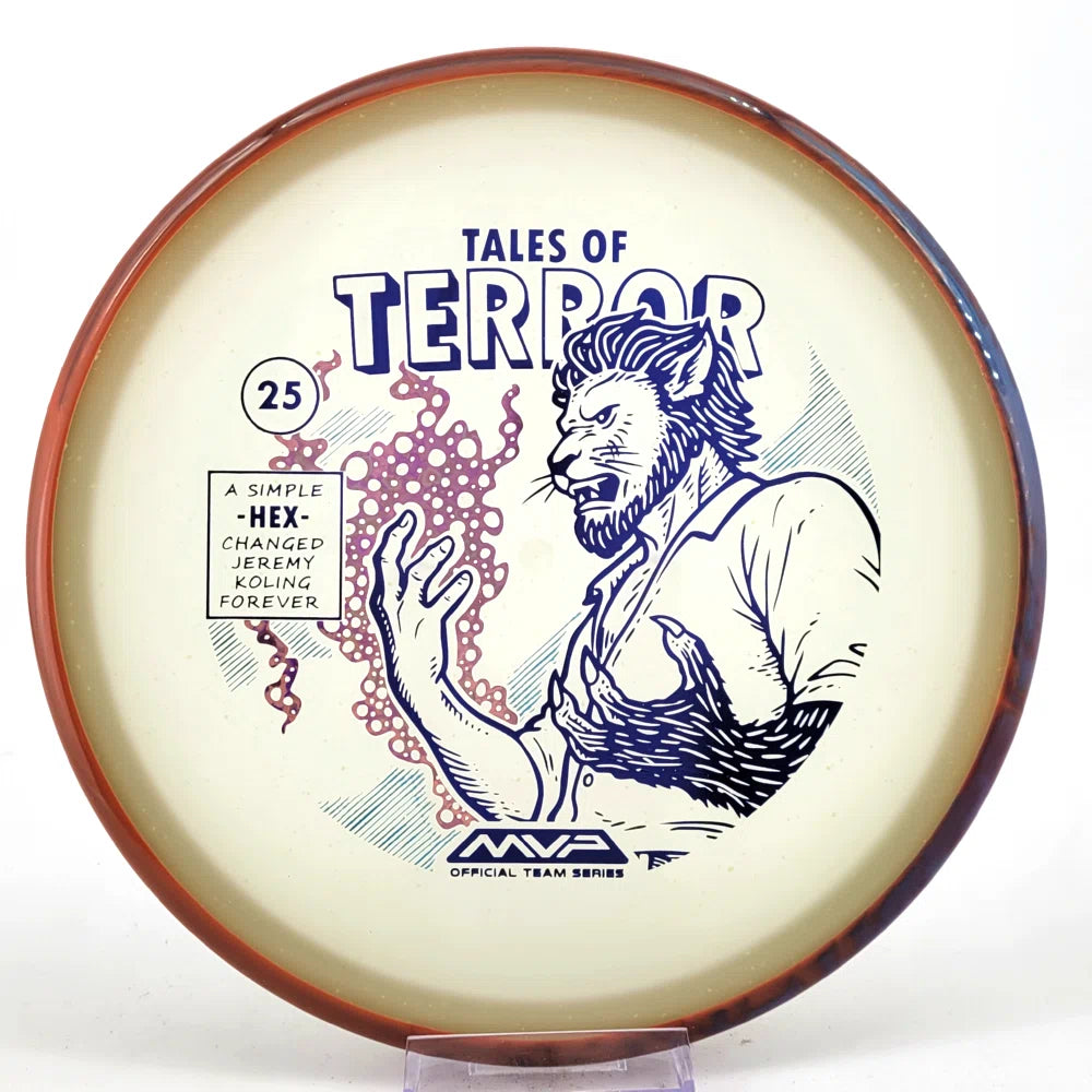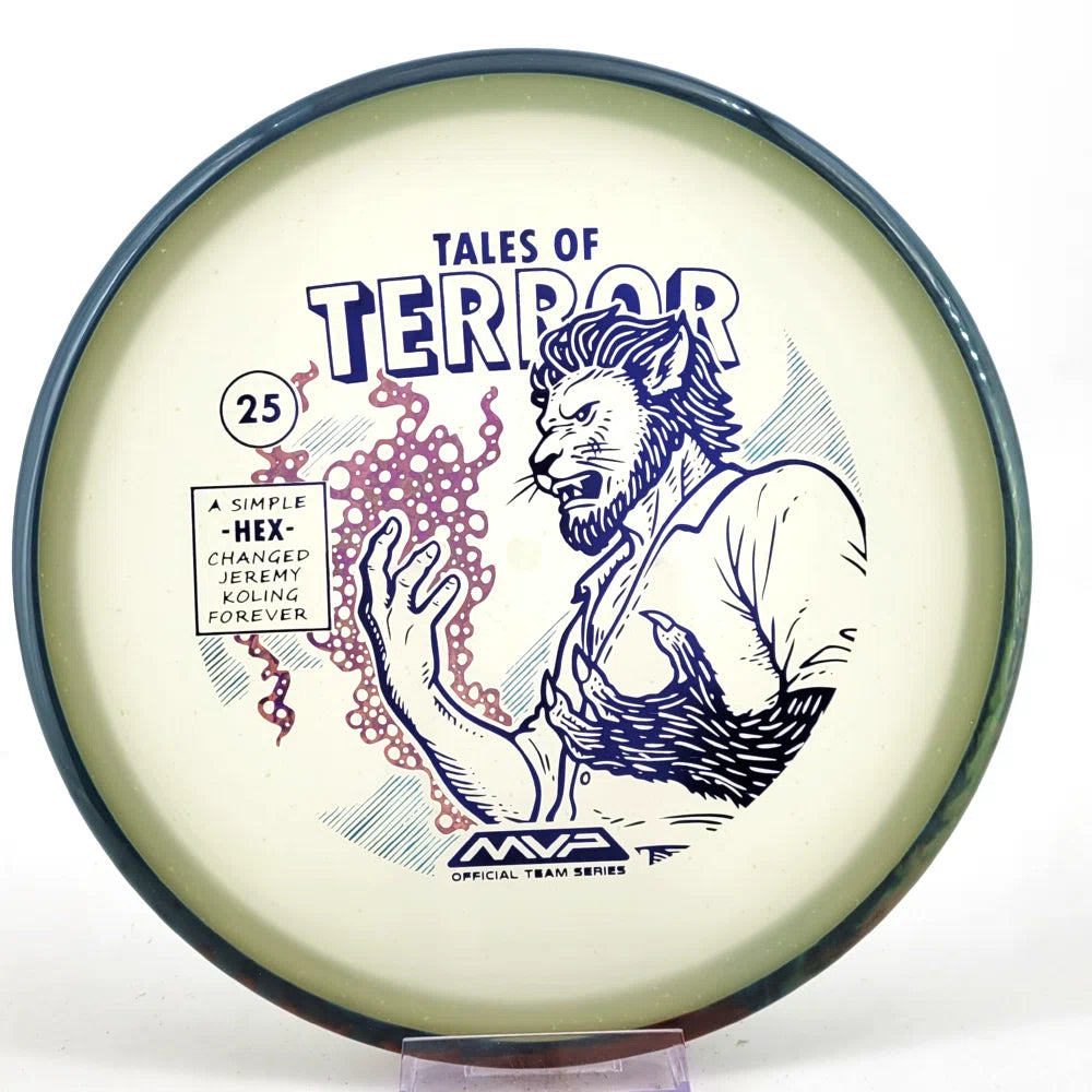 DoubleRam Design shows us the terrifying alternate origin of Jeremy Koling’s childhood nickname - Lionheart - on the new Particle Eclipse Hex! Made with our industry-leading Eclipse plastic, this new blend of glow with colorful particles inside gives the disc its own magical feel.