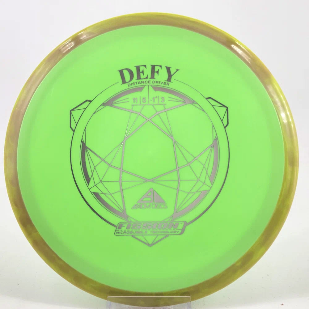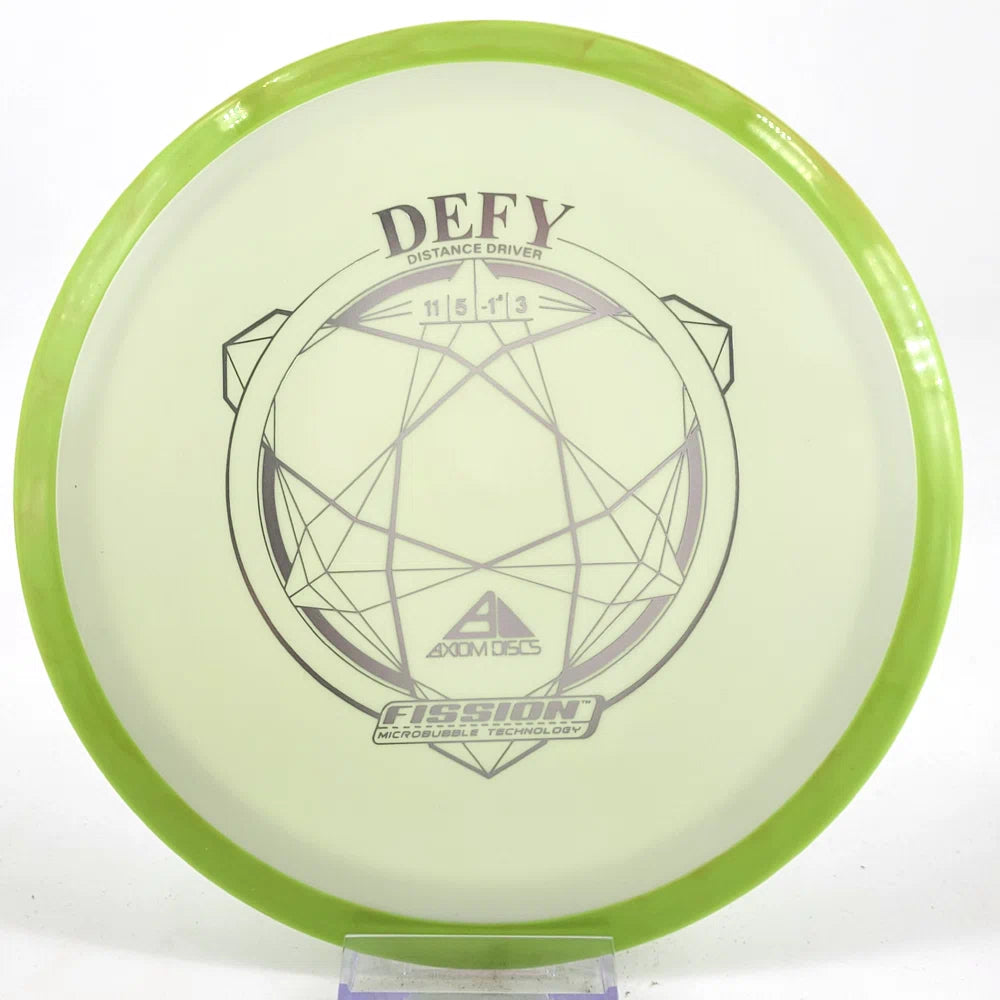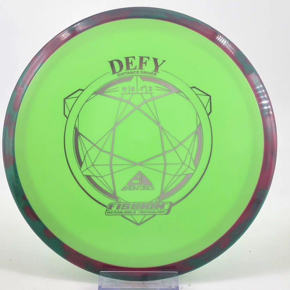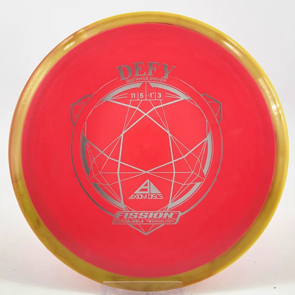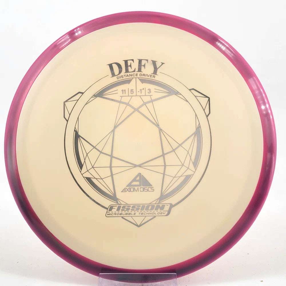 A new introduction to the Fission plastic family is here - the Fission Defy! Debuting as a stable-overstable distance driver, the Axiom Defy continues to be a driver you can depend on to not turn away from its flight path. With flight numbers of 11 | 5 | -1.5 | 3, the Defy in Fission plastic is slightly less stable, making it a great choice for easy but reliable distance for all arm speeds. The Fission Defy will still remain the line-locking, forward-finishing driver it’s expected to be, but now - thanks to it being available in lighter weights - more players can enjoy it! Experience the benefits of Fission technology for yourself, and try the Fission Defy today!