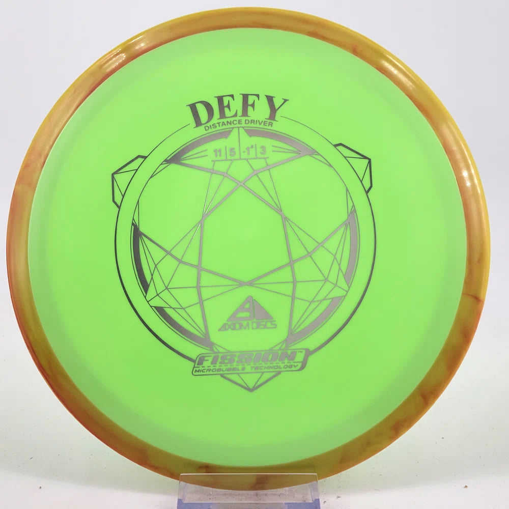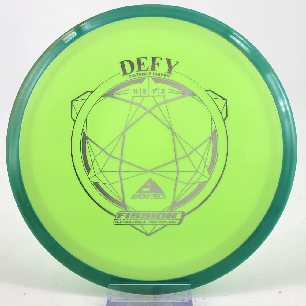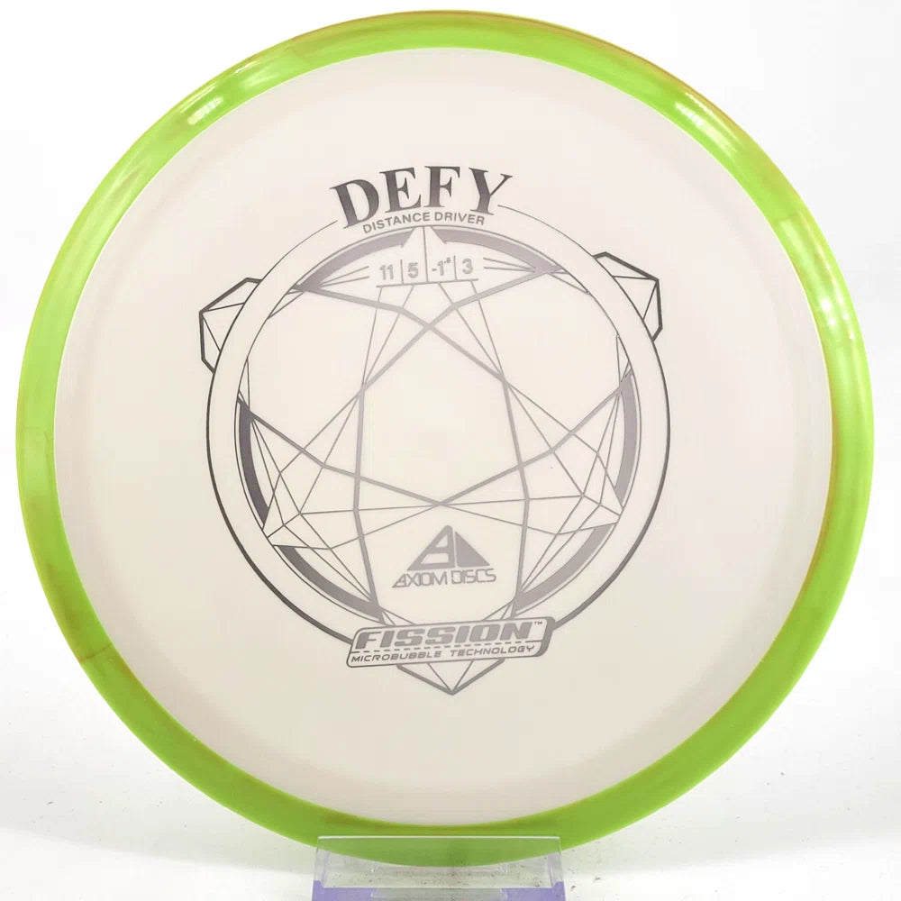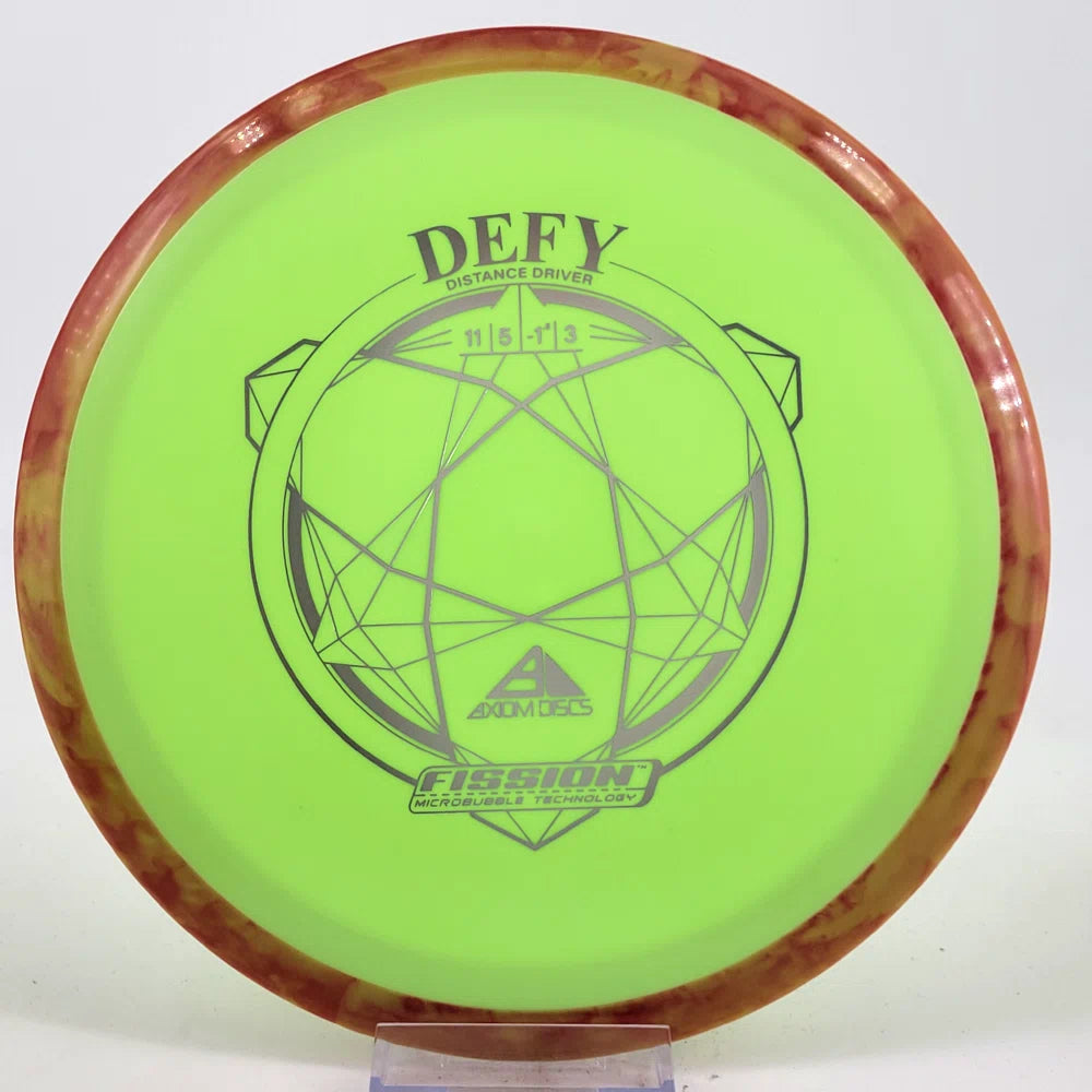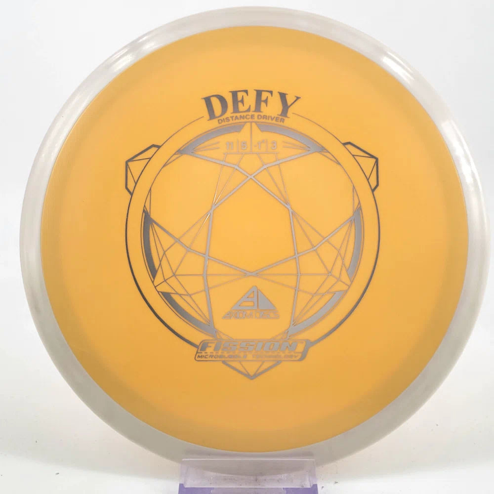 A new introduction to the Fission plastic family is here - the Fission Defy! Debuting as a stable-overstable distance driver, the Axiom Defy continues to be a driver you can depend on to not turn away from its flight path. With flight numbers of 11 | 5 | -1.5 | 3, the Defy in Fission plastic is slightly less stable, making it a great choice for easy but reliable distance for all arm speeds. The Fission Defy will still remain the line-locking, forward-finishing driver it’s expected to be, but now - thanks to it being available in lighter weights - more players can enjoy it! Experience the benefits of Fission technology for yourself, and try the Fission Defy today!