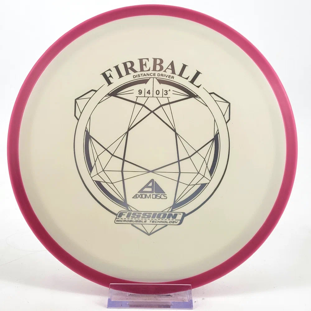The Fireball is overstable and wind-resistant like the MVP Motion but has an overall straighter and longer flight profile. The Fireball has a longer forward push during its early stage of fade, where the Motion would have begun a long gradual fade. At the end of its flight, the Axiom Fireball will drop later and more abruptly than the Motion.