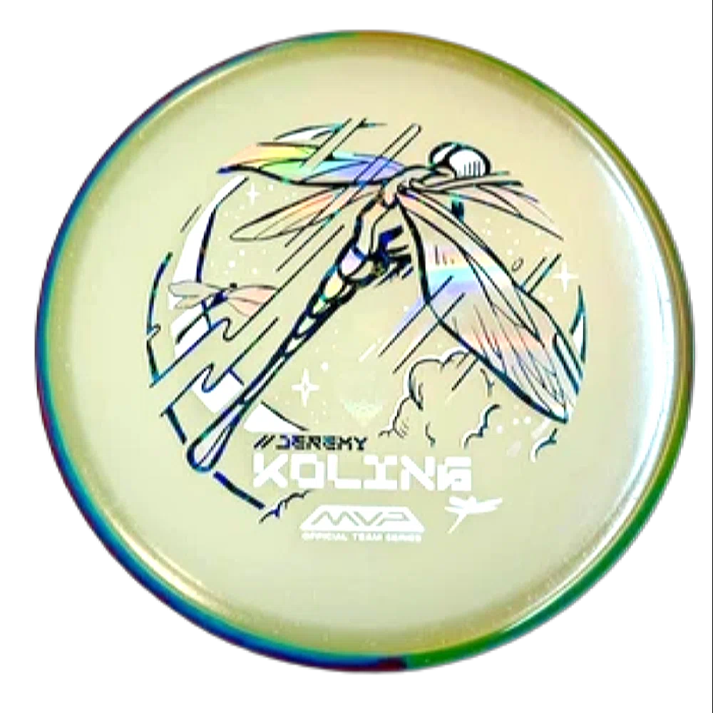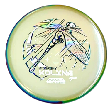 The Particle Eclipse Tempo – Jeremy Koling Team Series “Dragonfly” is the ultimate tool for controlled power. Just like "Big Jerm," this disc delivers reliable overstability and precision for confident approach shots, pinpoint forehands, and cutting through headwinds. Molded in MVP’s brightest Eclipse glow plastic, it provides exceptional grip and lights up the course long after sundown. The beautiful "Dragonfly" stamp reflects Jeremy’s smooth, fluid style, embodying a perfect balance of grace and quiet strength on the course.