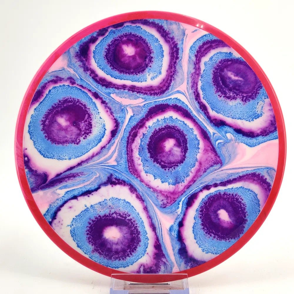 Each disc is a singular masterpiece with its custom dye by Dyelicious Discs. They are a symphony of color, ensuring no two discs are ever exactly alike. The patterns, ranging from intricate mosaics to mesmerizing swirls, create a unique blend of hues, making every throw a display of individual artistry.