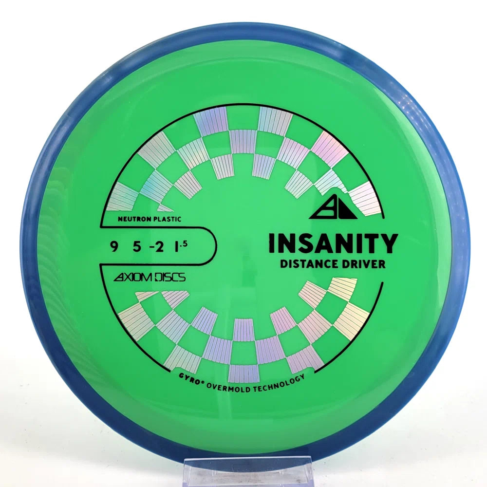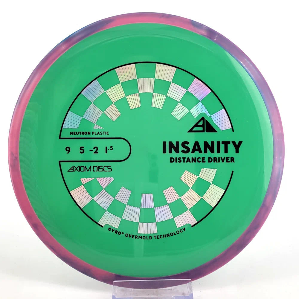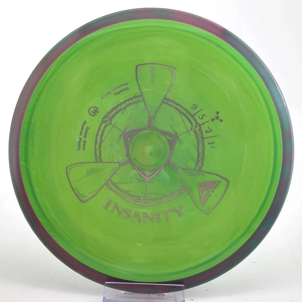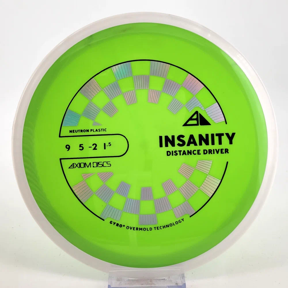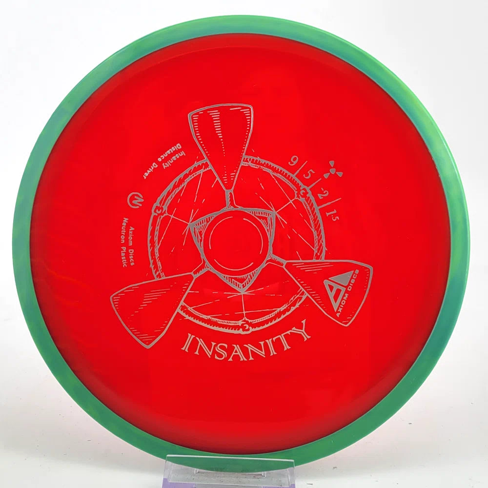 The Axiom Insanity is best described as a worn-in MVP Inertia, with slightly more high-speed turn and a diminished fade. For average power throwers, the Insanity will be remarkably straight, while high power throwers can execute precise flip and turnover lines with ease. Whether you’re looking for that sweet-spot worn disc flight, or you’re looking to achieve bigger Inertia lines with less power, give Insanity a shot.