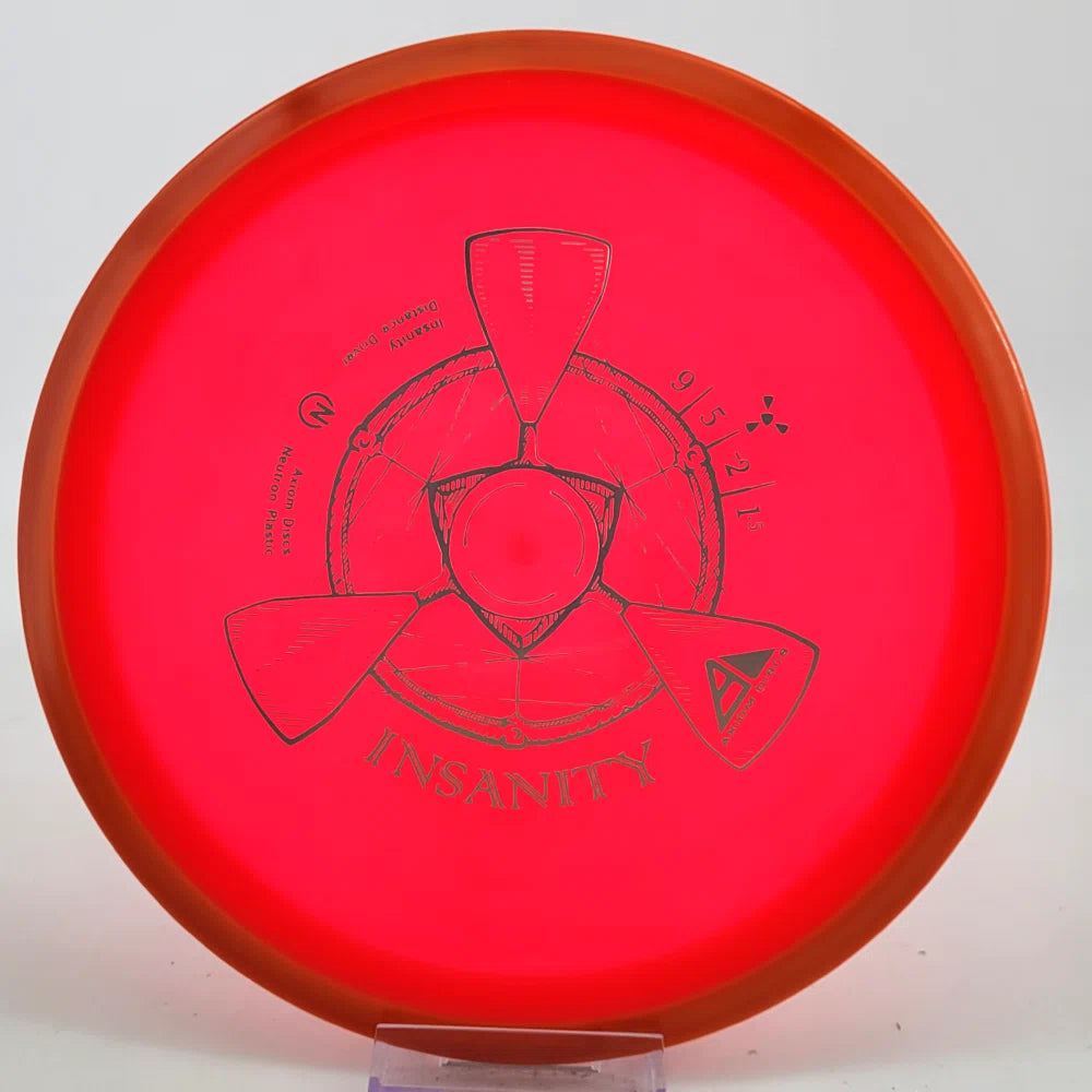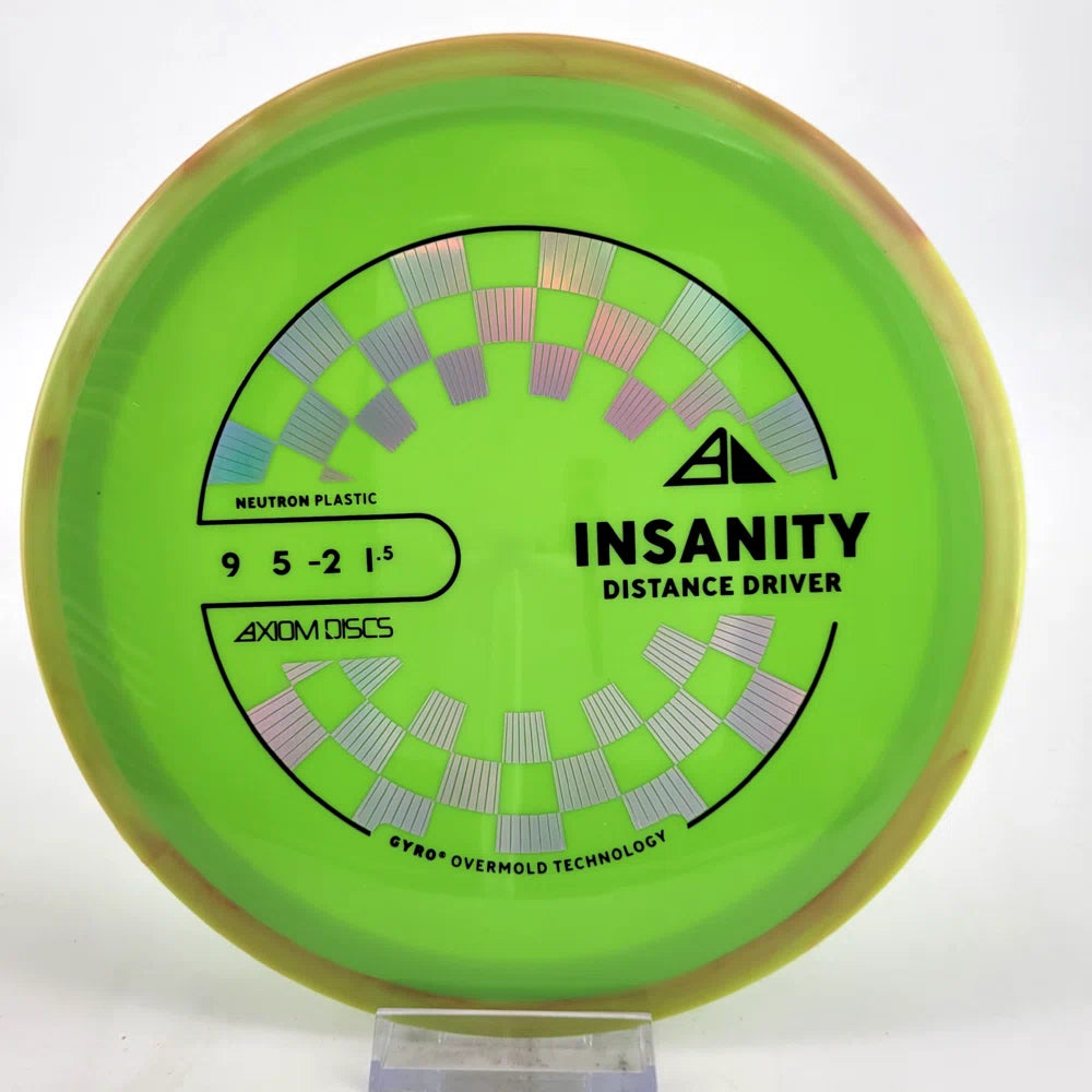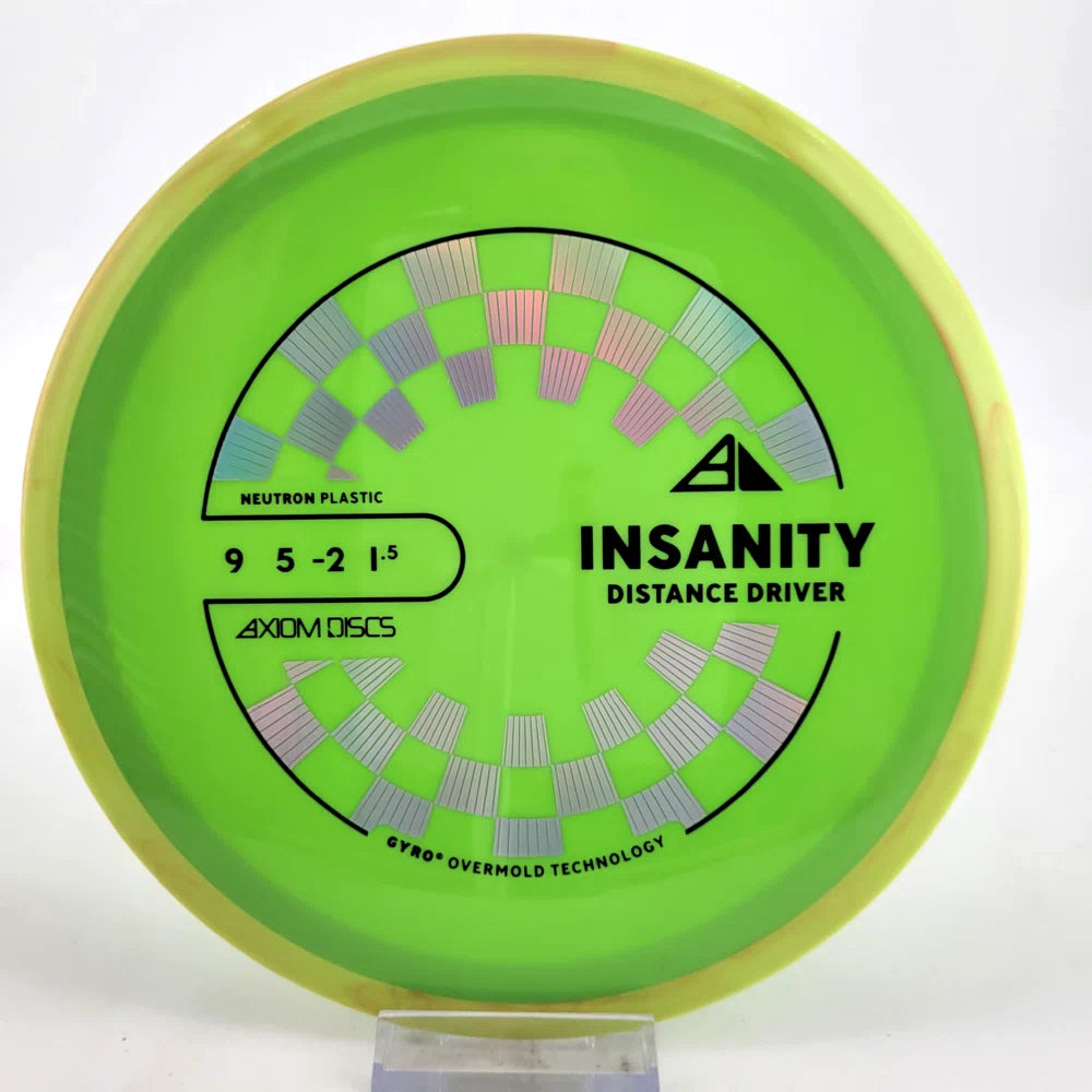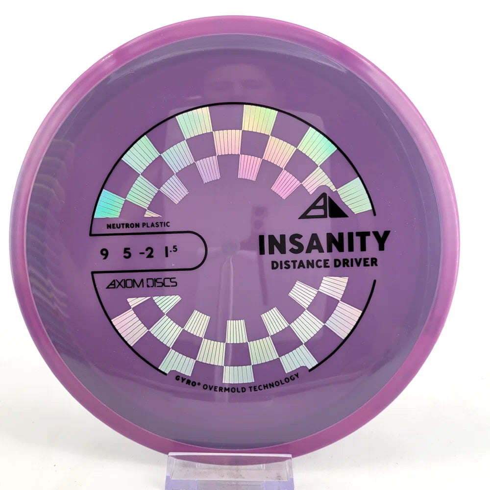 The Axiom Insanity is best described as a worn-in MVP Inertia, with slightly more high-speed turn and a diminished fade. For average power throwers, the Insanity will be remarkably straight, while high power throwers can execute precise flip and turnover lines with ease. Whether you’re looking for that sweet-spot worn disc flight, or you’re looking to achieve bigger Inertia lines with less power, give Insanity a shot.