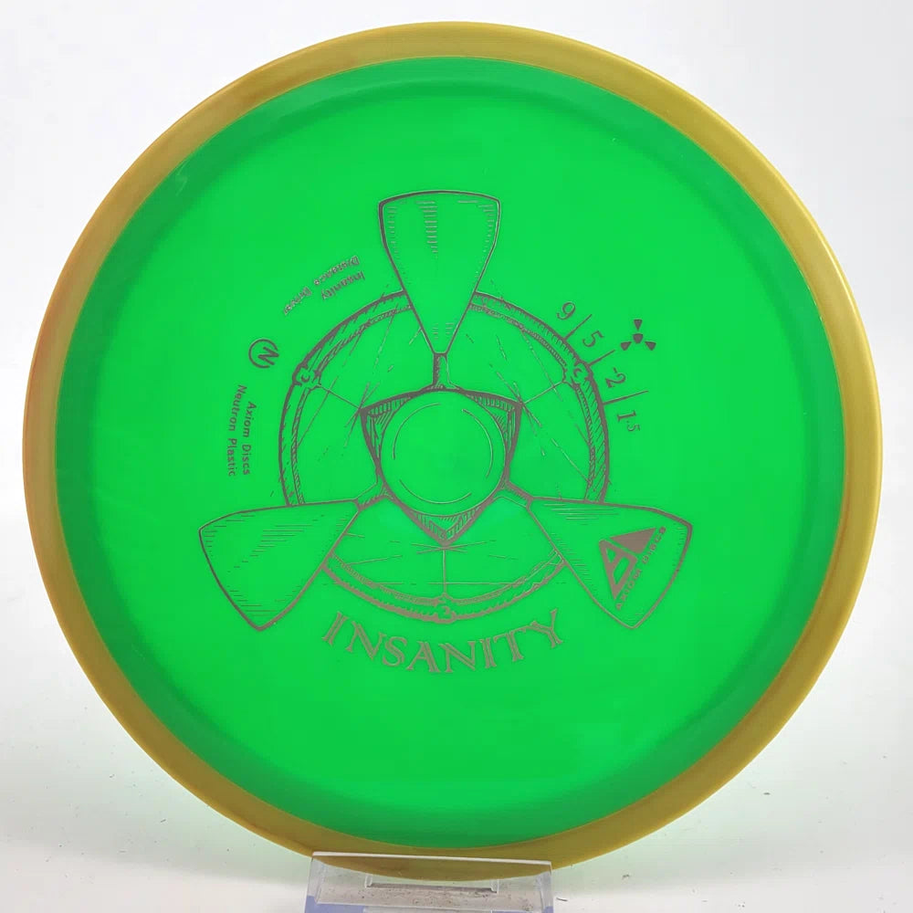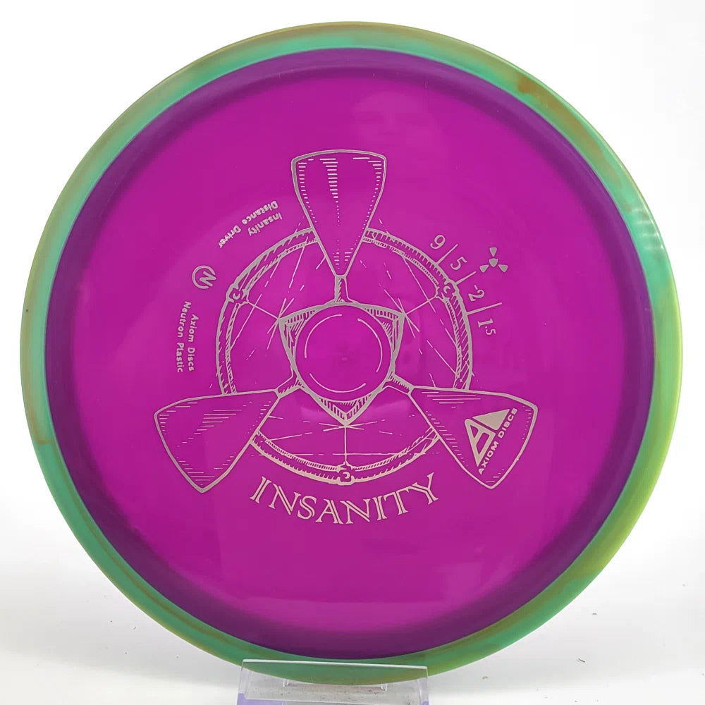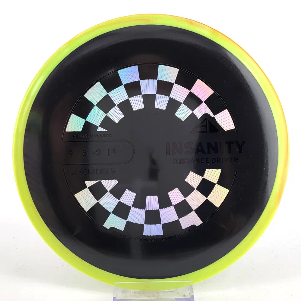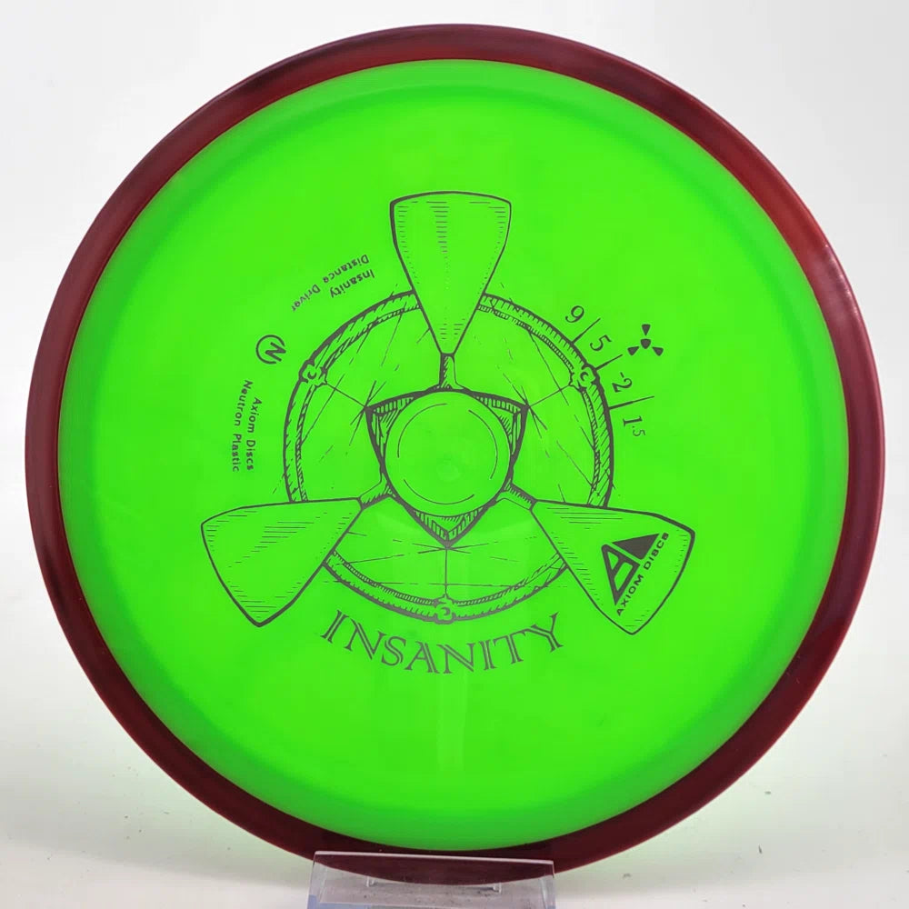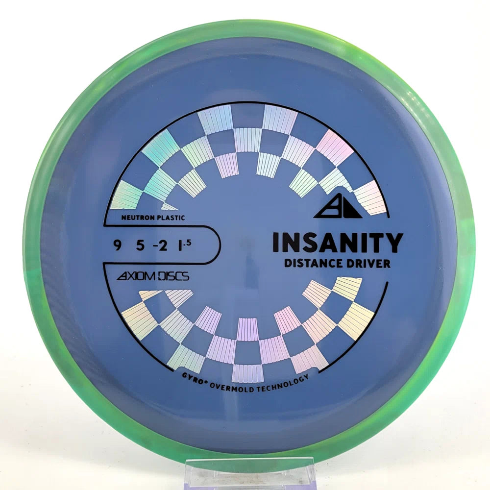 The Axiom Insanity is best described as a worn-in MVP Inertia, with slightly more high-speed turn and a diminished fade. For average power throwers, the Insanity will be remarkably straight, while high power throwers can execute precise flip and turnover lines with ease. Whether you’re looking for that sweet-spot worn disc flight, or you’re looking to achieve bigger Inertia lines with less power, give Insanity a shot.