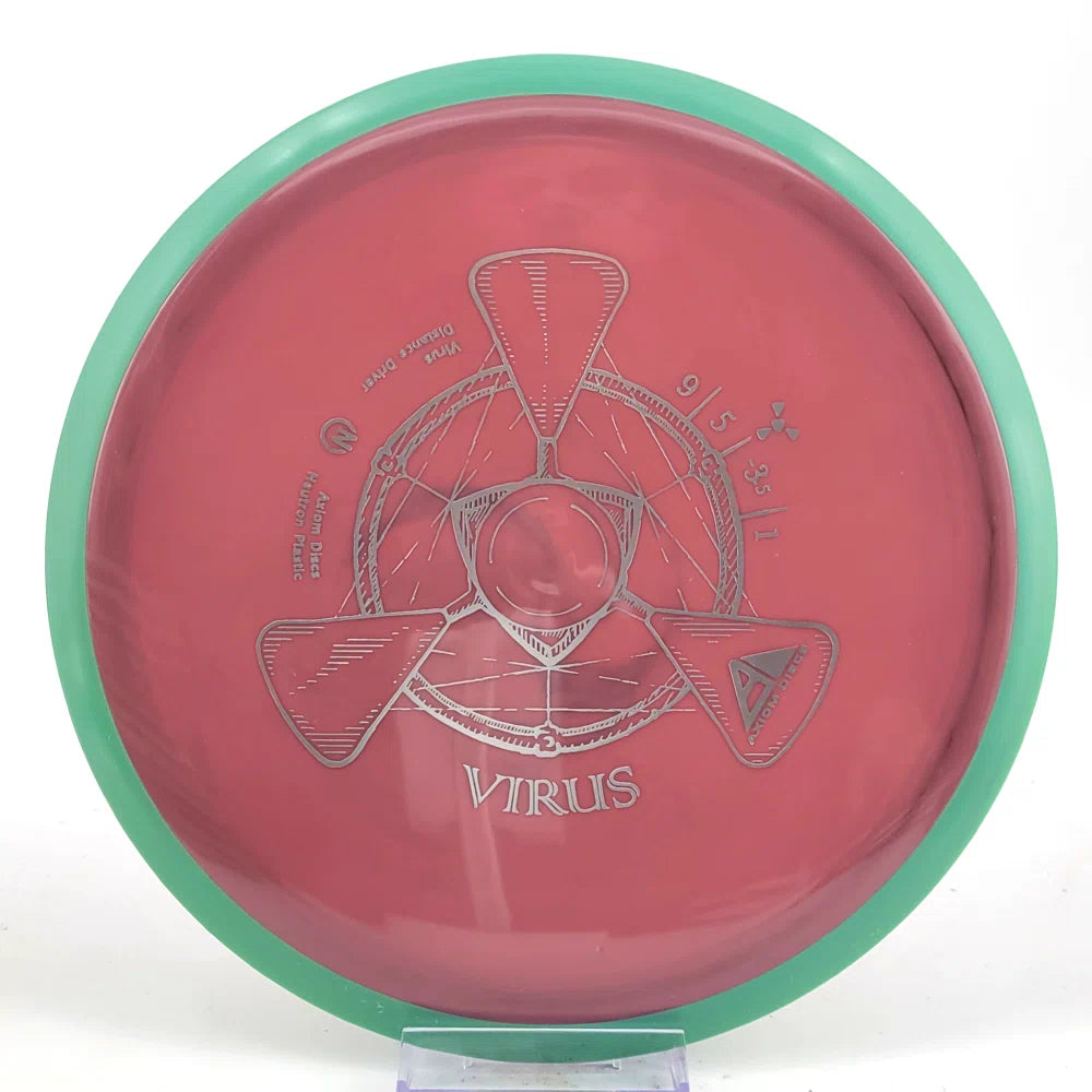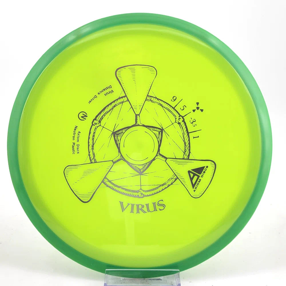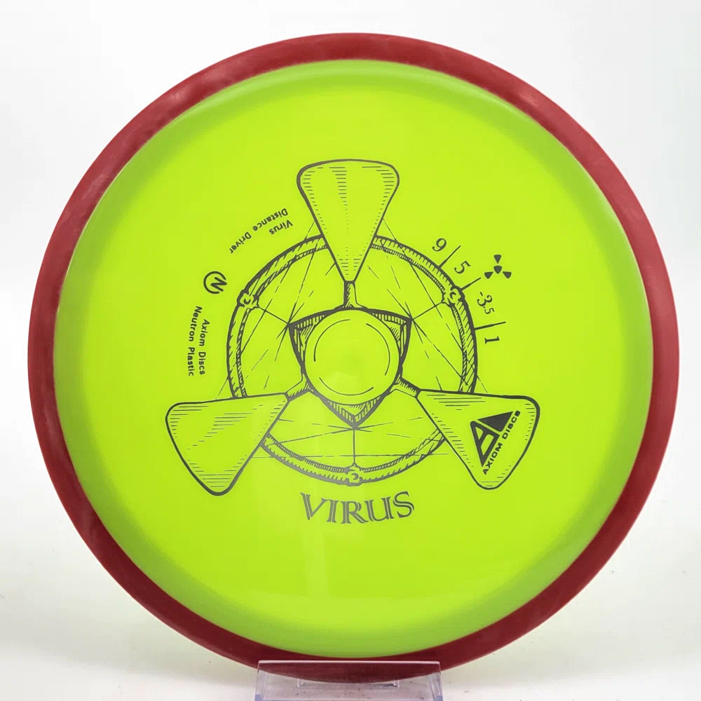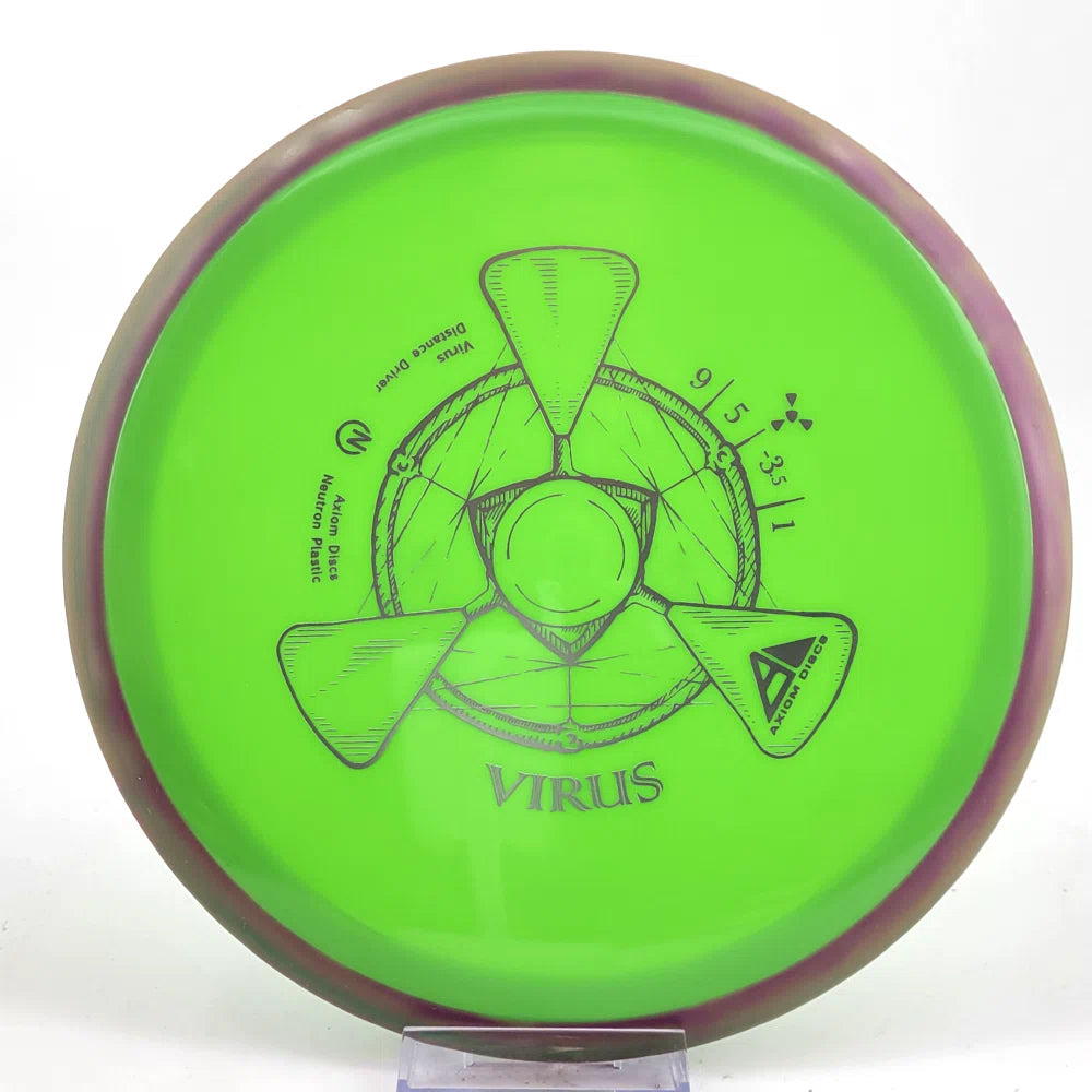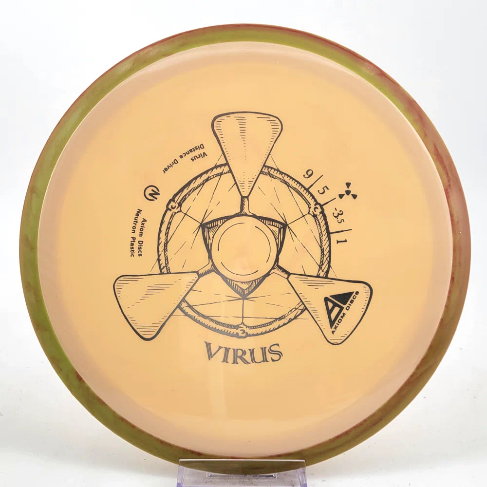 The Virus is Axiom’s easiest to throw distance driver, with a glide and responsive understability that keeps it in the air. Power throwers will be able to flex huge turnover shots with straight forward fade. Average throwers will be able to extend and shape lines using the Virus’ turn and gentle fade. Compared to the MVP lineup, the Virus resembles a worn-in Impulse.