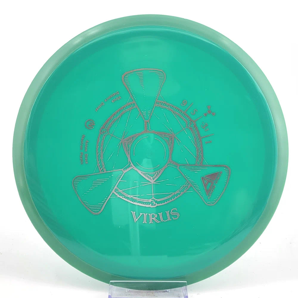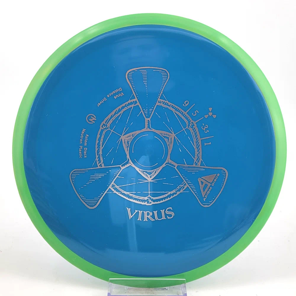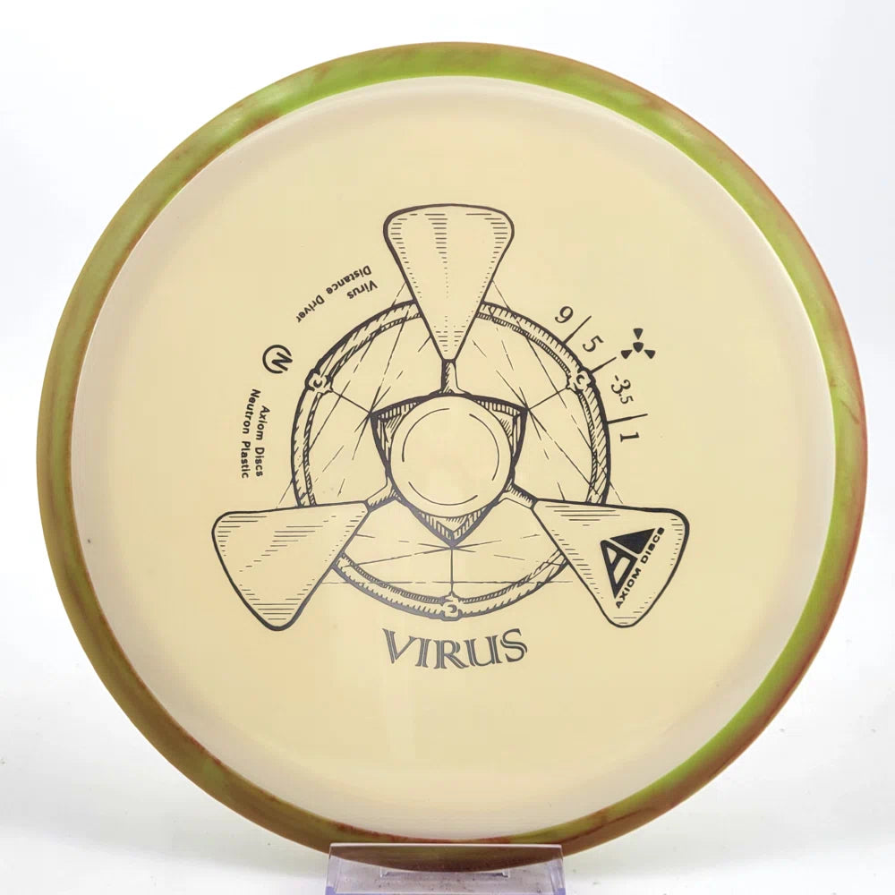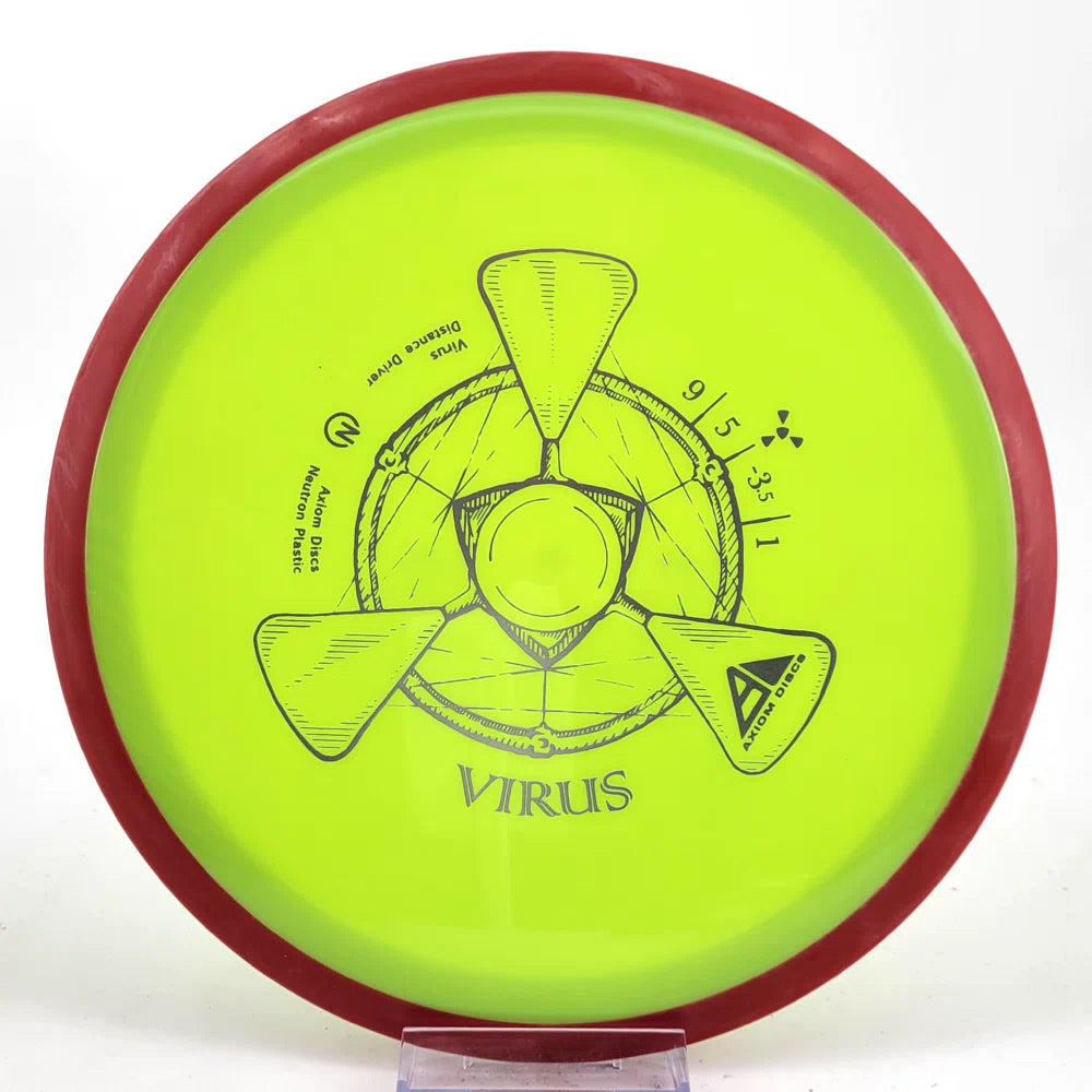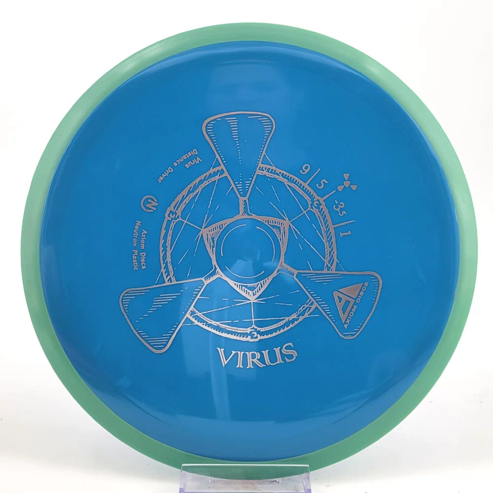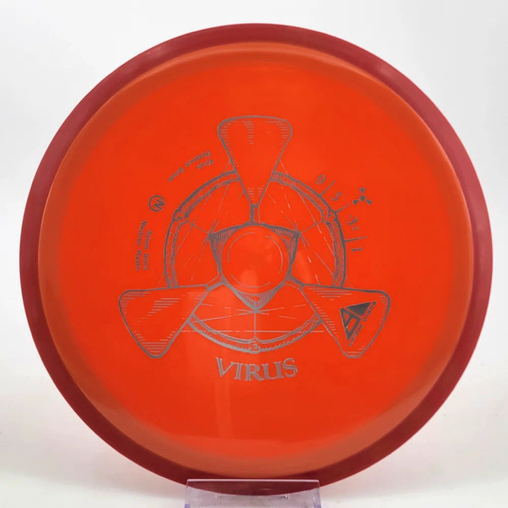The Virus is Axiom’s easiest to throw distance driver, with a glide and responsive understability that keeps it in the air. Power throwers will be able to flex huge turnover shots with straight forward fade. Average throwers will be able to extend and shape lines using the Virus’ turn and gentle fade. Compared to the MVP lineup, the Virus resembles a worn-in Impulse.