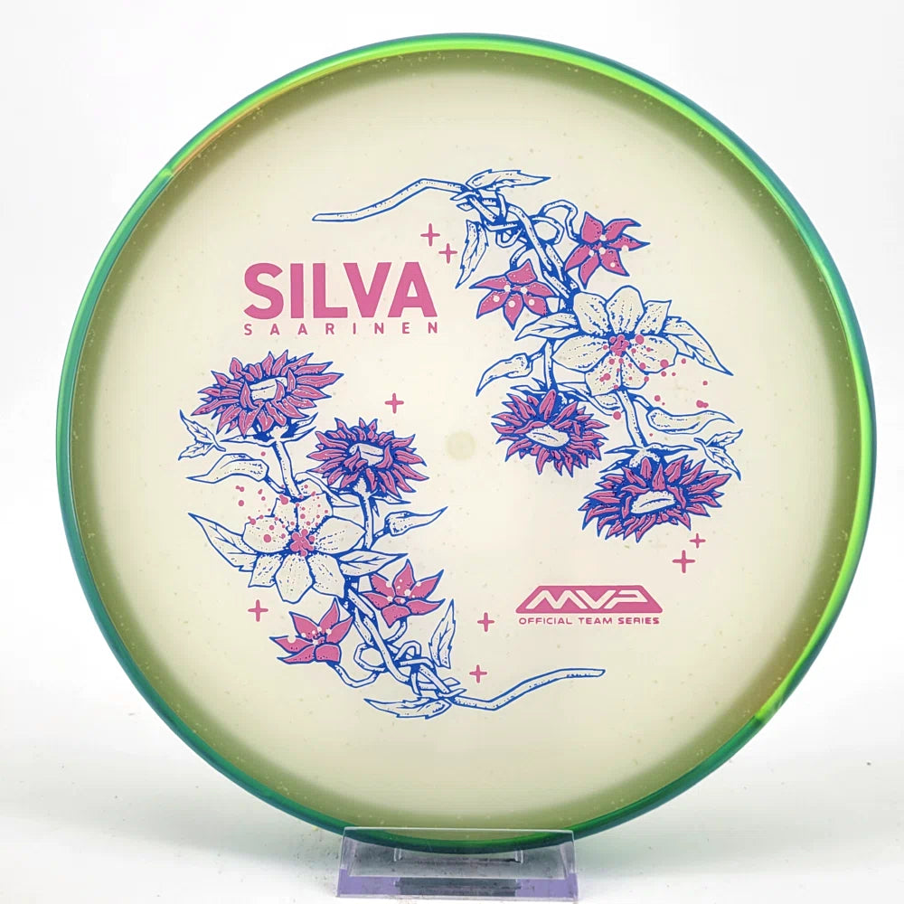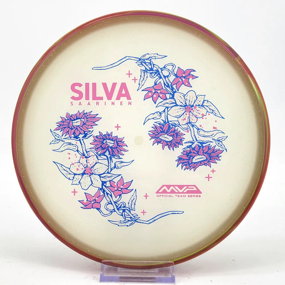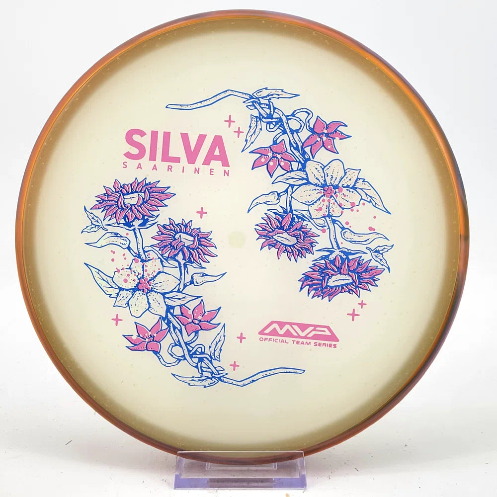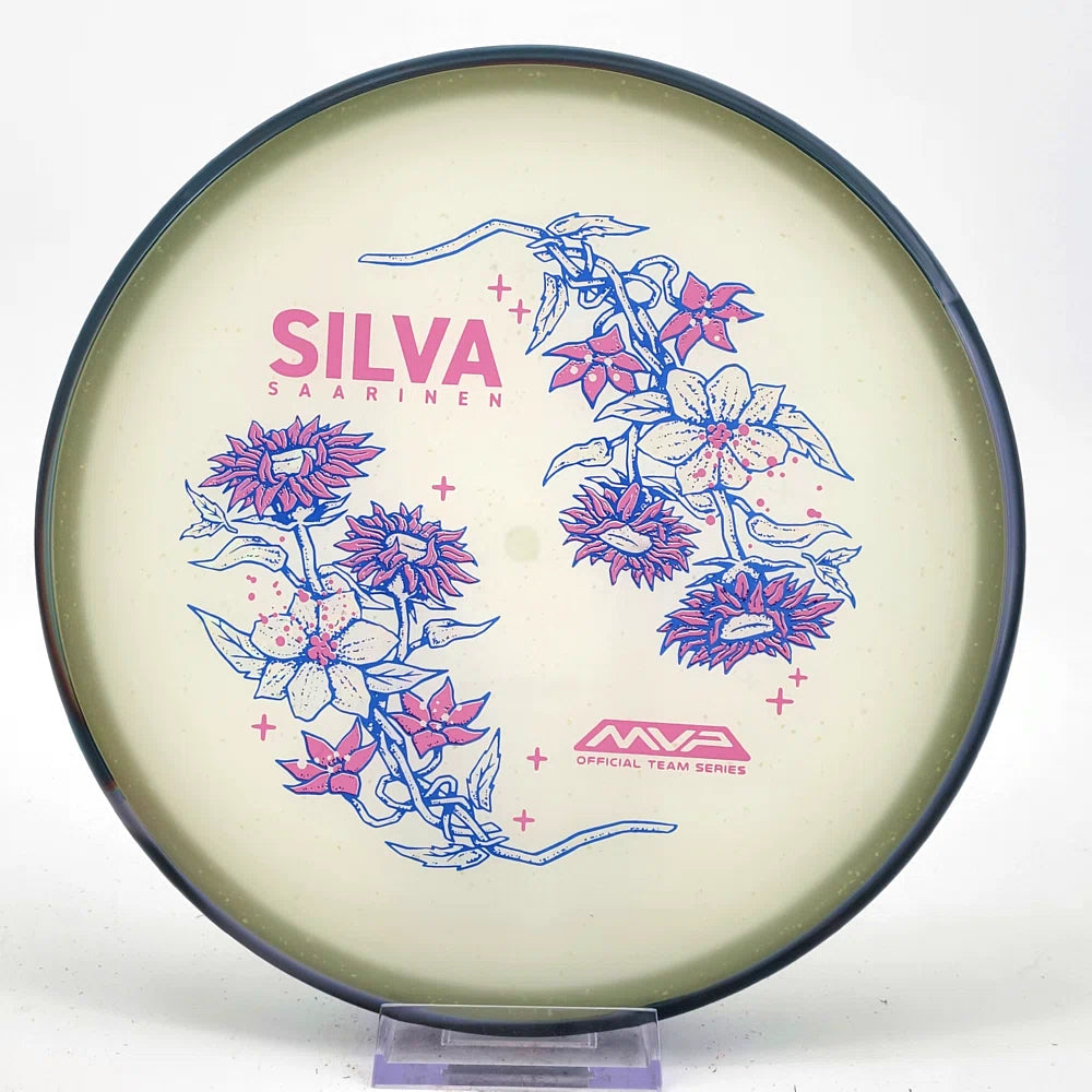 Experience the Silva Saarinen Team Series "Flowers" Eclipse Proxy, a disc crafted for elegance and performance. This limited-release Proxy utilizes Axiom's brightest Eclipse glow plastic, ensuring maximum visibility and reliable precision for those sunset rounds. Just like Silva's beautifully balanced game, the disc offers a neutral, straight flight with a smooth, beadless profile—ideal for both dead-on putting and controlled approaches. The "Flowers" stamp is a tribute to Silva's graceful play, a true blend of calm focus and competitive bloom.