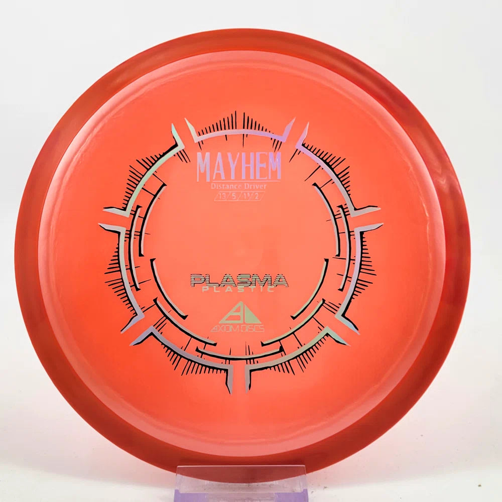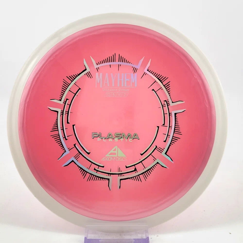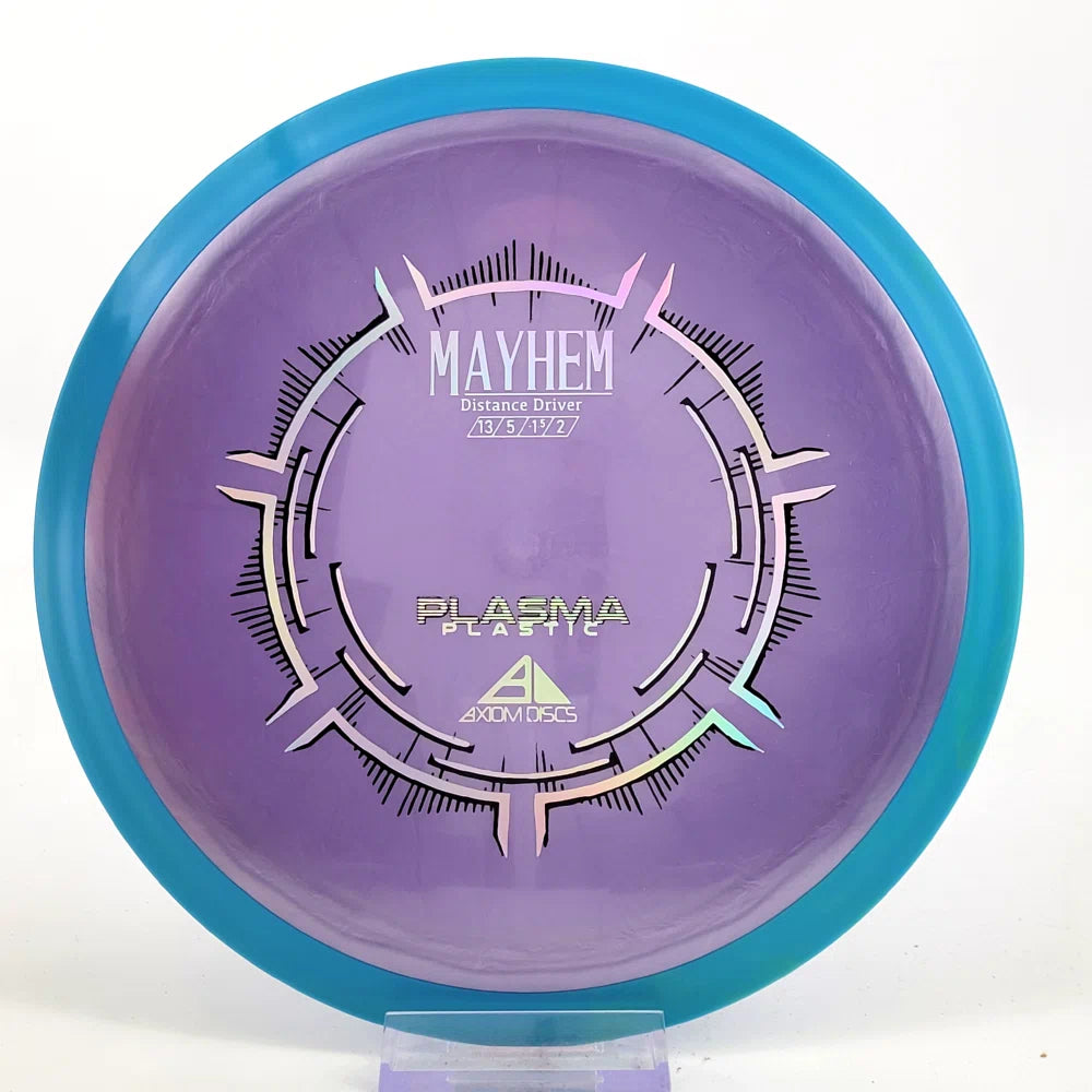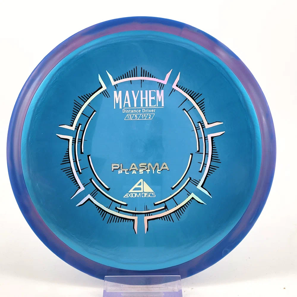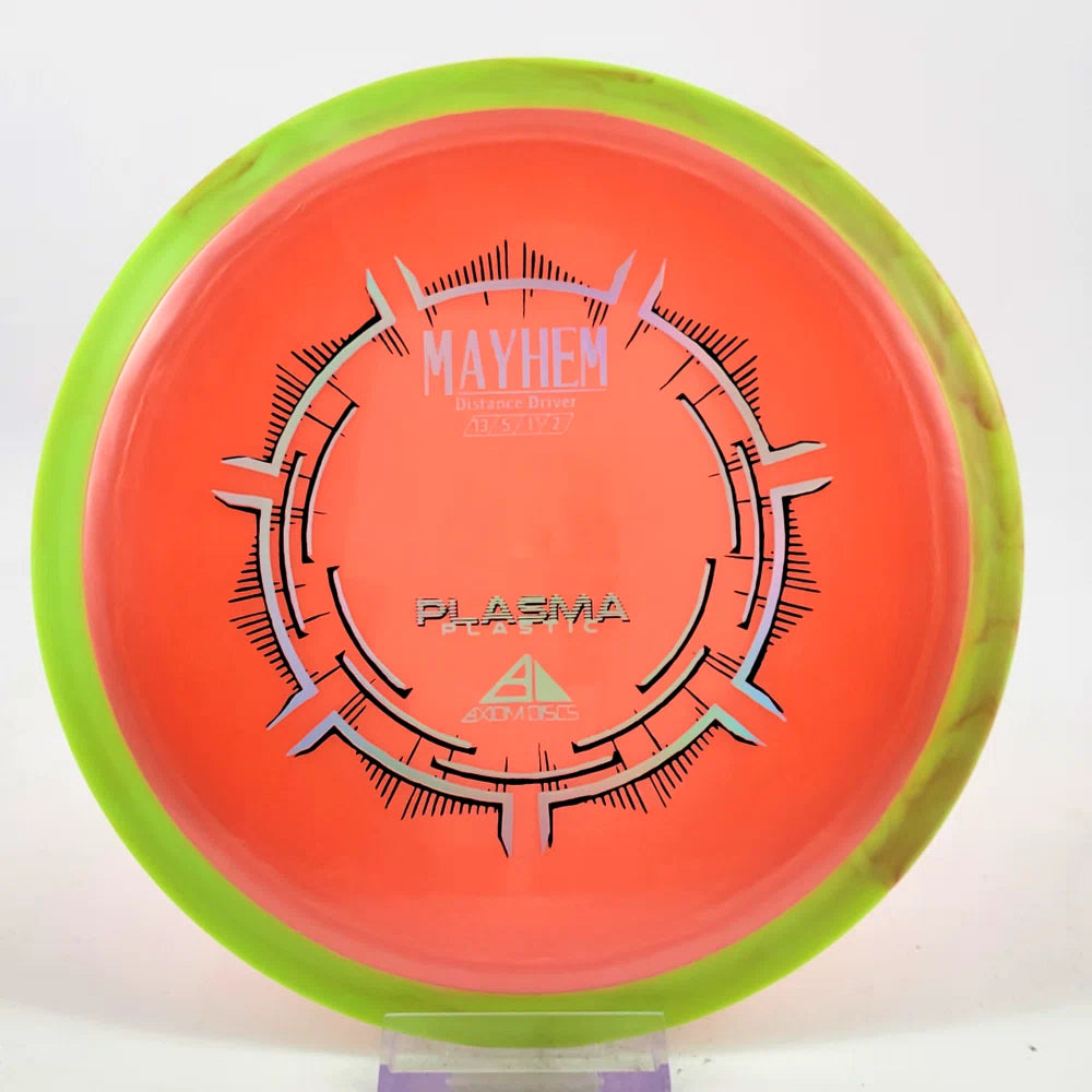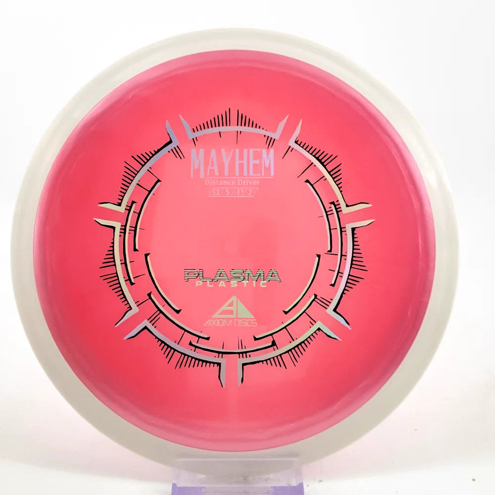 Mayhem has a responsive straight-stable profile and plenty of speed, making it a perfect workhorse driver for many advanced and expert throwers. Like the MVP 23mm class, the Axiom Mayhem has a pronounced dome to promote distance-covering glide. Mayhem is best compared to a beat MVP Octane.