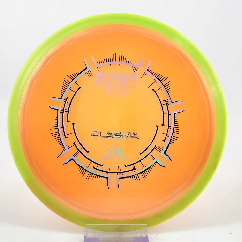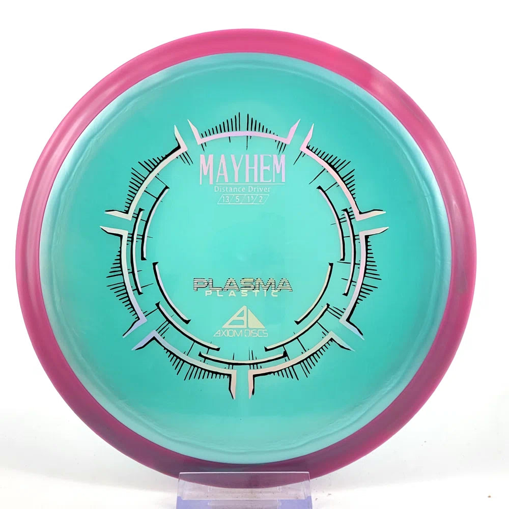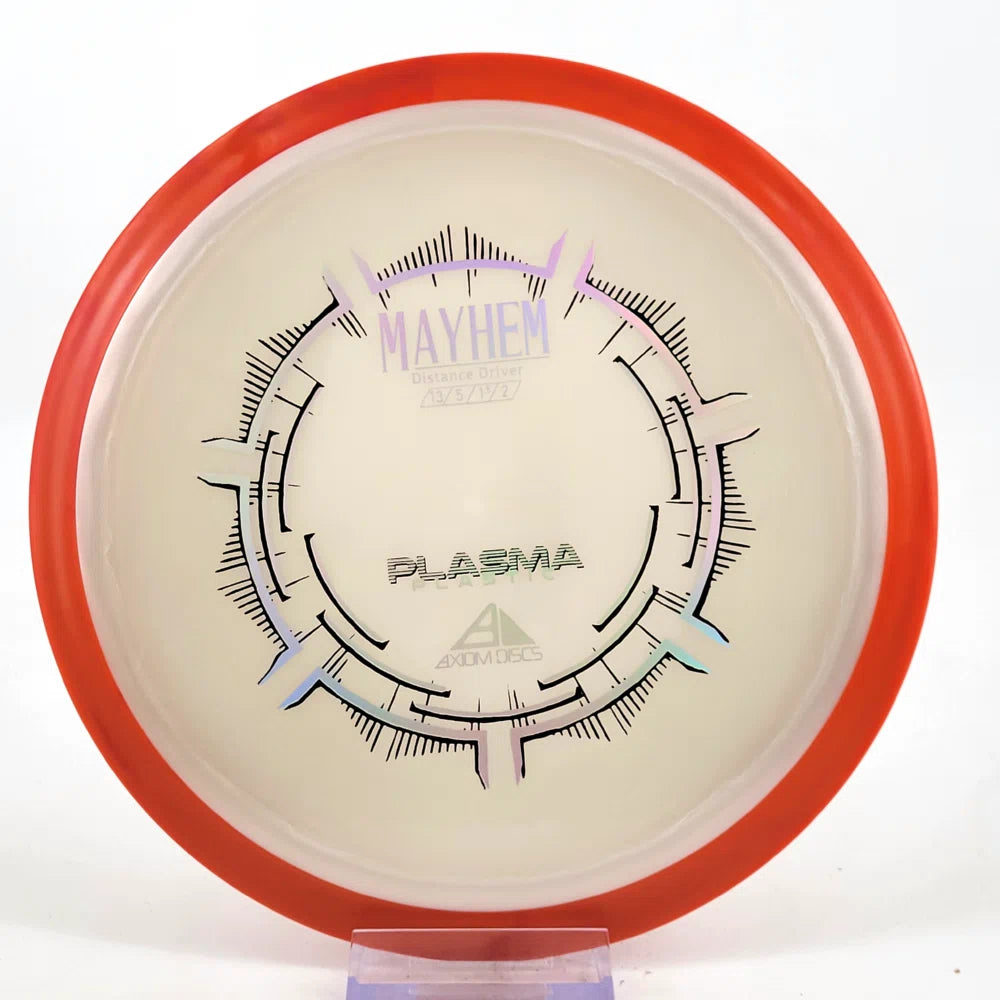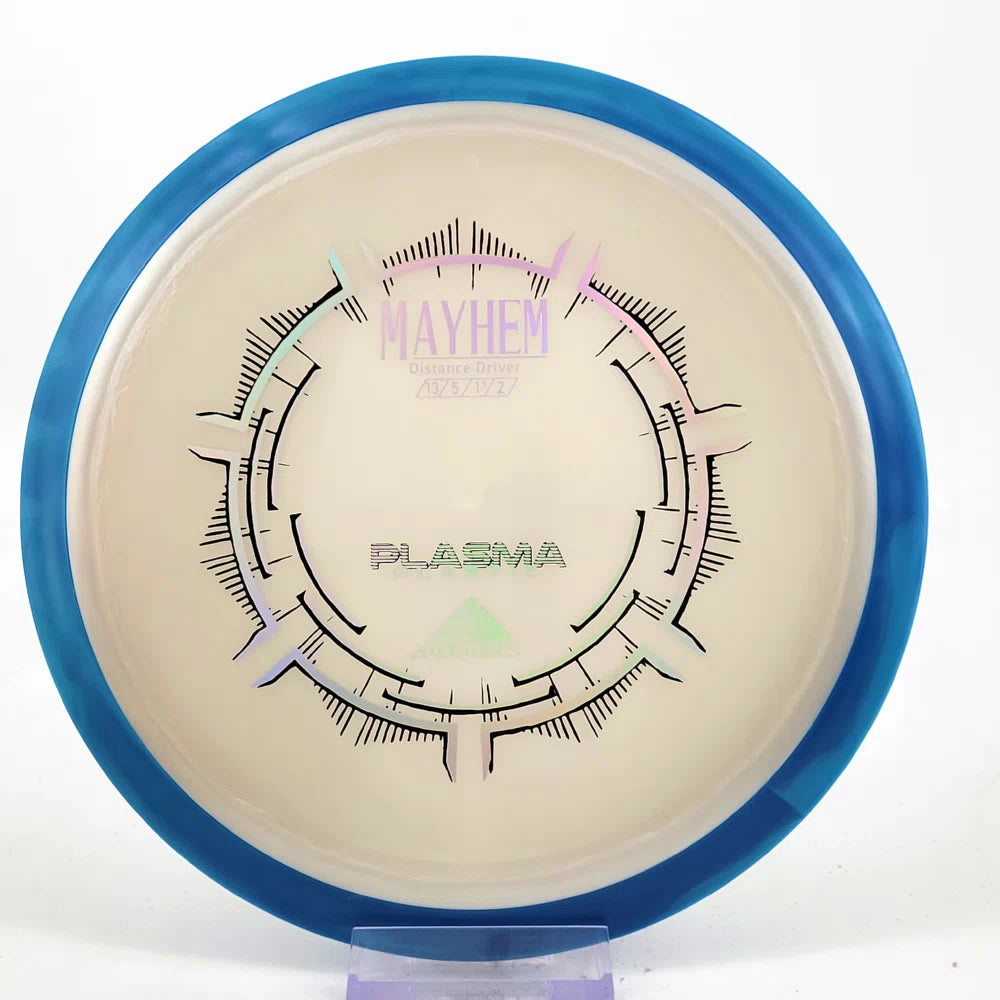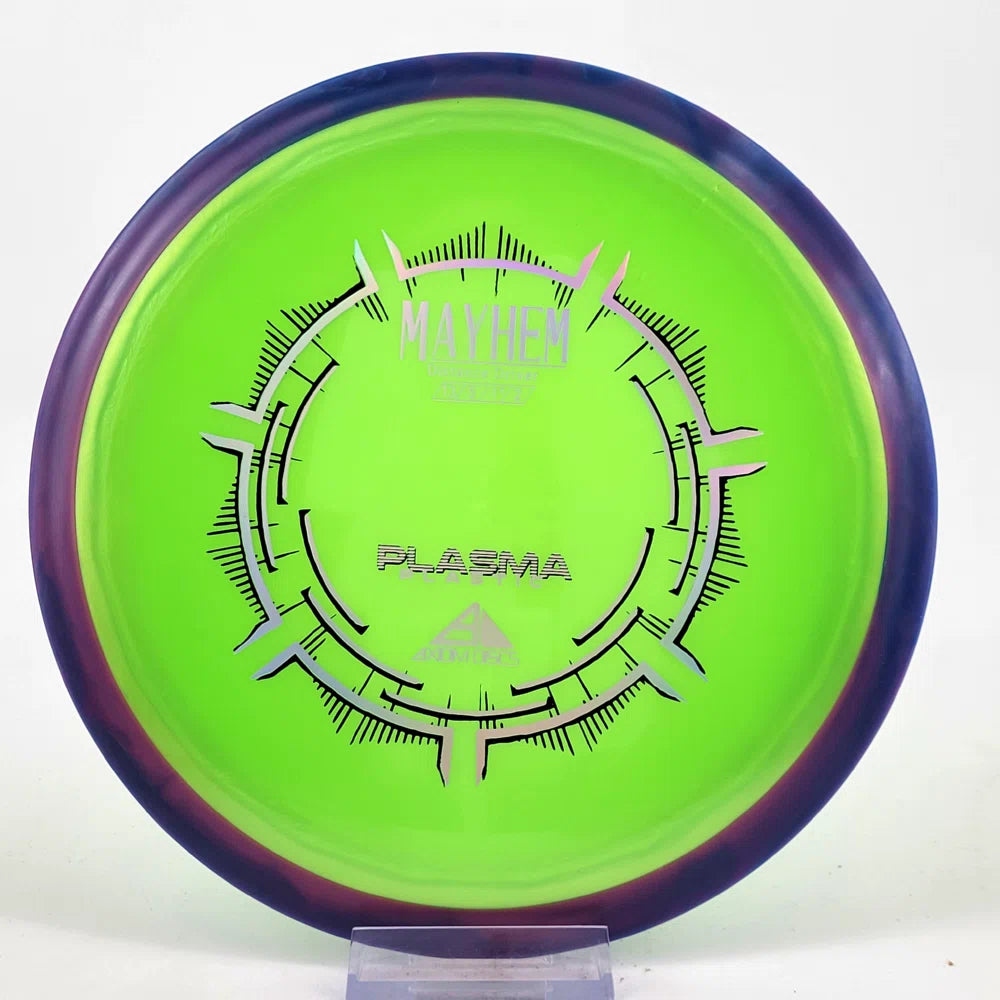 Mayhem has a responsive straight-stable profile and plenty of speed, making it a perfect workhorse driver for many advanced and expert throwers. Like the MVP 23mm class, the Axiom Mayhem has a pronounced dome to promote distance-covering glide. Mayhem is best compared to a beat MVP Octane.