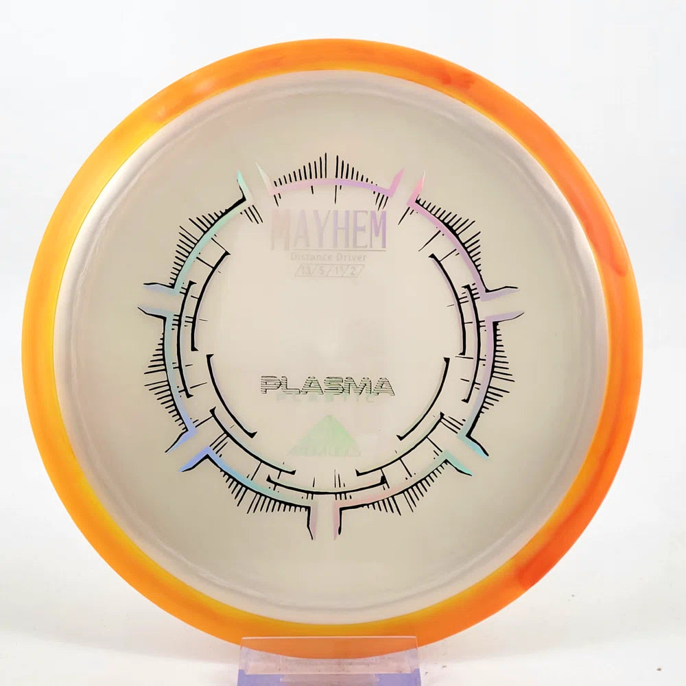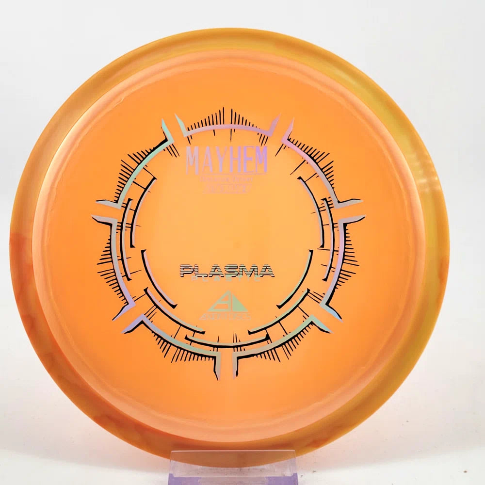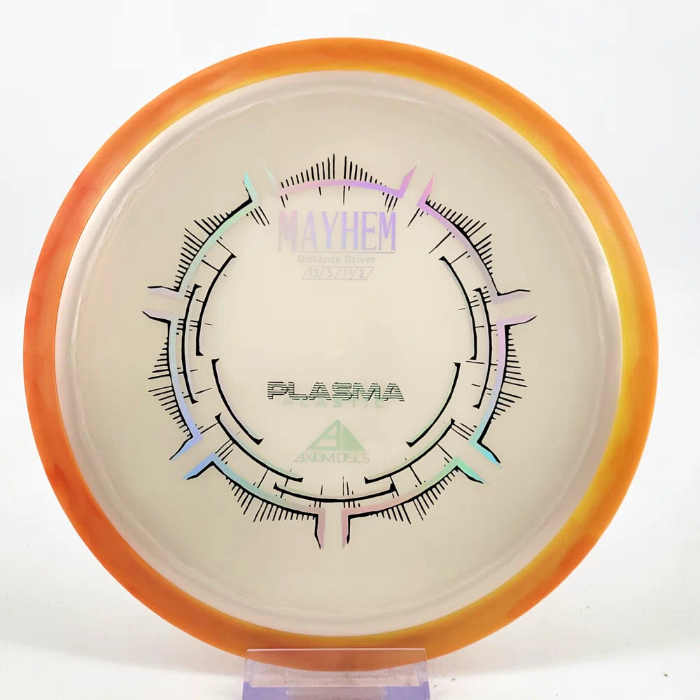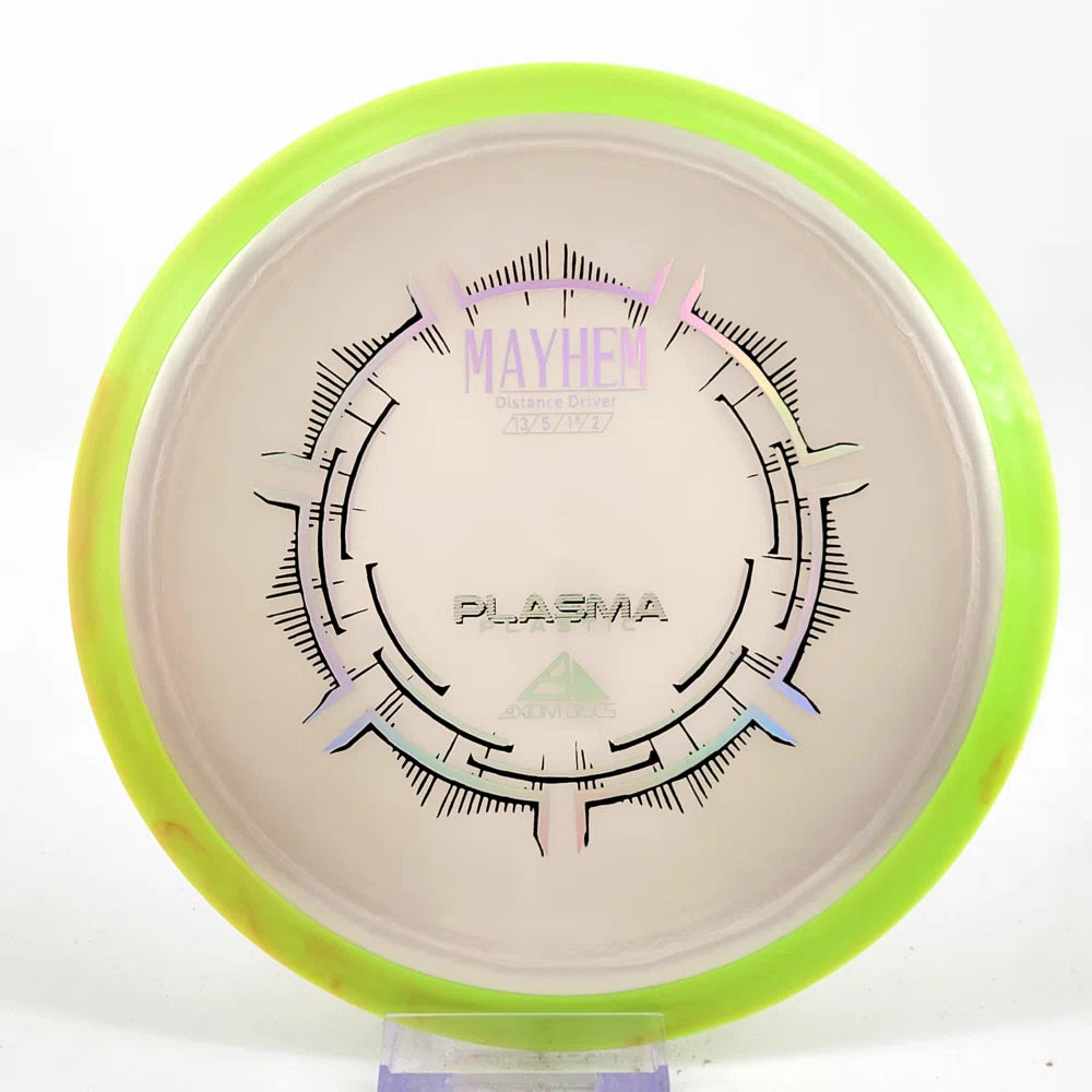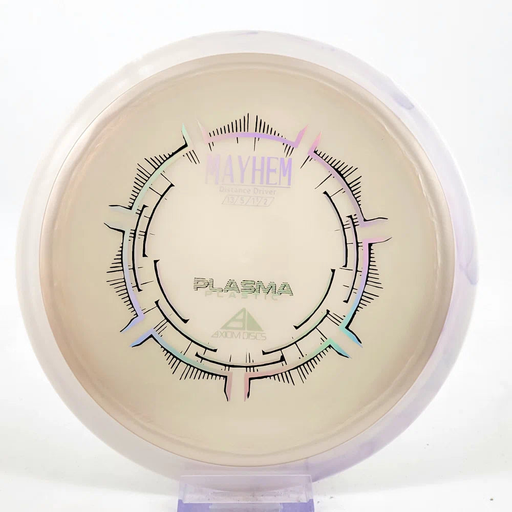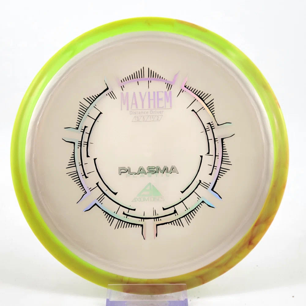 Mayhem has a responsive straight-stable profile and plenty of speed, making it a perfect workhorse driver for many advanced and expert throwers. Like the MVP 23mm class, the Axiom Mayhem has a pronounced dome to promote distance-covering glide. Mayhem is best compared to a beat MVP Octane.