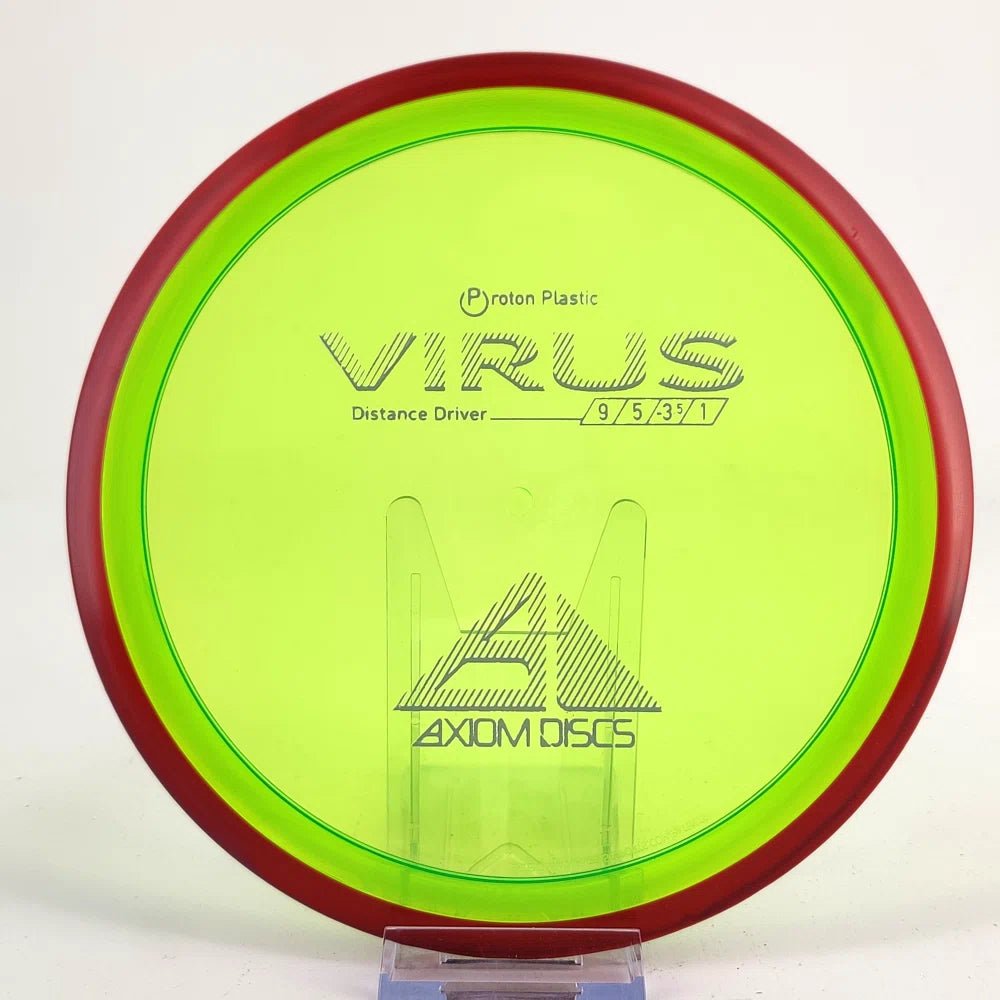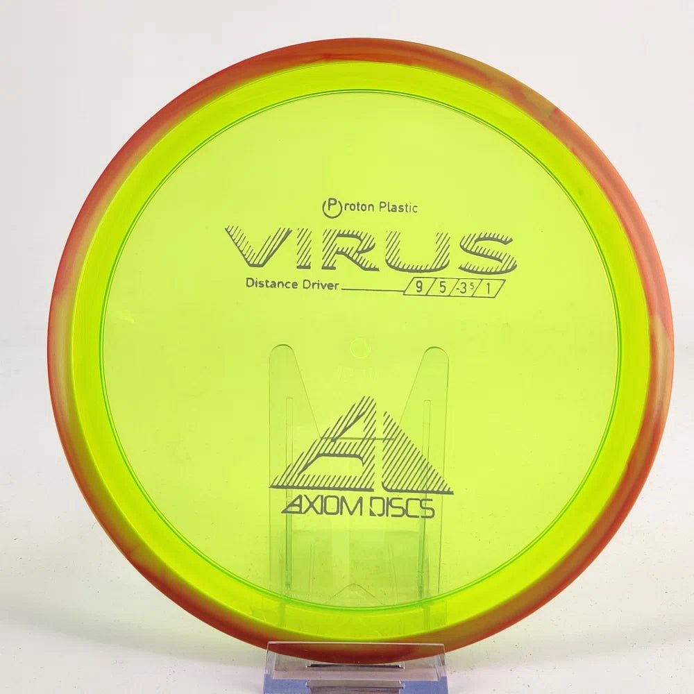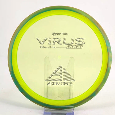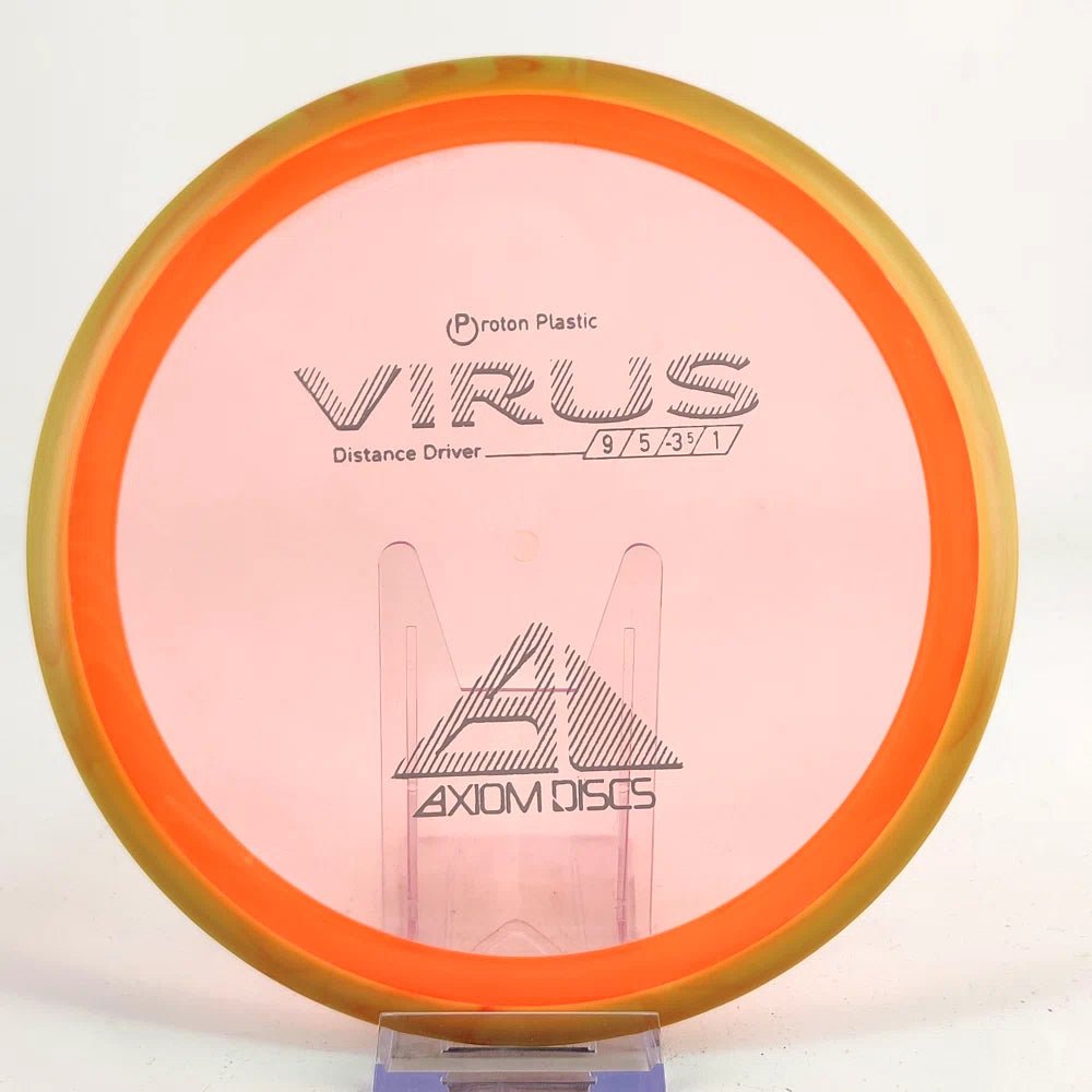 The Virus is Axiom’s easiest to throw distance driver, with a glide and responsive understability that keeps it in the air. Power throwers will be able to flex huge turnover shots with straight forward fade. Average throwers will be able to extend and shape lines using the Virus’ turn and gentle fade. Compared to the MVP lineup, the Axiom Virus resembles a worn-in Impulse.