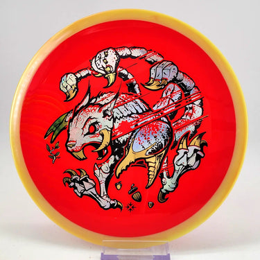 This formidable hybrid is all primal fury! Featuring the quick-footed speed of a squirrel and the venomous strike of a scorpion, the Squirpion pounces on its prey with razor claws and a stinging tail. It's an acorn-hoarding beast with an attitude. When you need a disc with bite, unleash the Squirpion.
