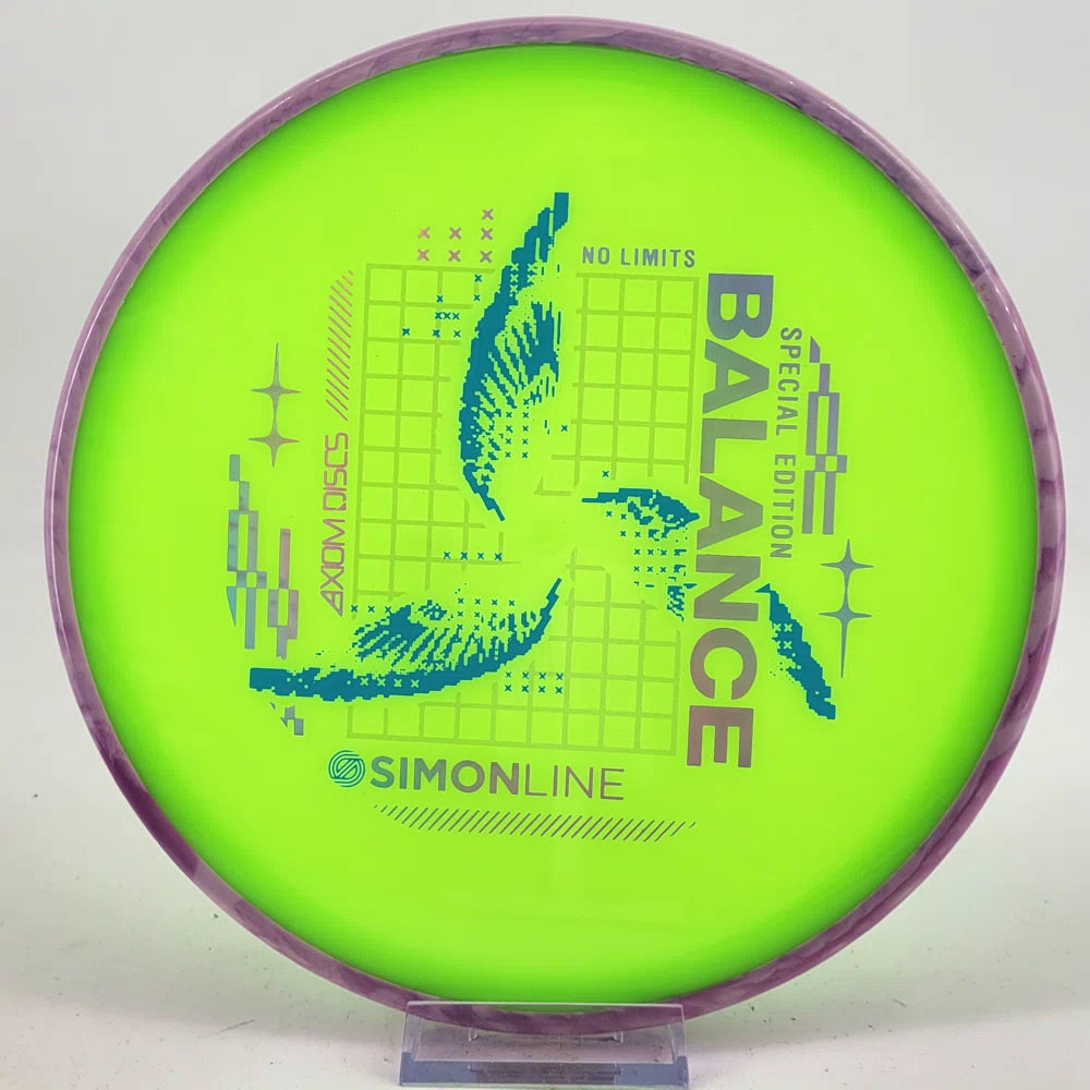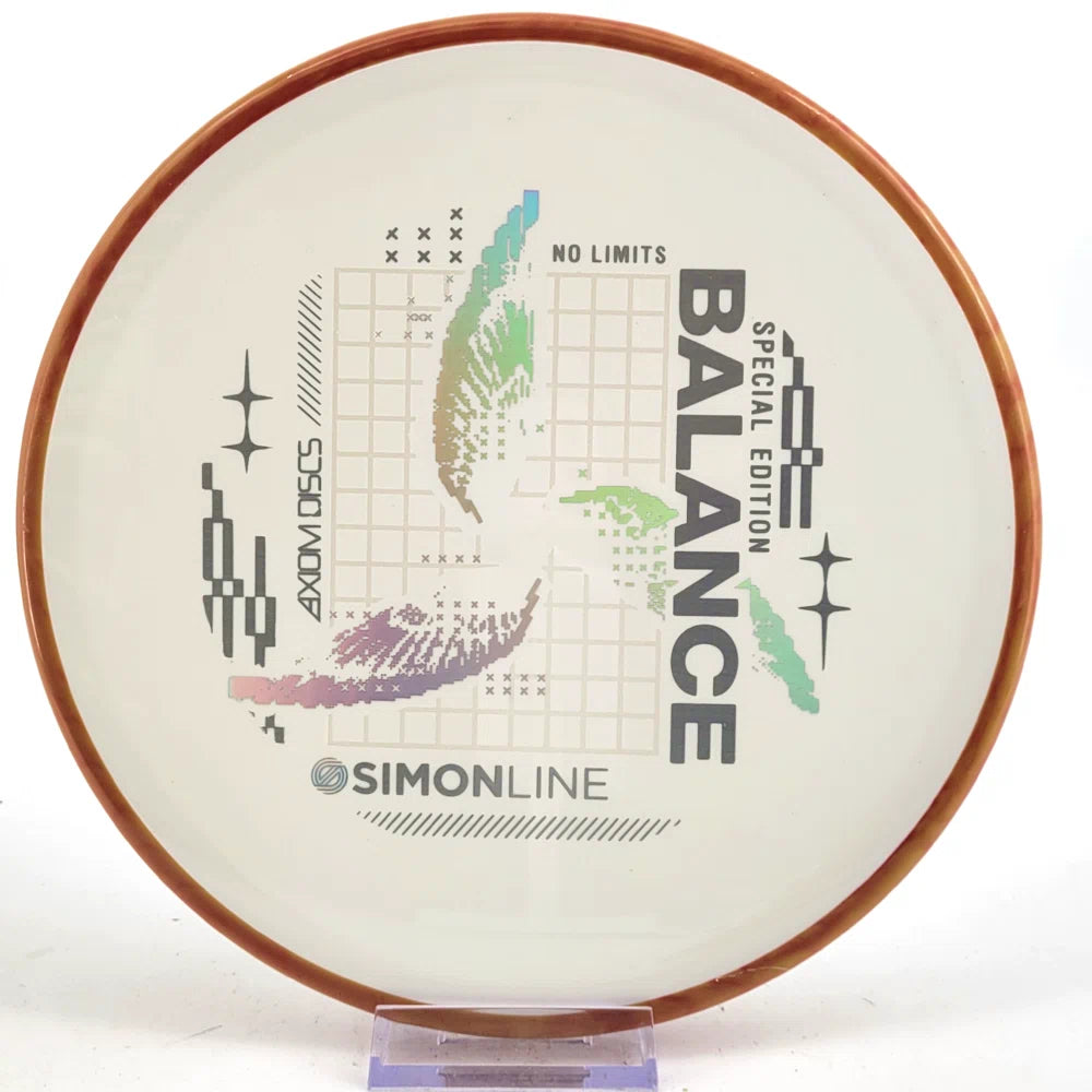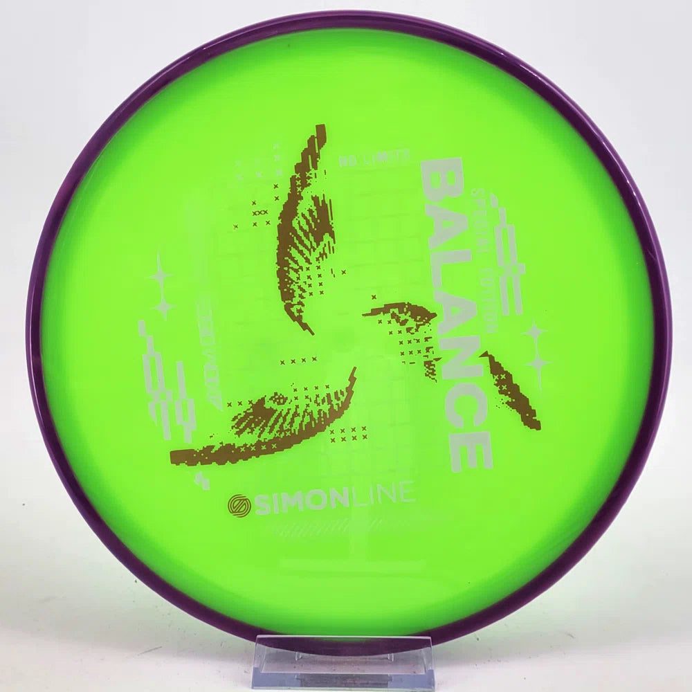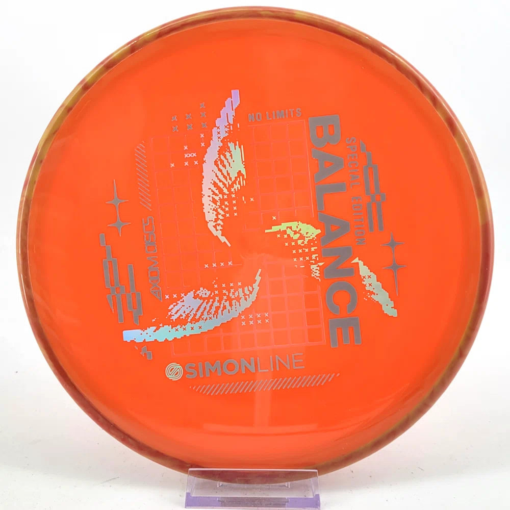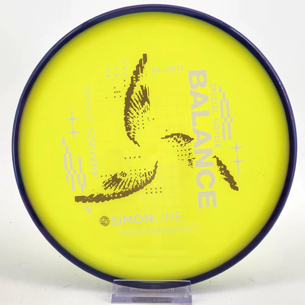 Settling in with flight numbers of 5 | 5 | 0 | 2, the Balance falls between the MVP Reactor and Axiom Pyro - overstable enough for torque resistance, wind fighting, and a reliable, consistent flight - while still having the flexibility of a midrange for shot shaping. High power players will have a versatile, straight flier with a dependable bite of fade towards the end, while those with less power will find the perfect overstable wind fighting complement to their midrange lineup. The Balance joins the Pixel and Time-Lapse as part of the Simon Line - curated by Simon Lizotte himself. Grab this new addition and experience the Simon Line for yourself!