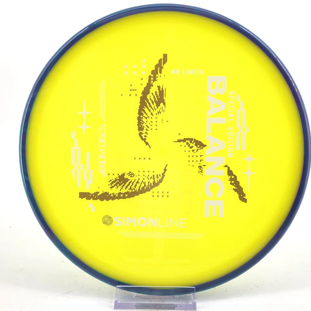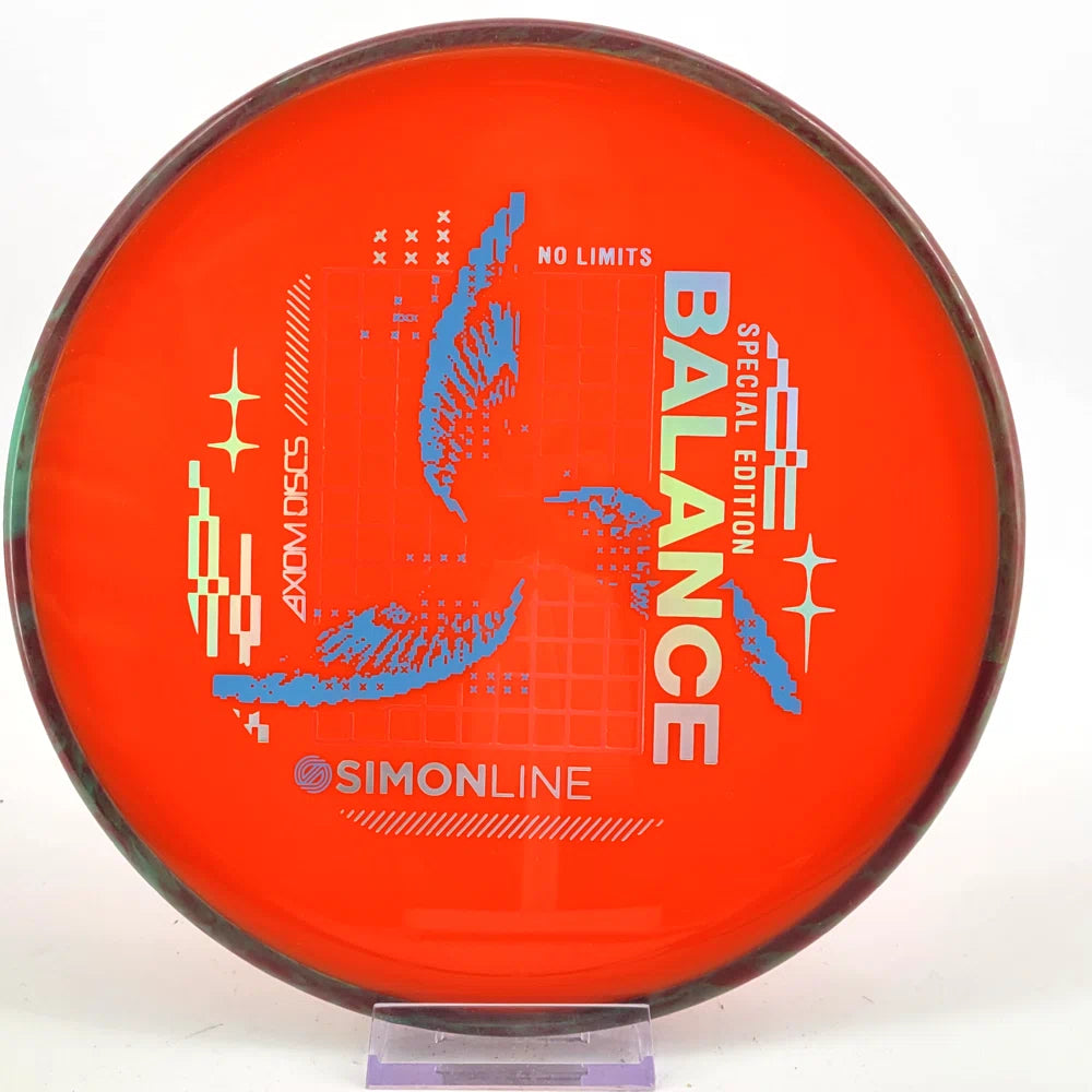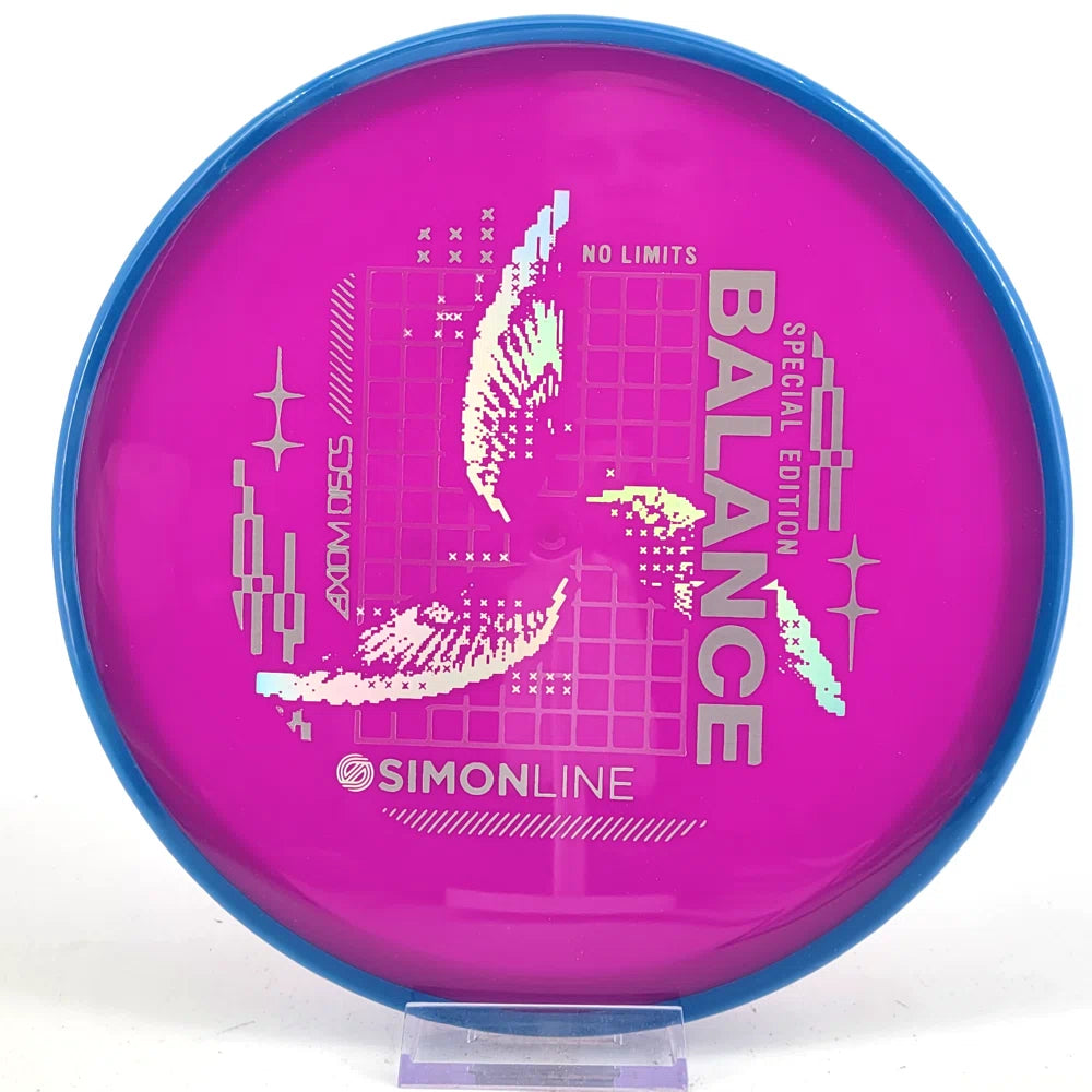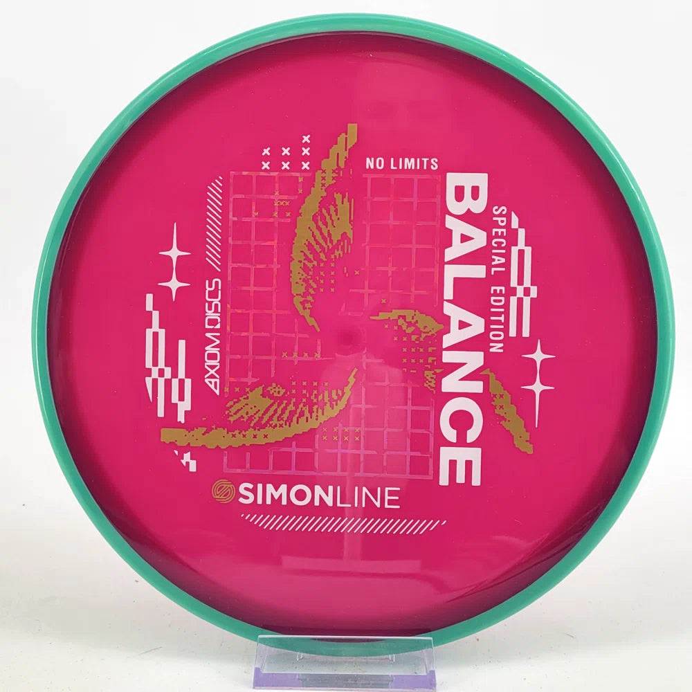 Settling in with flight numbers of 5 | 5 | 0 | 2, the Balance falls between the MVP Reactor and Axiom Pyro - overstable enough for torque resistance, wind fighting, and a reliable, consistent flight - while still having the flexibility of a midrange for shot shaping. High power players will have a versatile, straight flier with a dependable bite of fade towards the end, while those with less power will find the perfect overstable wind fighting complement to their midrange lineup. The Balance joins the Pixel and Time-Lapse as part of the Simon Line - curated by Simon Lizotte himself. Grab this new addition and experience the Simon Line for yourself!