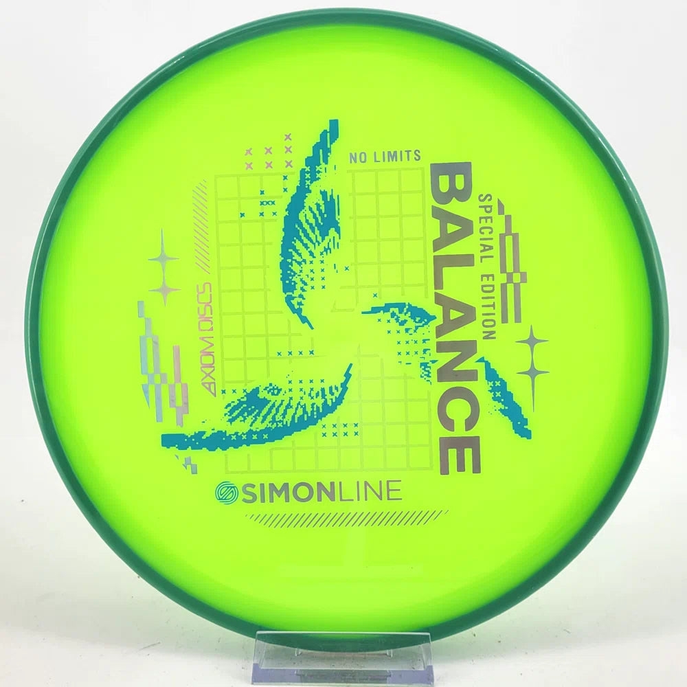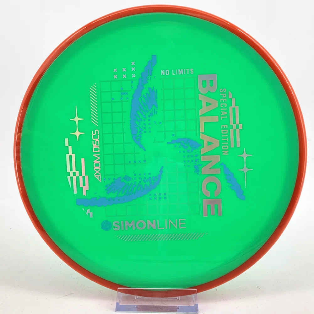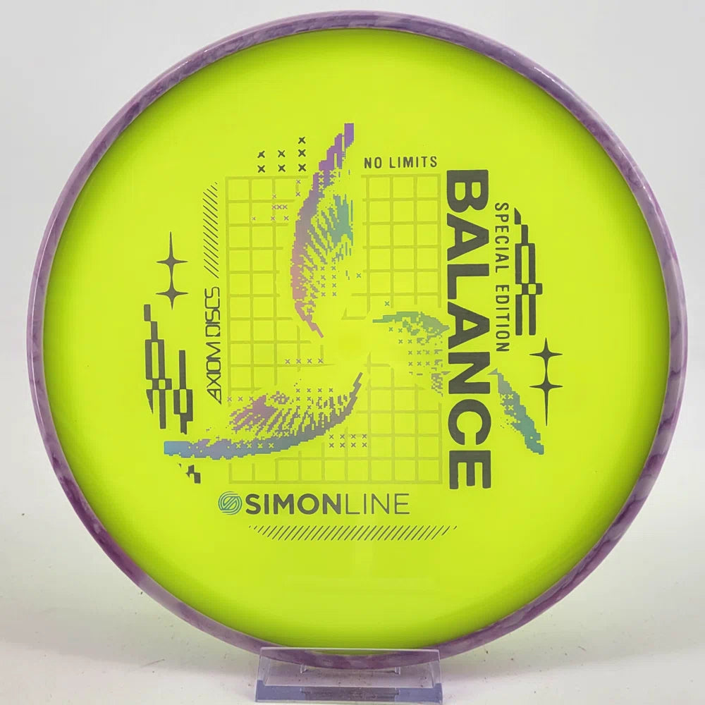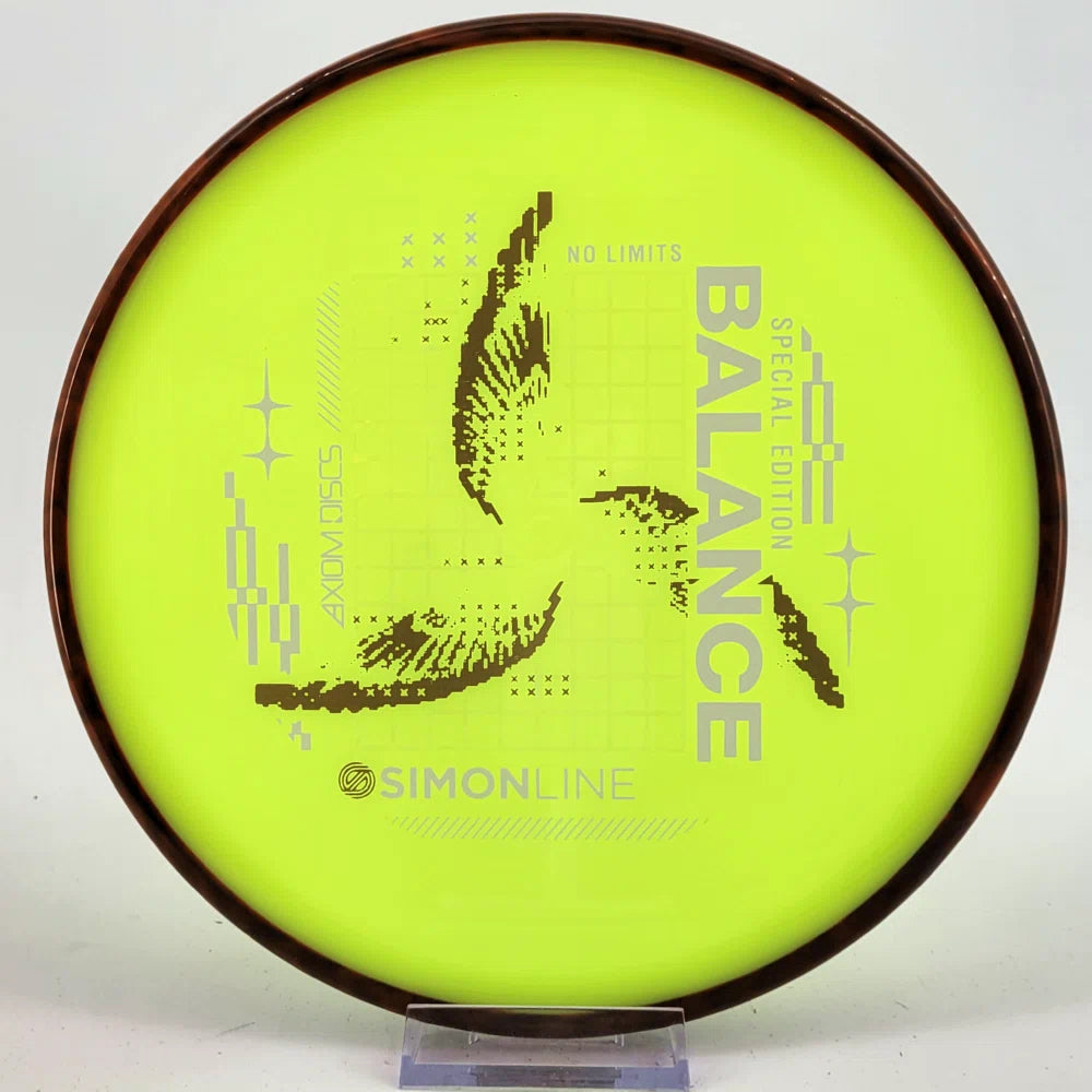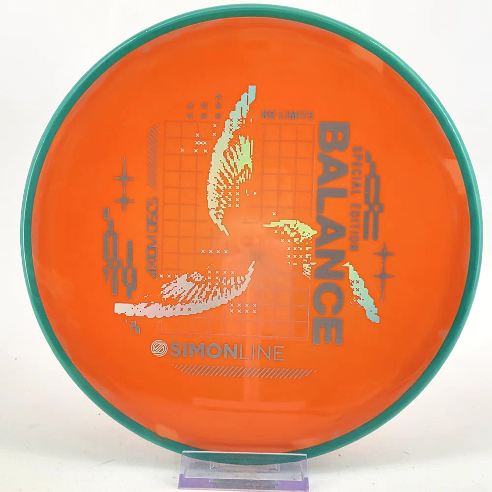 Settling in with flight numbers of 5 | 5 | 0 | 2, the Balance falls between the MVP Reactor and Axiom Pyro - overstable enough for torque resistance, wind fighting, and a reliable, consistent flight - while still having the flexibility of a midrange for shot shaping. High power players will have a versatile, straight flier with a dependable bite of fade towards the end, while those with less power will find the perfect overstable wind fighting complement to their midrange lineup. The Balance joins the Pixel and Time-Lapse as part of the Simon Line - curated by Simon Lizotte himself. Grab this new addition and experience the Simon Line for yourself!