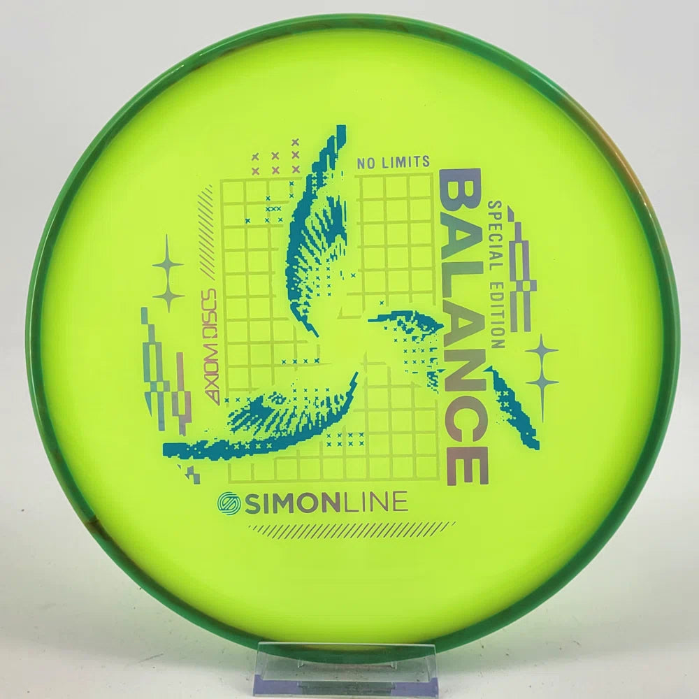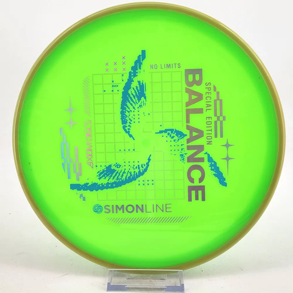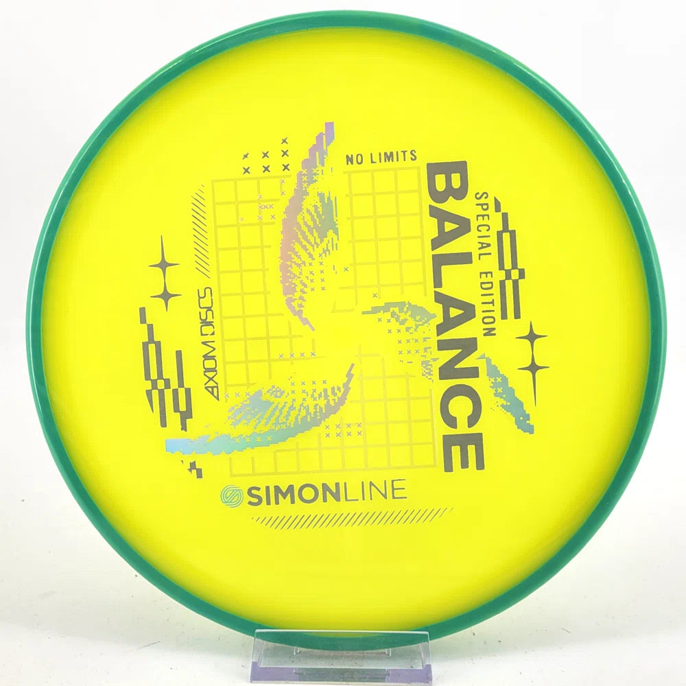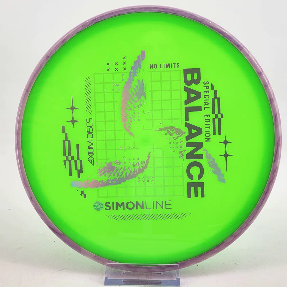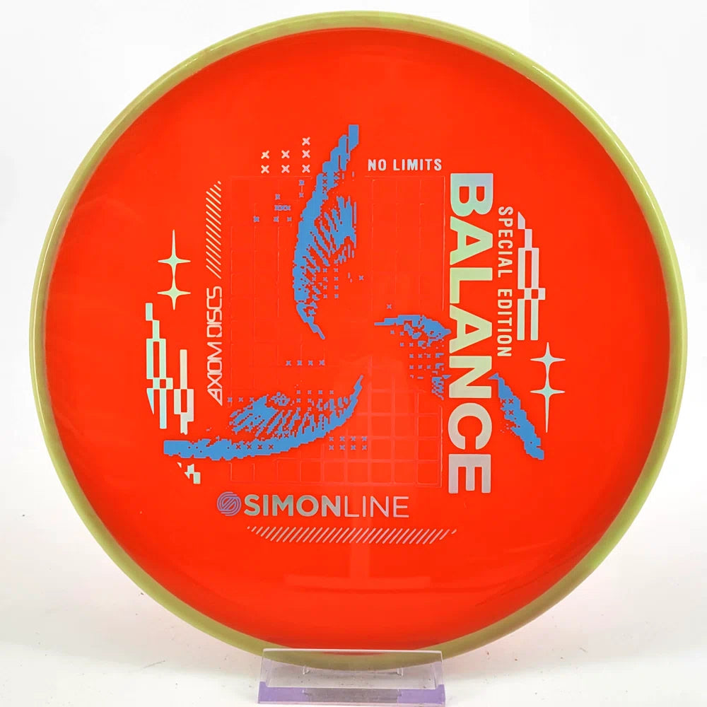 Settling in with flight numbers of 5 | 5 | 0 | 2, the Balance falls between the MVP Reactor and Axiom Pyro - overstable enough for torque resistance, wind fighting, and a reliable, consistent flight - while still having the flexibility of a midrange for shot shaping. High power players will have a versatile, straight flier with a dependable bite of fade towards the end, while those with less power will find the perfect overstable wind fighting complement to their midrange lineup. The Balance joins the Pixel and Time-Lapse as part of the Simon Line - curated by Simon Lizotte himself. Grab this new addition and experience the Simon Line for yourself!