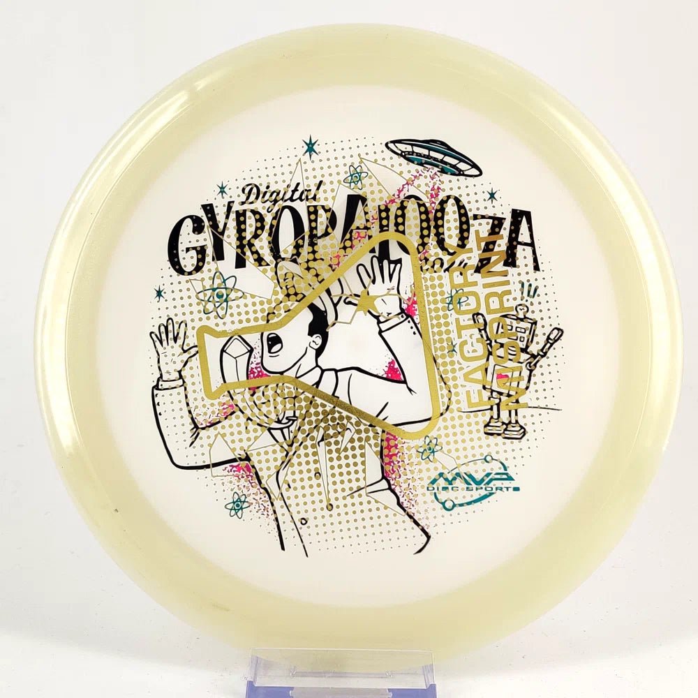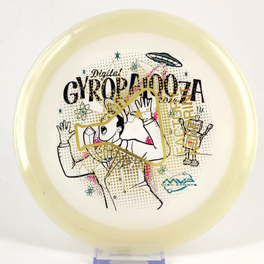 The Vanish is here and finally available in Eclipse - Total Eclipse plastic to be precise! With color glow rims and cores available in Green, Blue, Teal, White, and Purple, there’s 25 different combinations to see on this understable 11-speed distance driver. With an exclusive GYROpalooza illustration courtesy of DoubleRam Design, take your glow golf to the next level with a Total Eclipse Vanish!