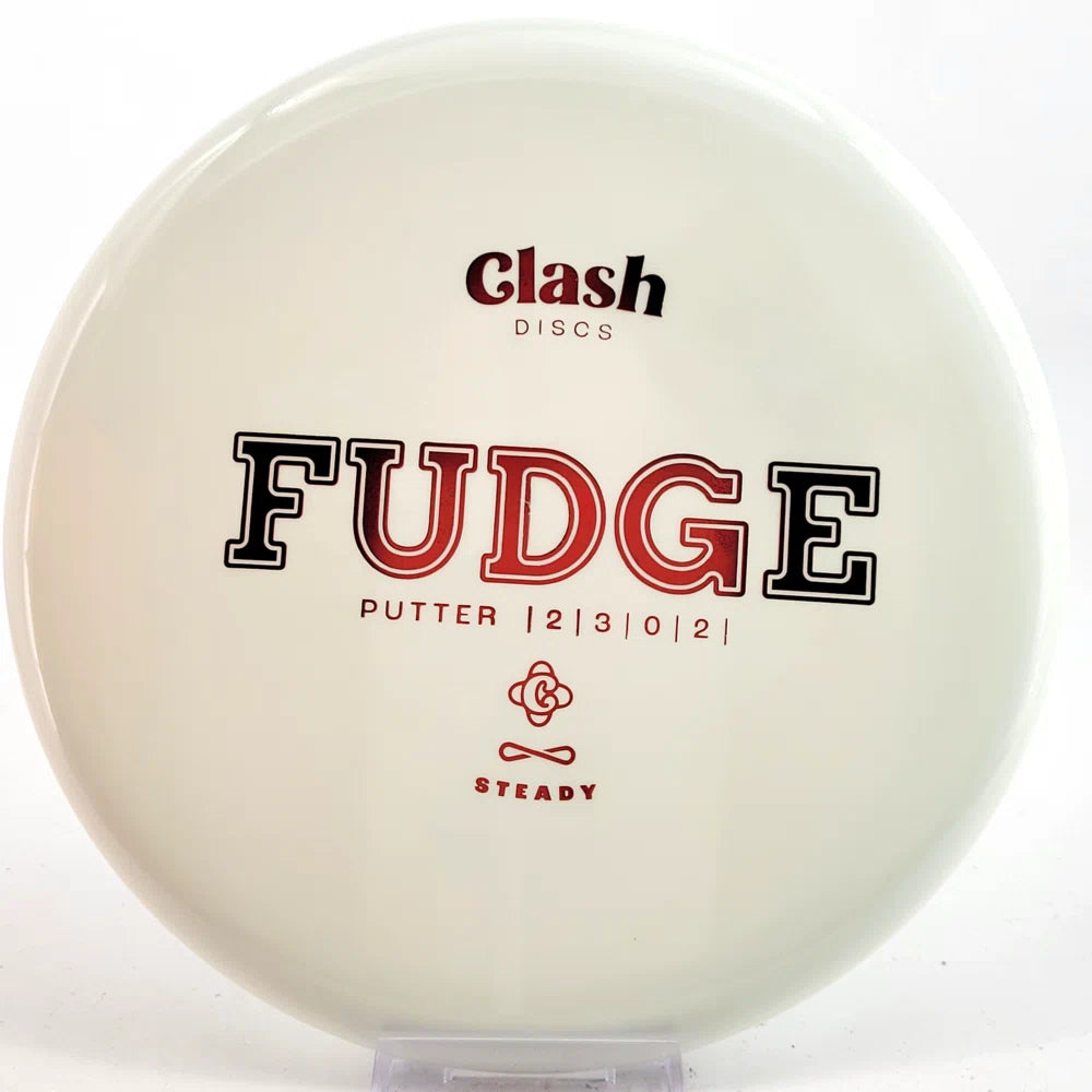 Fudge is Clash Discs' first beaded putter and is a delightful addition to their lineup. Just like the beloved Popcorn, Fudge features a reliable hand feel. However, what sets Fudge apart is its consistent stability and fade at the end of its flight.