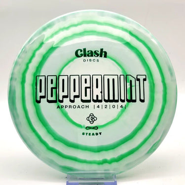The Clash Discs Peppermint is an evolution on the popular Clash Discs Mint. The Peppermint is an overstable approach midrange. It can handle strong winds and always have that strong fade at the end of the flight.