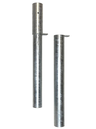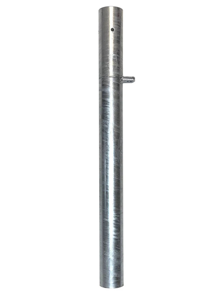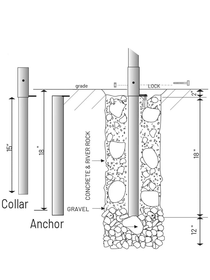 The anchor part of the In-Ground Conversion Kit is concreted in the ground and immovable. The collar piece of the In-Ground Conversion Kit bolts onto the pole and slides into the cemented anchor piece. Both the anchor and collar have welded tabs that can be locked together for security. (Lock not included).