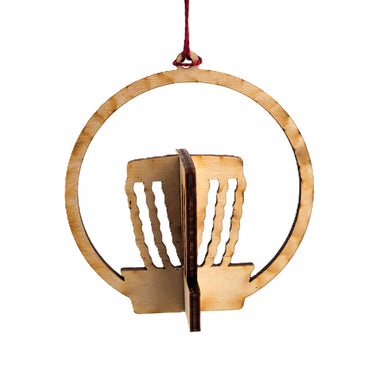Miniature Baskets: A detailed 3D-effect disc golf basket is featured in one ornament while another has a space for a light so the basket will glow.