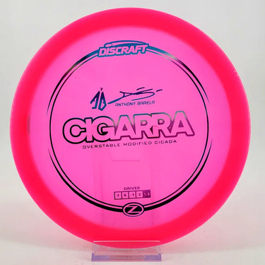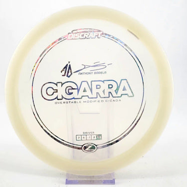 After the debut of the First Run, the Anthony Barela Cigarra is back—now available in our stock Z Line plastic blend! Released to overwhelming demand, this disc quickly became a favorite among fans and pros alike for its flight and standout design. As a stock option, the Cigarra brings that same energy and performance with the trusted durability of Z Line plastic.