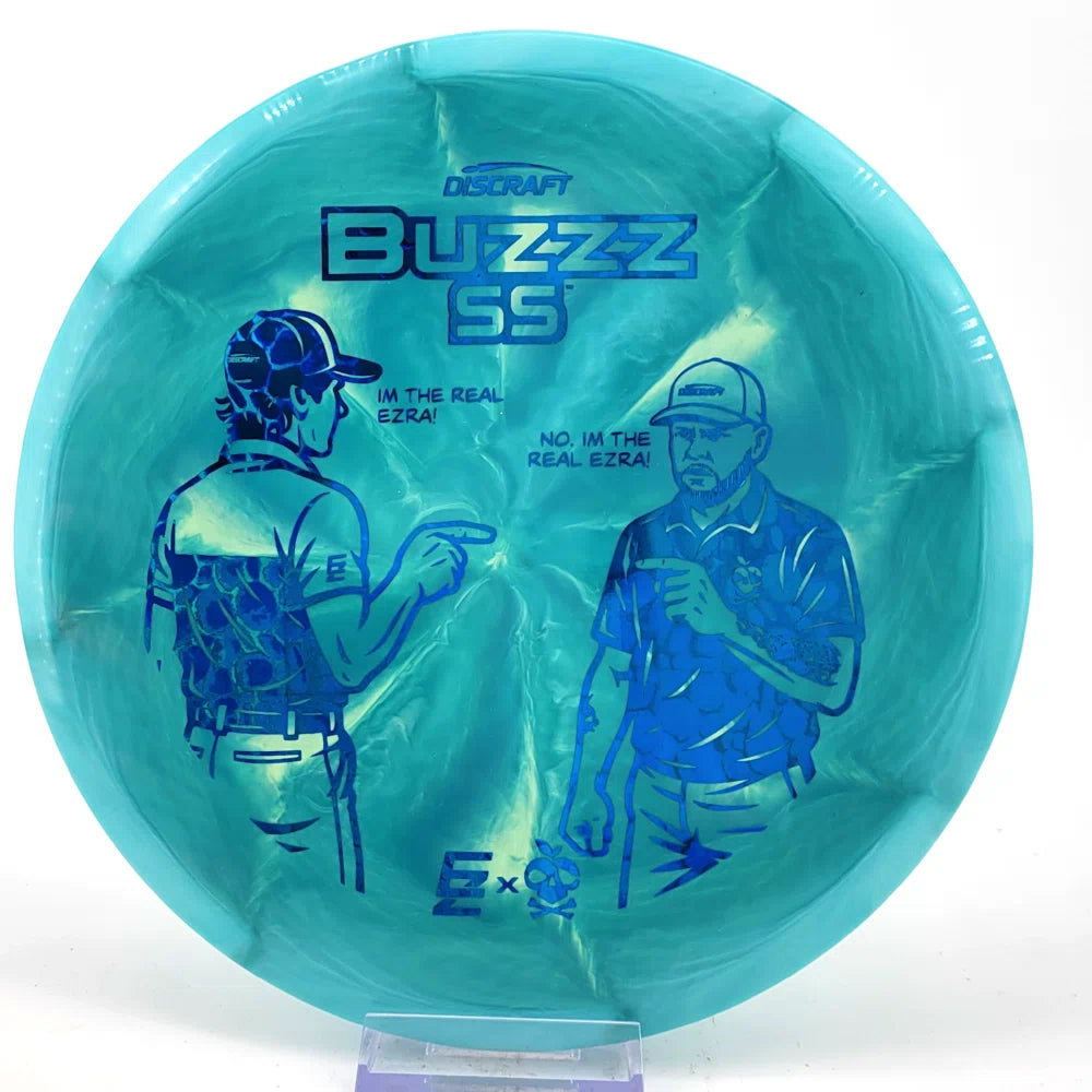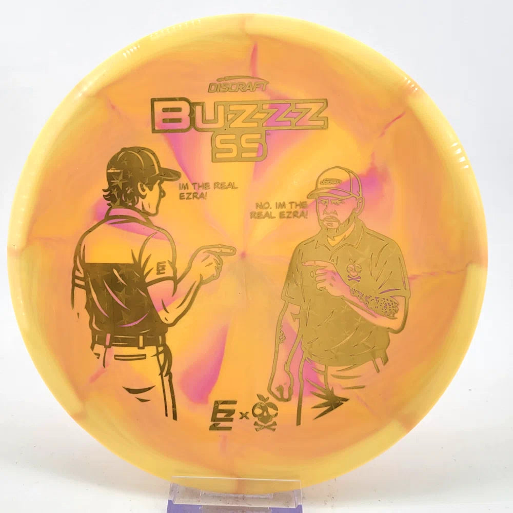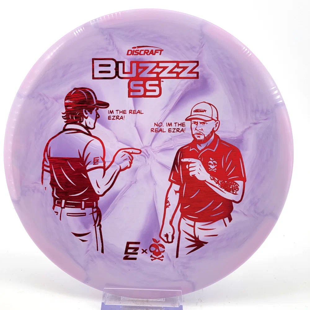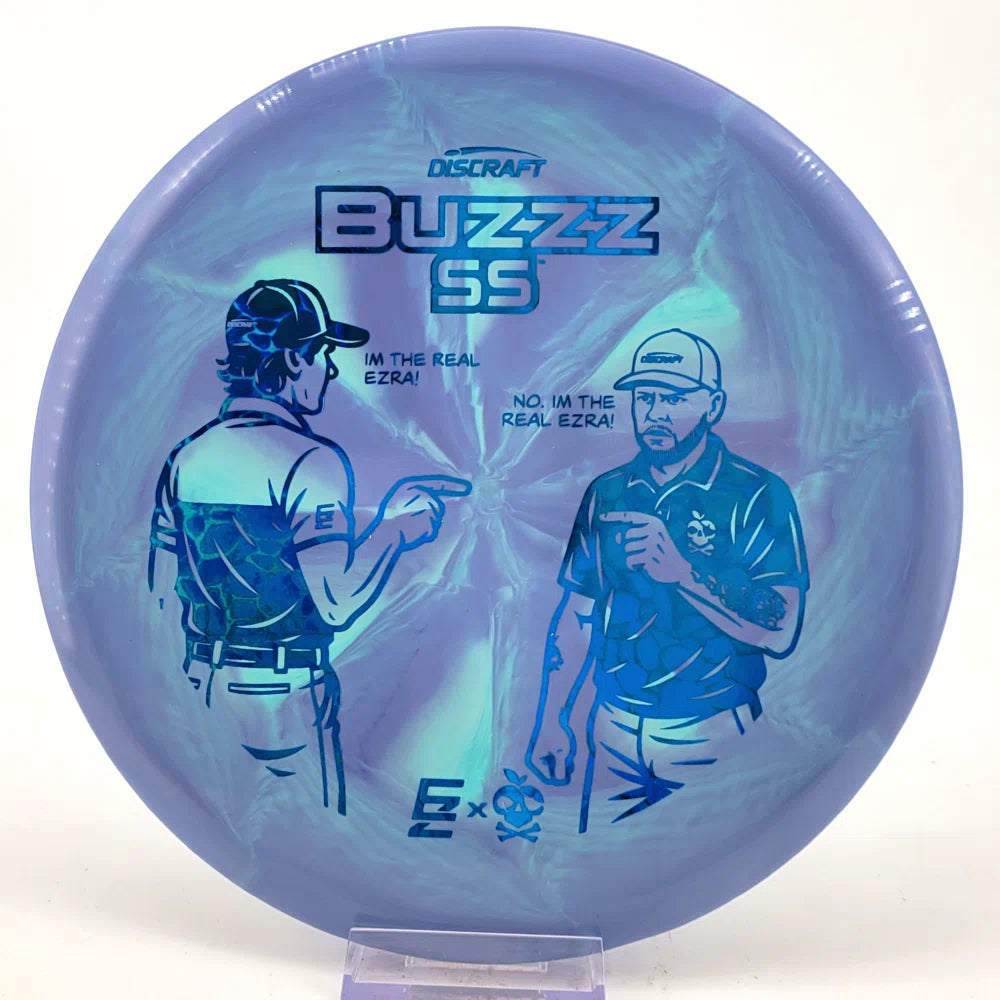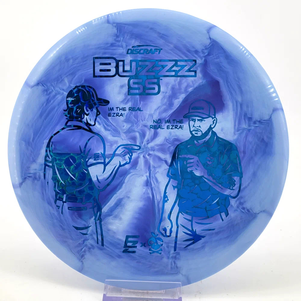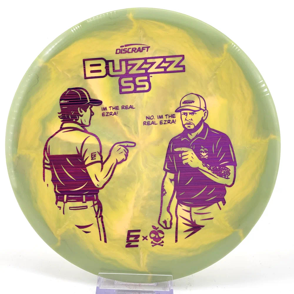 The Buzzz SS takes the classic Buzzz feel and adds buttery high-speed turn for dead-straight flights and gentle turnovers. In this Ezra Aderhold x Ezra Robinson collab, the playful “which Ezra is the real Ezra?” stamp leans into a lighthearted art to determine one question, who is the real Ezra? If you like a a midrange glides forever and holds the line you put it on, this will become a workhorse in your bag.