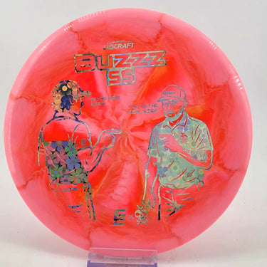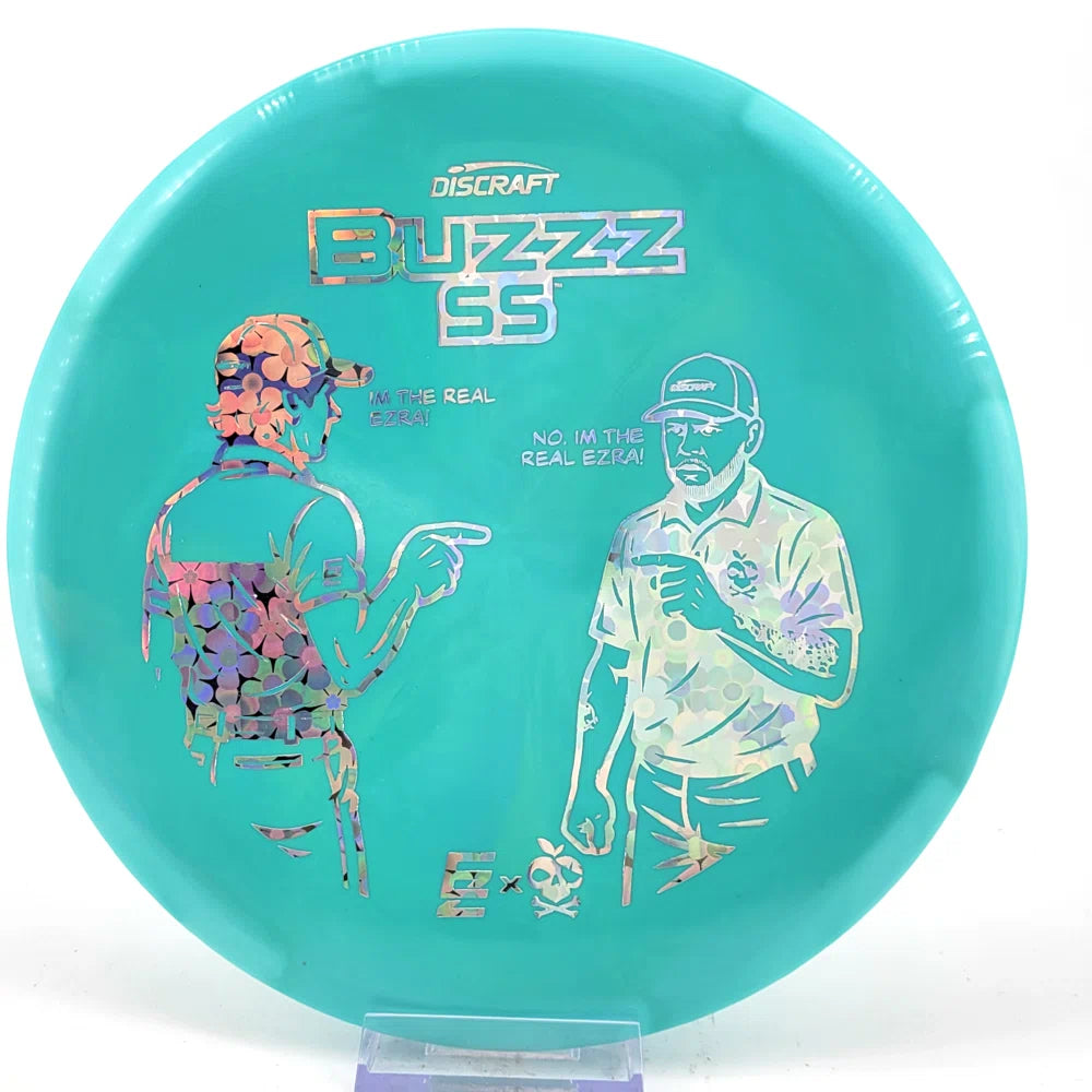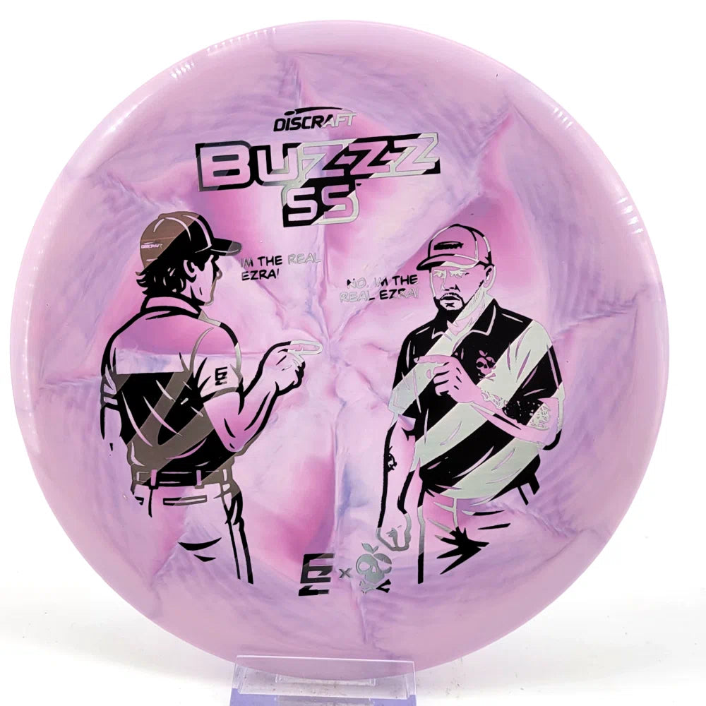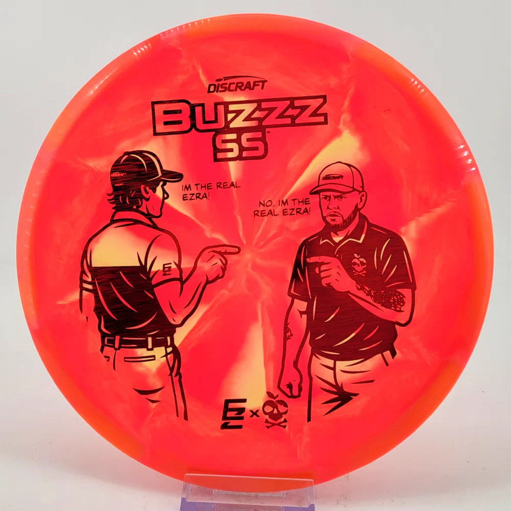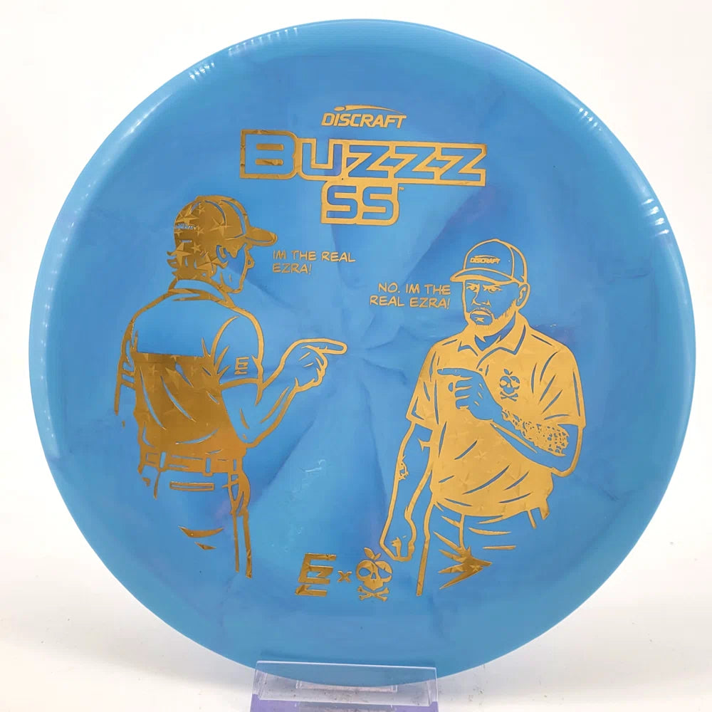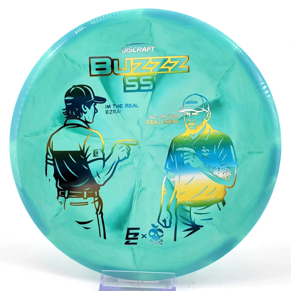 The Buzzz SS takes the classic Buzzz feel and adds buttery high-speed turn for dead-straight flights and gentle turnovers. In this Ezra Aderhold x Ezra Robinson collab, the playful “which Ezra is the real Ezra?” stamp leans into a lighthearted art to determine one question, who is the real Ezra? If you like a a midrange glides forever and holds the line you put it on, this will become a workhorse in your bag.