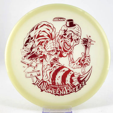 The Single-Foil Mega-Glo Halloween Buzzz turns darkness into its stage. Made from Discraft's popular Mega-Glo blend, this disc shines brighter and longer than any glow disc we’ve ever made. A minimalist single-foil stamp lets the unsettling clown artwork glow through the night—perfect for glow leagues or collectors seeking the most luminous Halloween Buzzz to date!
