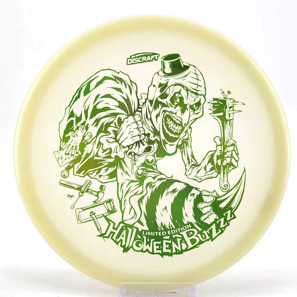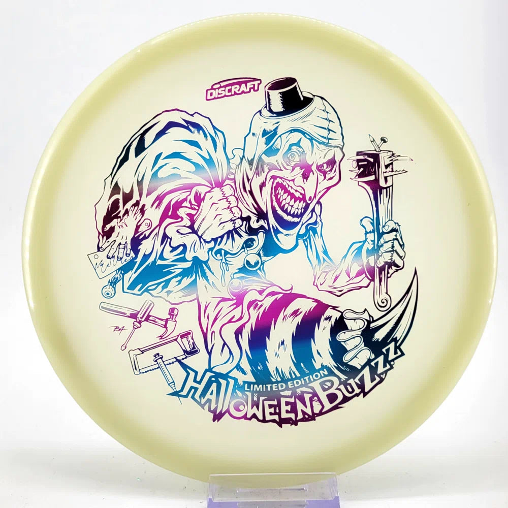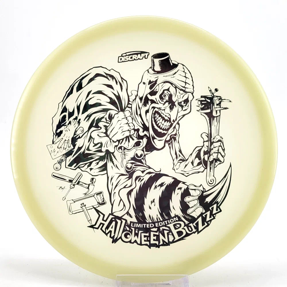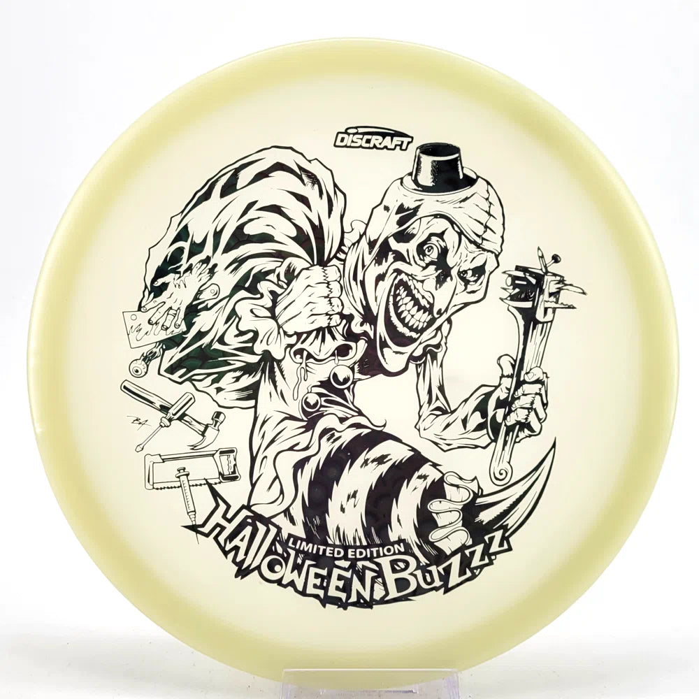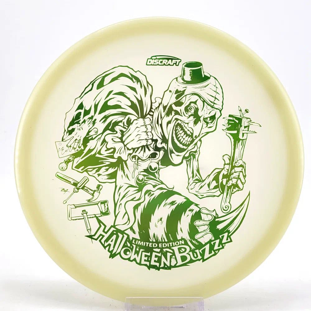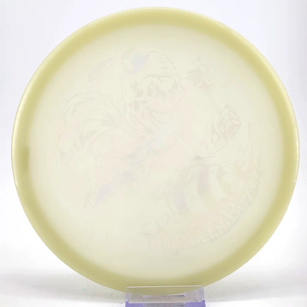 The Single-Foil Mega-Glo Halloween Buzzz turns darkness into its stage. Made from Discraft's popular Mega-Glo blend, this disc shines brighter and longer than any glow disc we’ve ever made. A minimalist single-foil stamp lets the unsettling clown artwork glow through the night—perfect for glow leagues or collectors seeking the most luminous Halloween Buzzz to date!