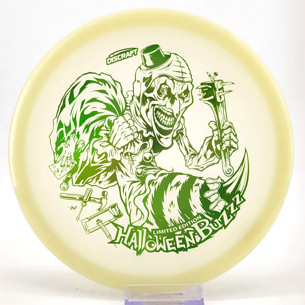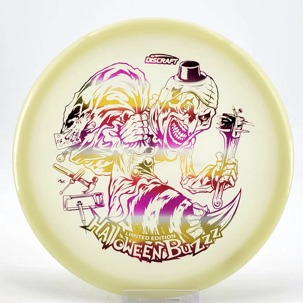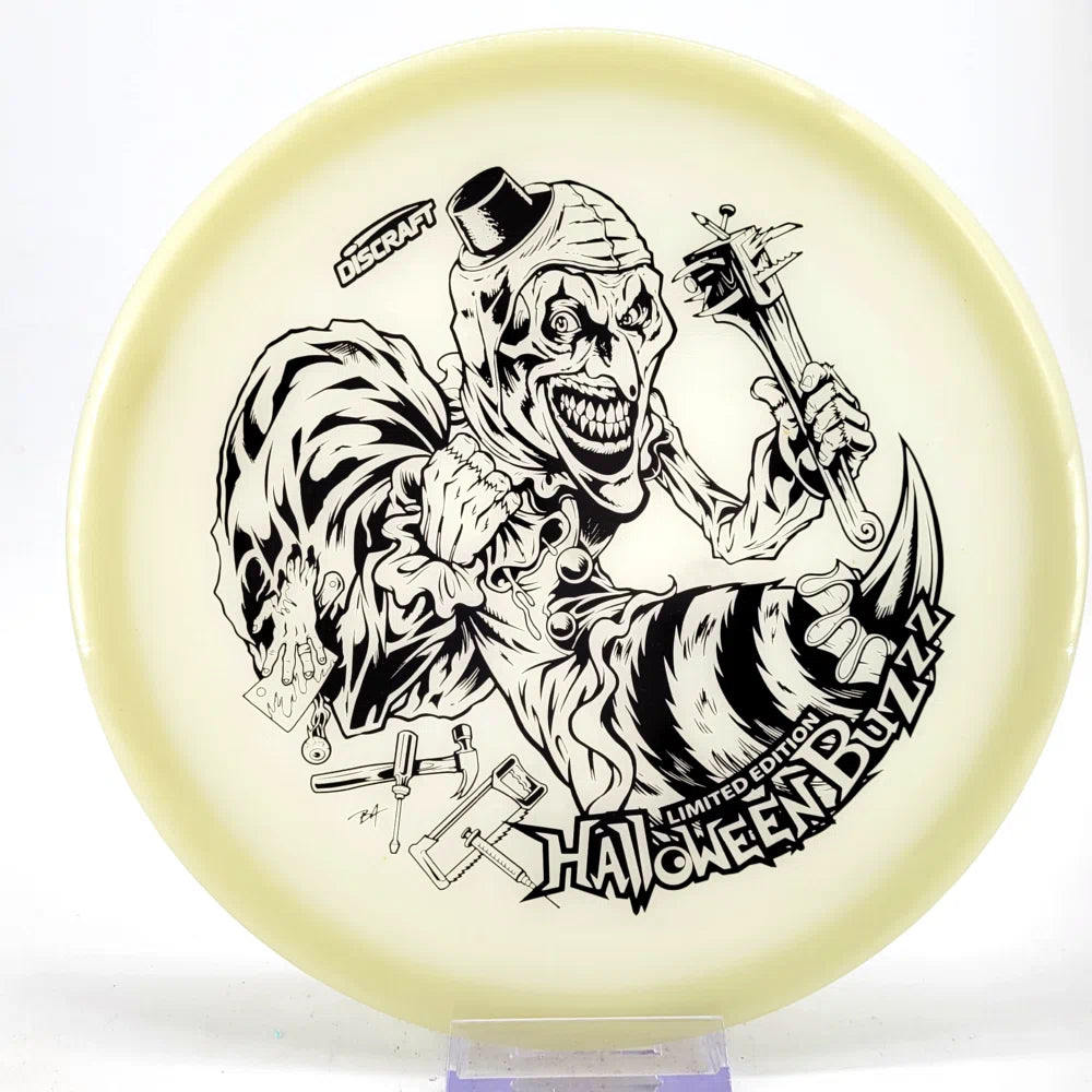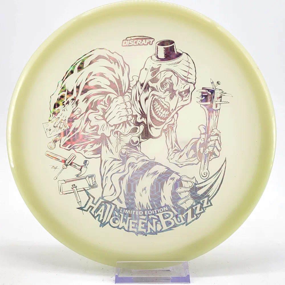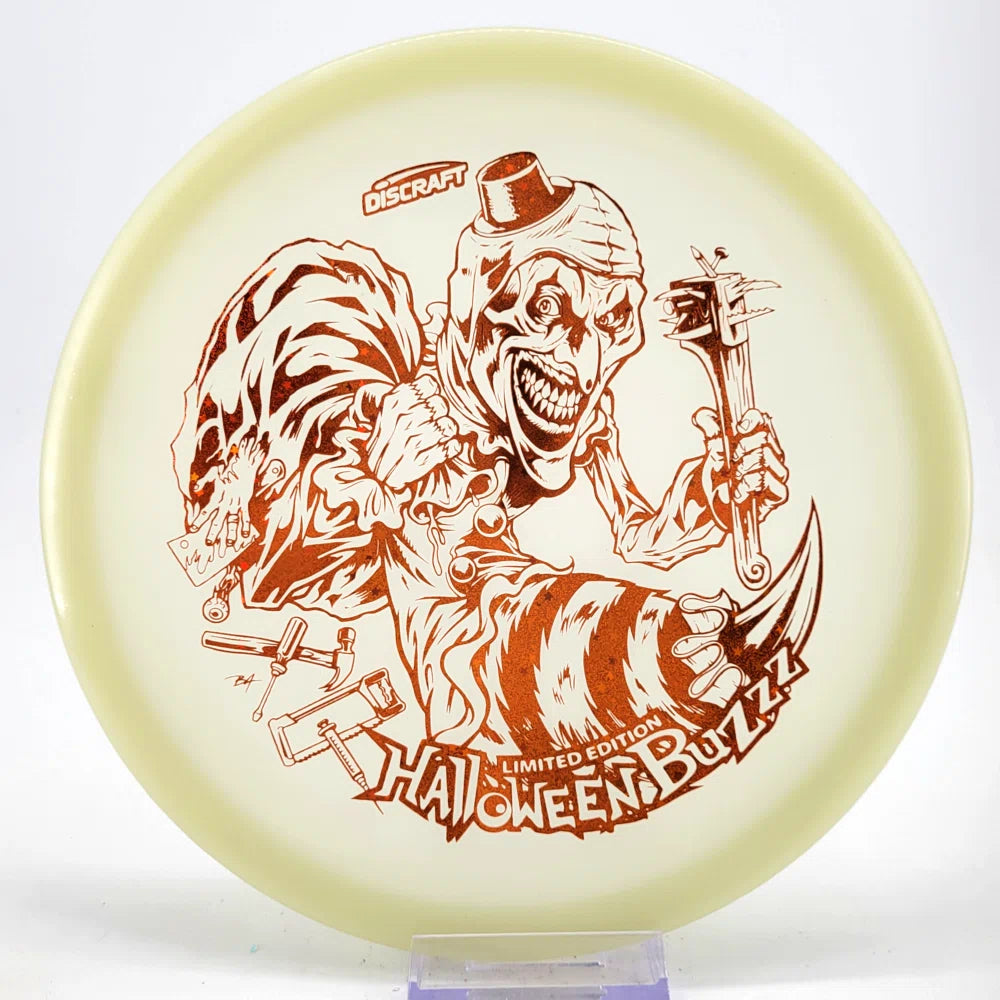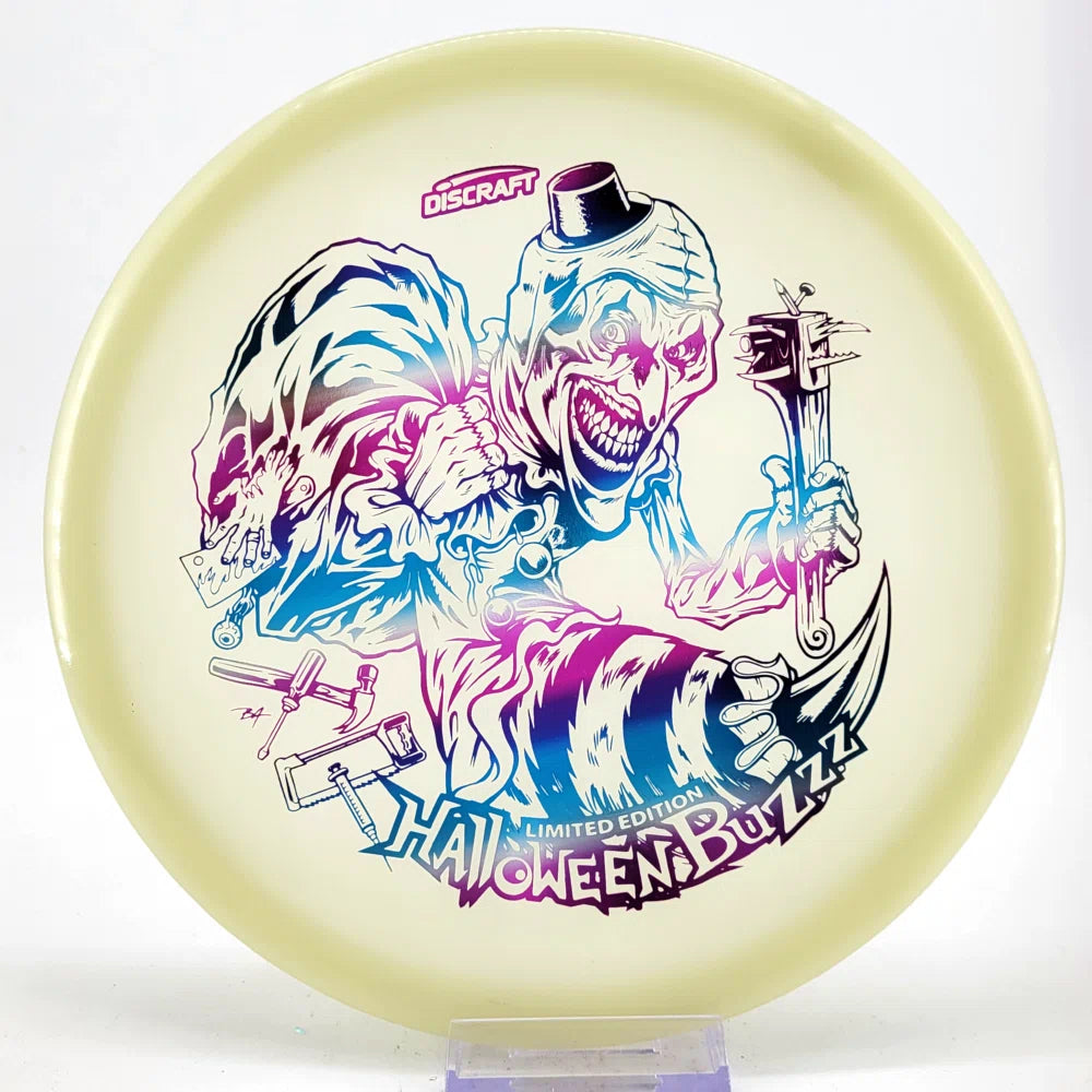 The Single-Foil Mega-Glo Halloween Buzzz turns darkness into its stage. Made from Discraft's popular Mega-Glo blend, this disc shines brighter and longer than any glow disc we’ve ever made. A minimalist single-foil stamp lets the unsettling clown artwork glow through the night—perfect for glow leagues or collectors seeking the most luminous Halloween Buzzz to date!