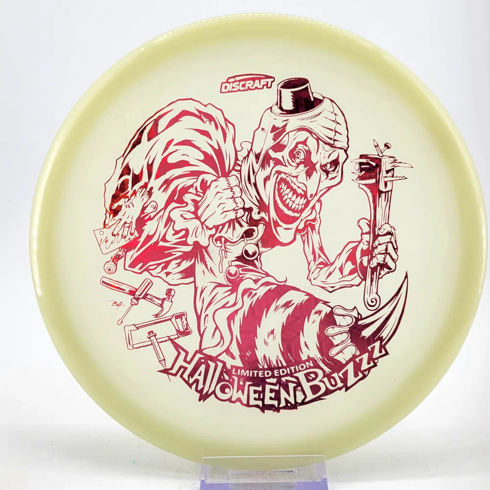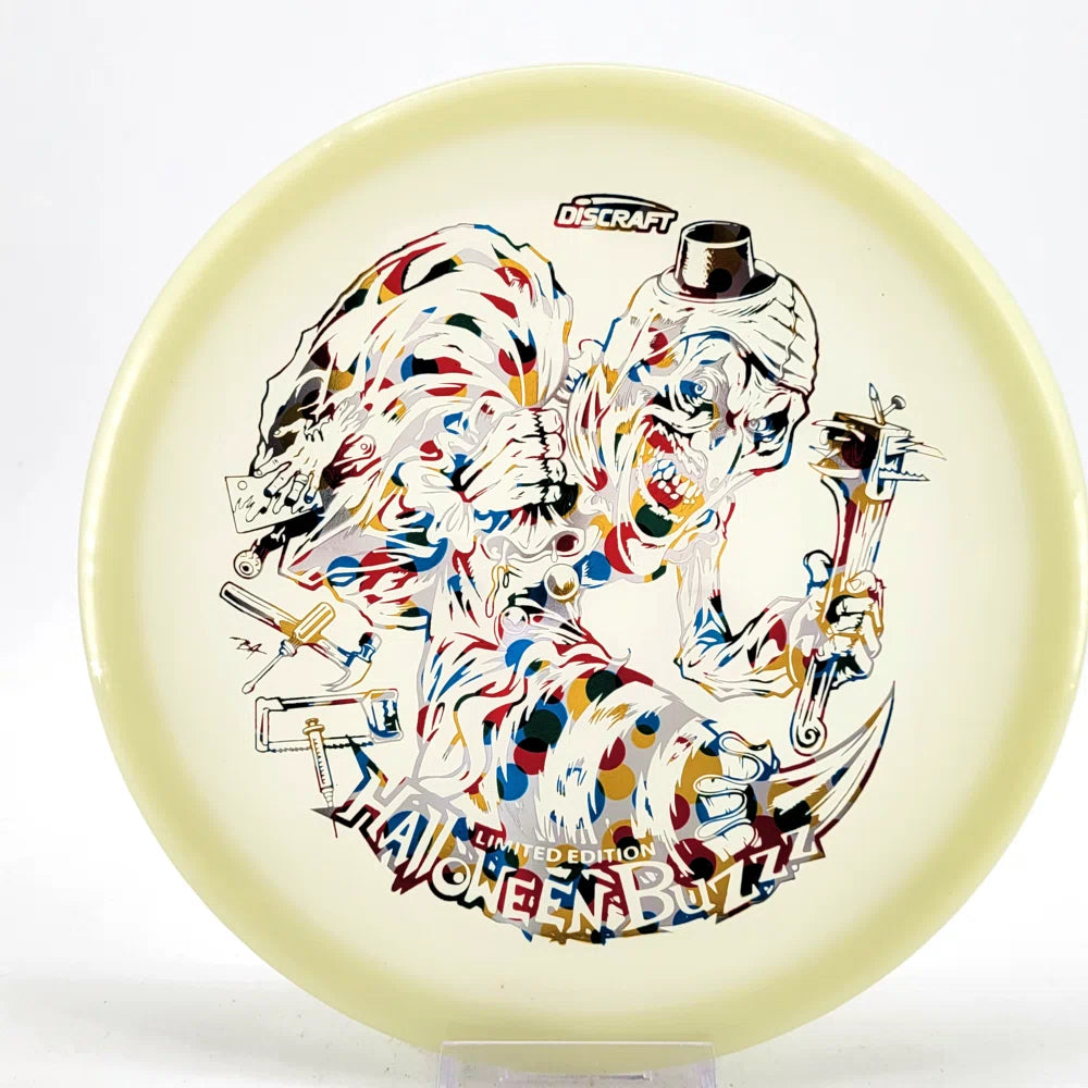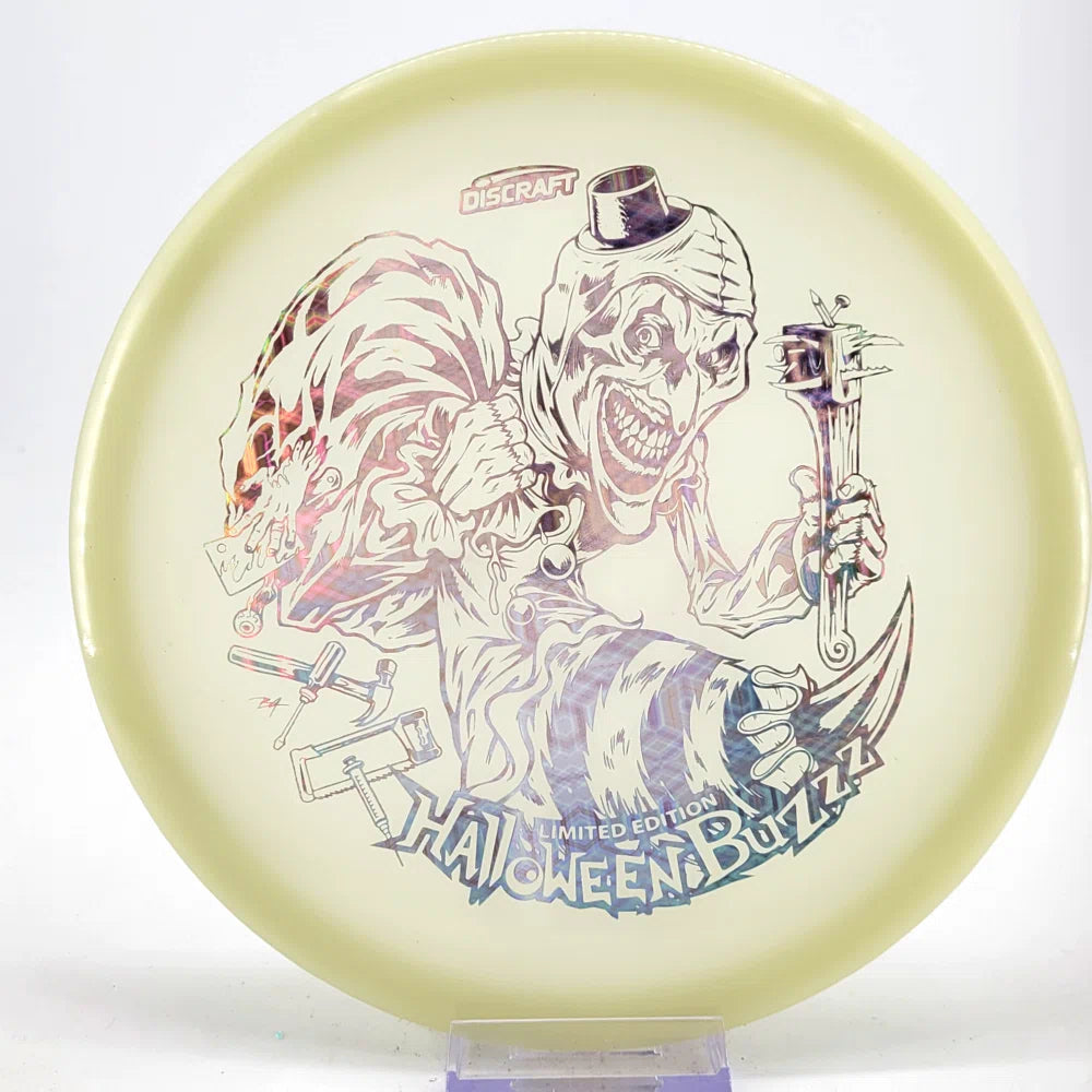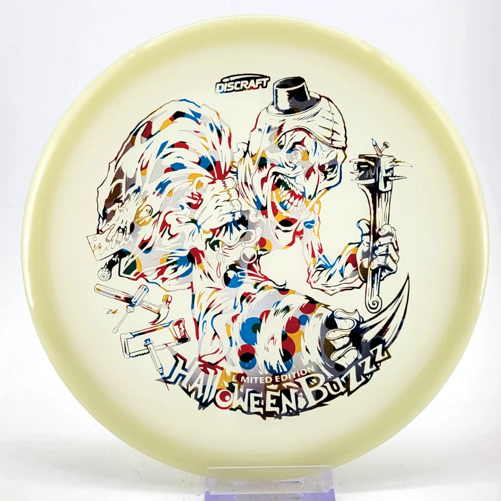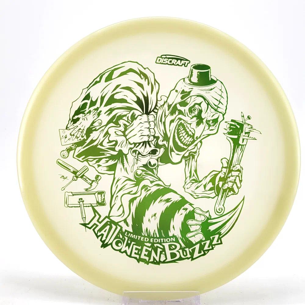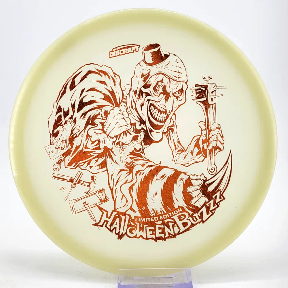 The Single-Foil Mega-Glo Halloween Buzzz turns darkness into its stage. Made from Discraft's popular Mega-Glo blend, this disc shines brighter and longer than any glow disc we’ve ever made. A minimalist single-foil stamp lets the unsettling clown artwork glow through the night—perfect for glow leagues or collectors seeking the most luminous Halloween Buzzz to date!