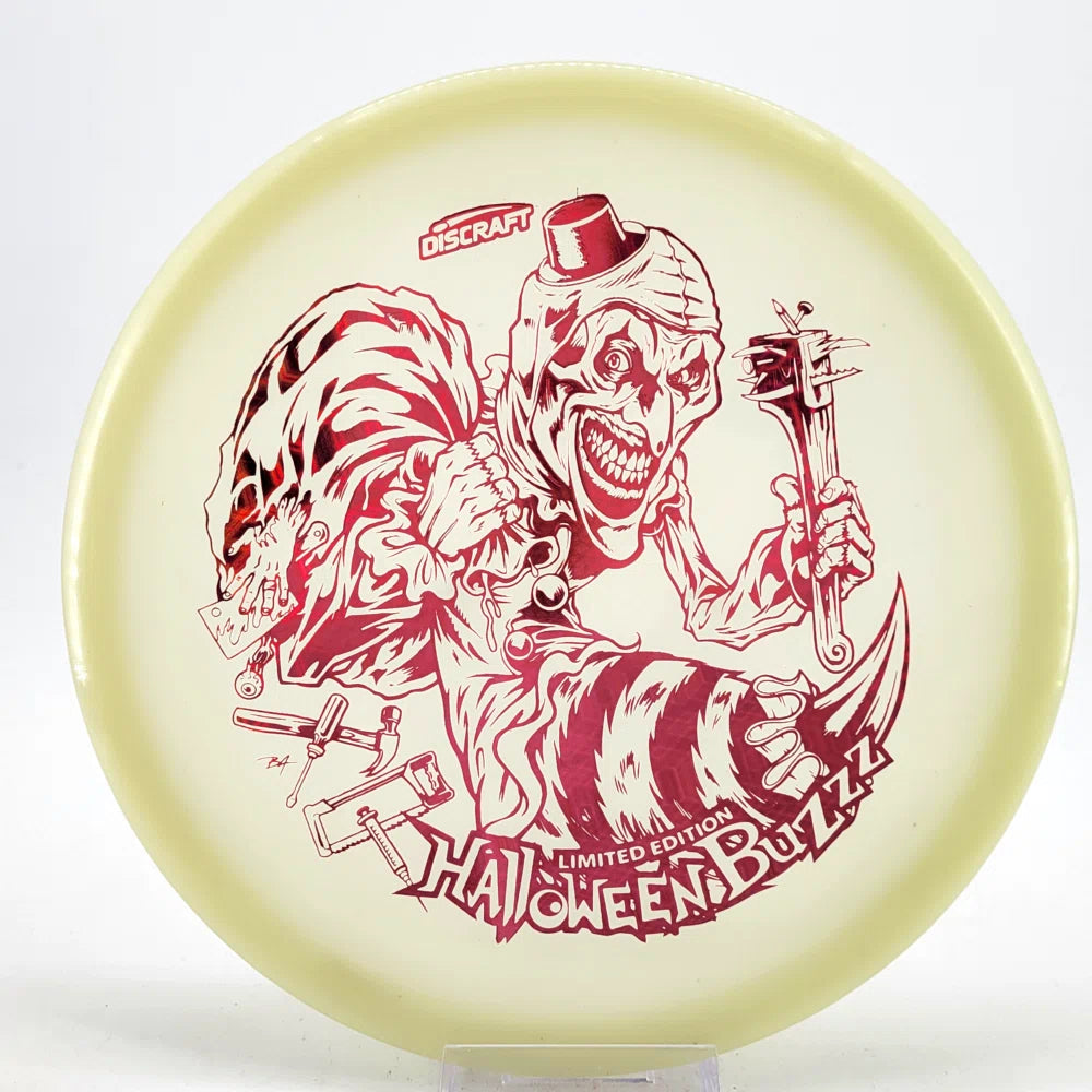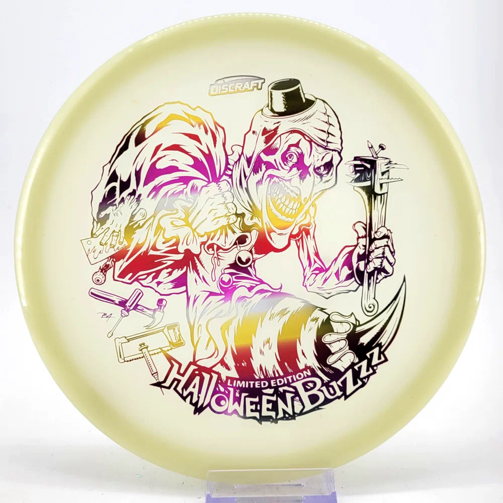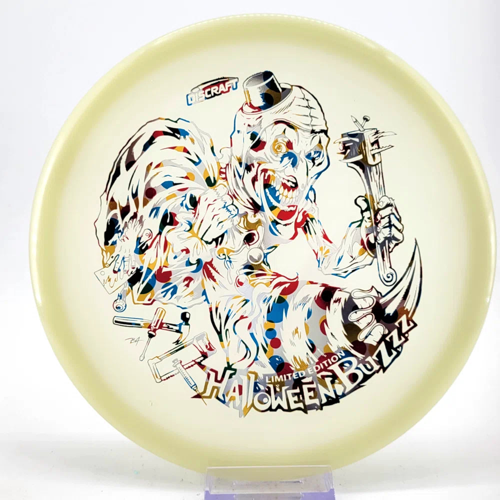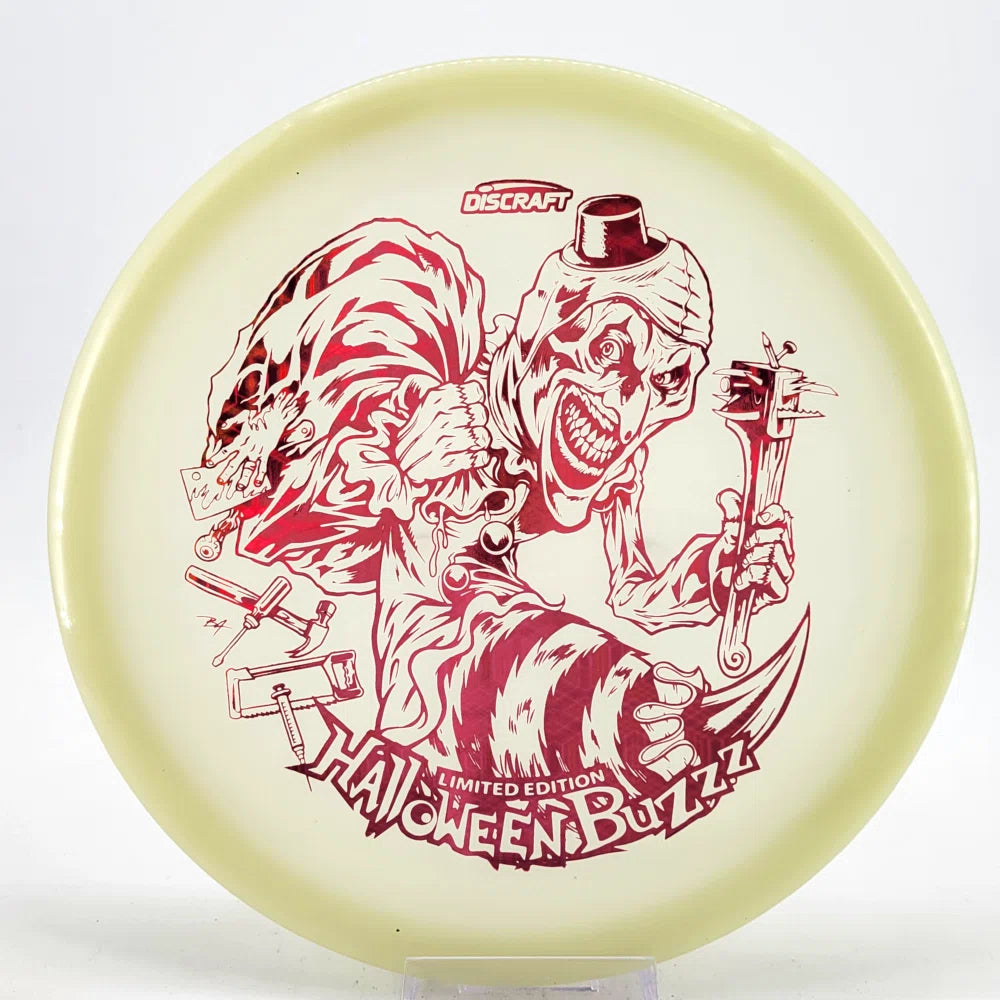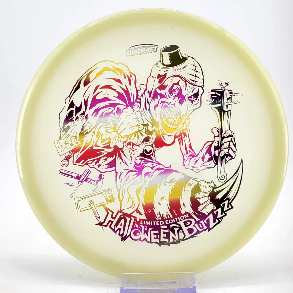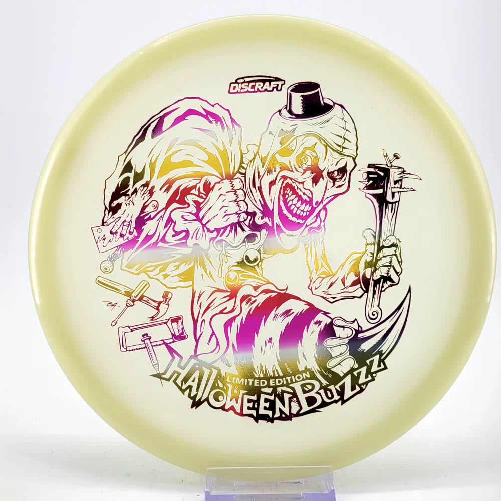 The Single-Foil Mega-Glo Halloween Buzzz turns darkness into its stage. Made from Discraft's popular Mega-Glo blend, this disc shines brighter and longer than any glow disc we’ve ever made. A minimalist single-foil stamp lets the unsettling clown artwork glow through the night—perfect for glow leagues or collectors seeking the most luminous Halloween Buzzz to date!