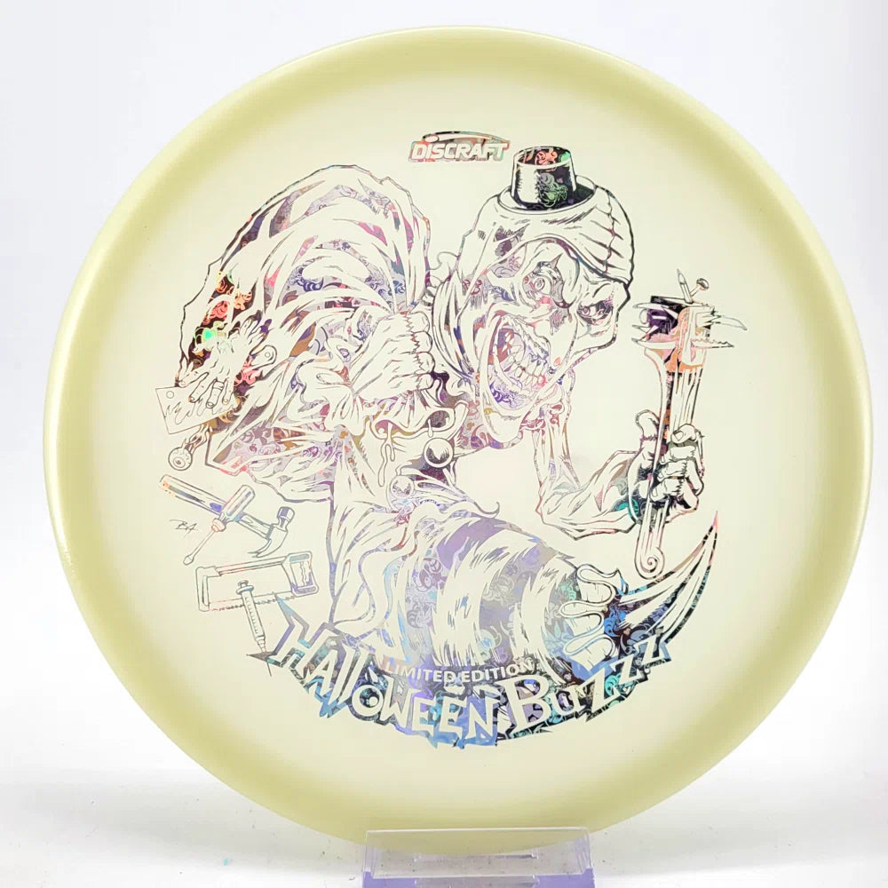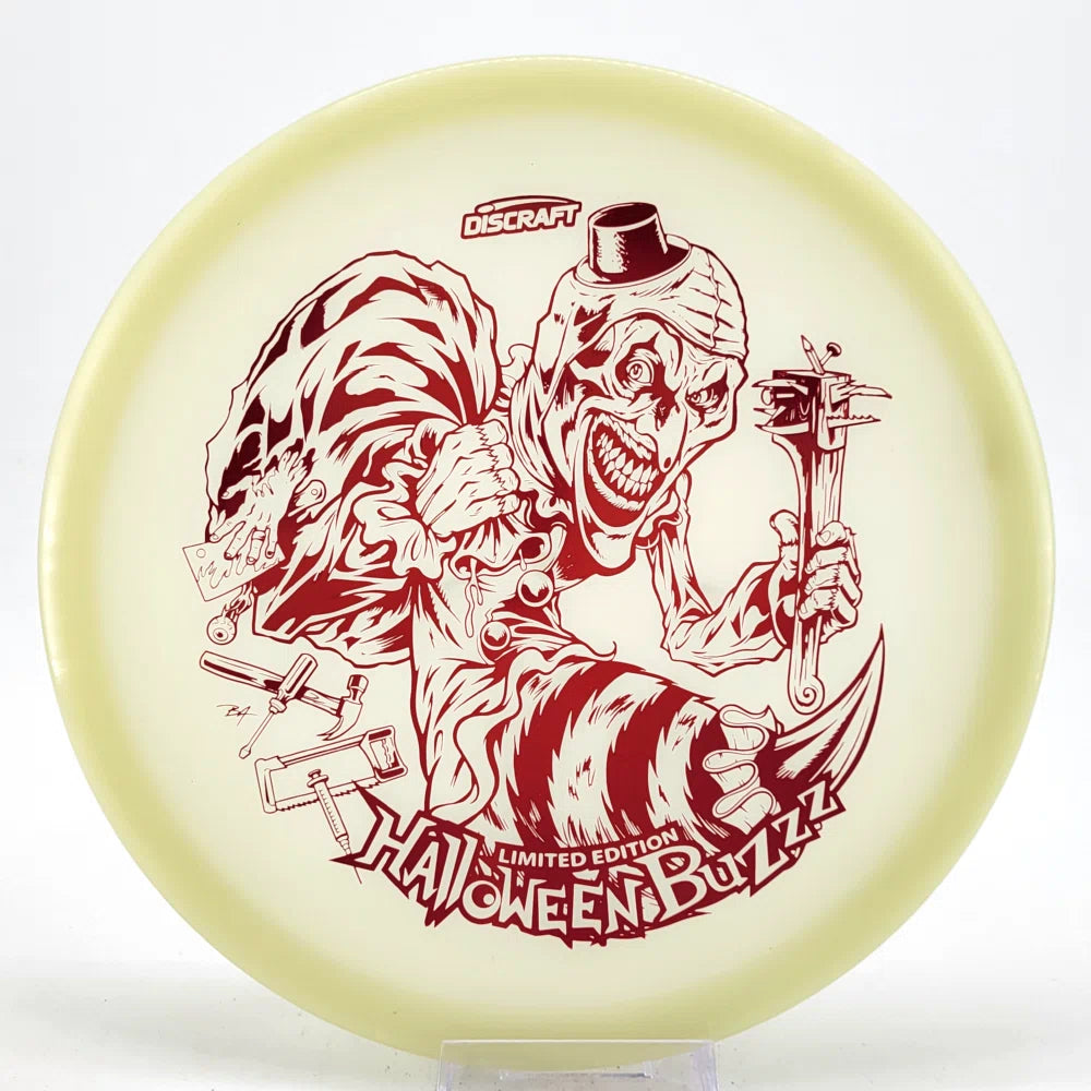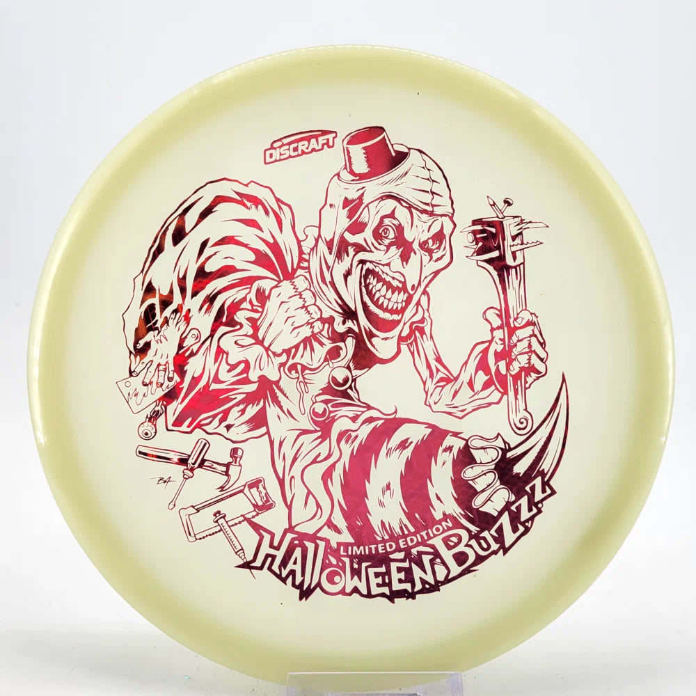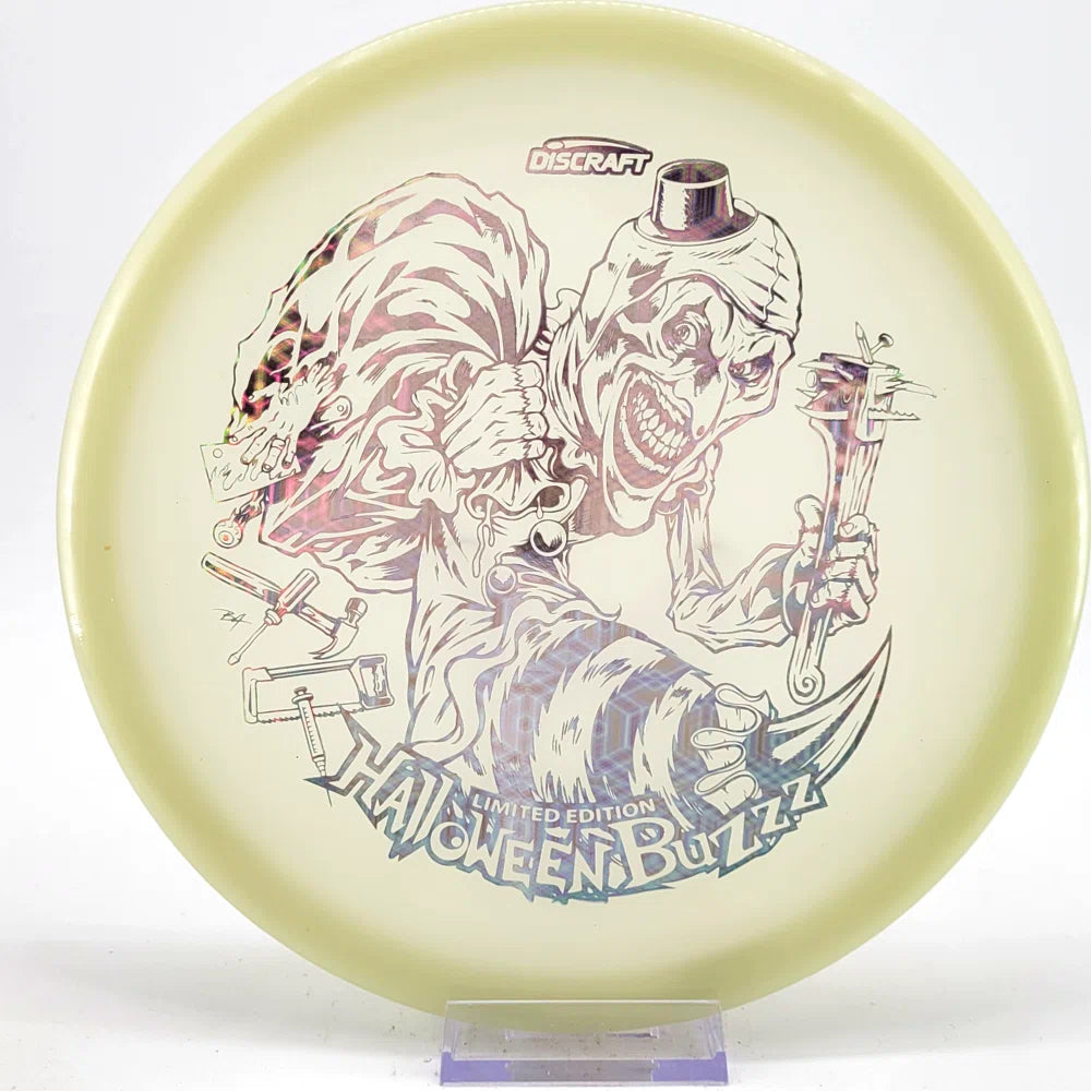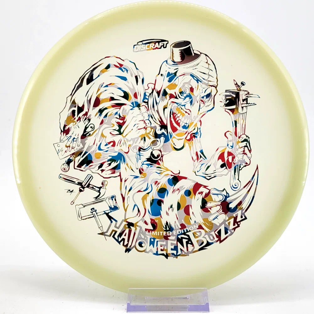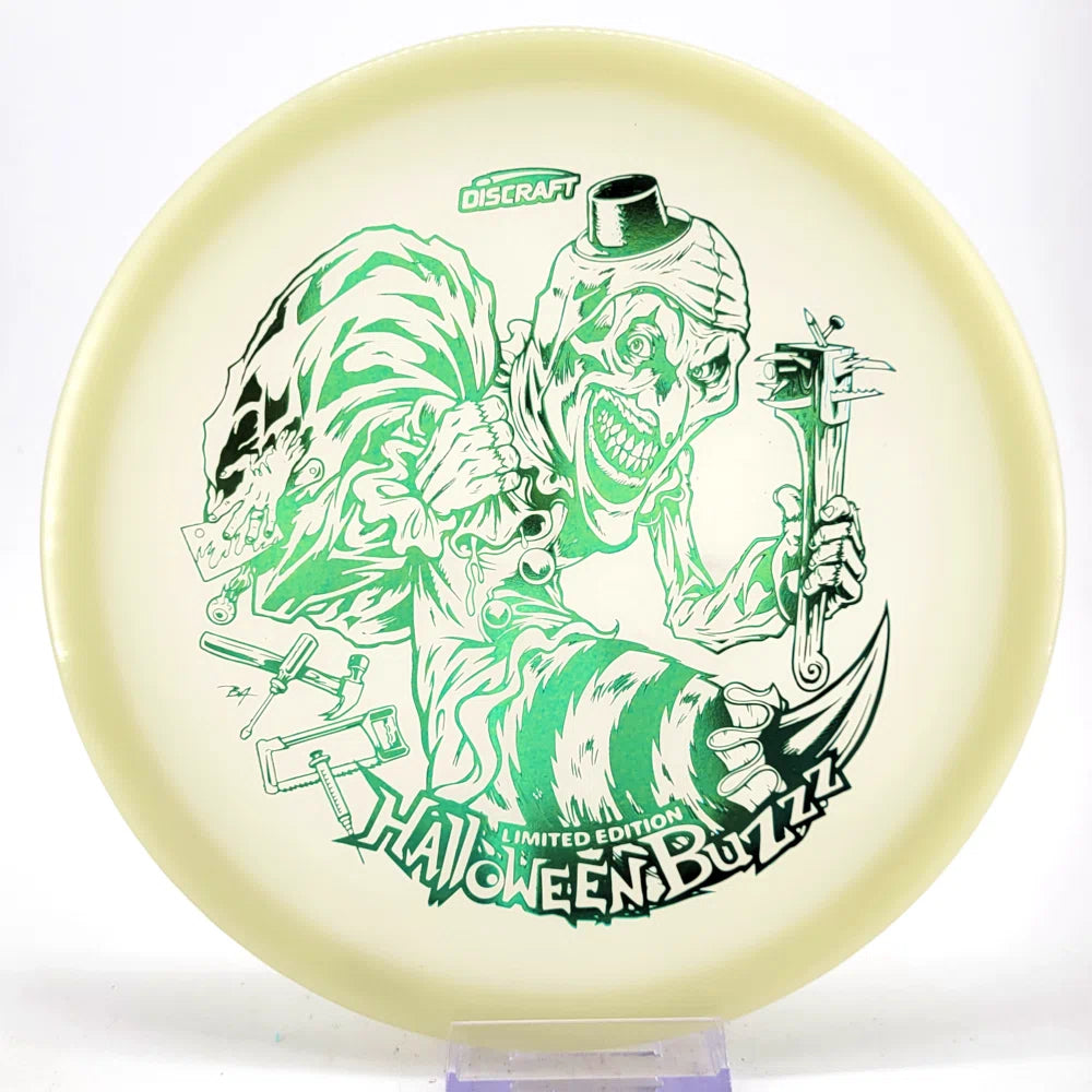 The Single-Foil Mega-Glo Halloween Buzzz turns darkness into its stage. Made from Discraft's popular Mega-Glo blend, this disc shines brighter and longer than any glow disc we’ve ever made. A minimalist single-foil stamp lets the unsettling clown artwork glow through the night—perfect for glow leagues or collectors seeking the most luminous Halloween Buzzz to date!
