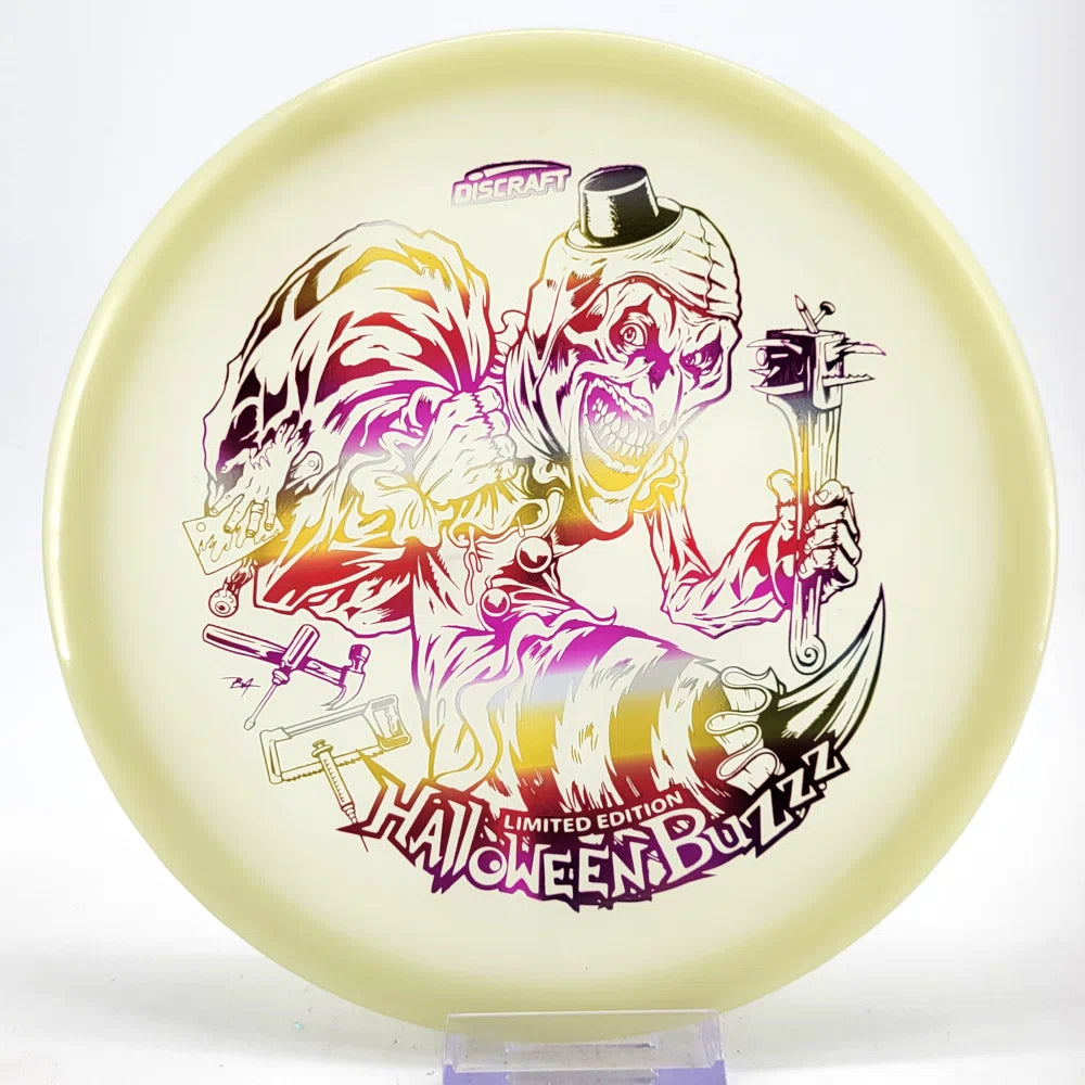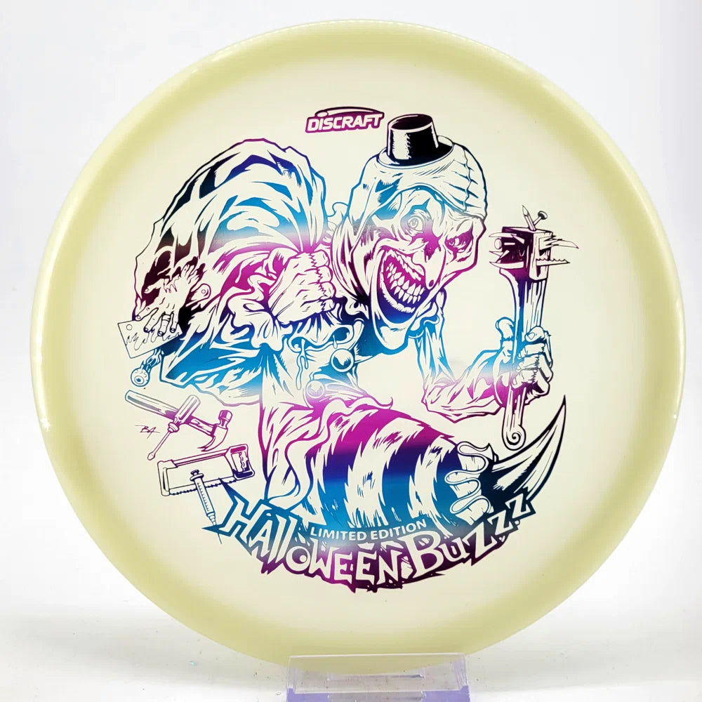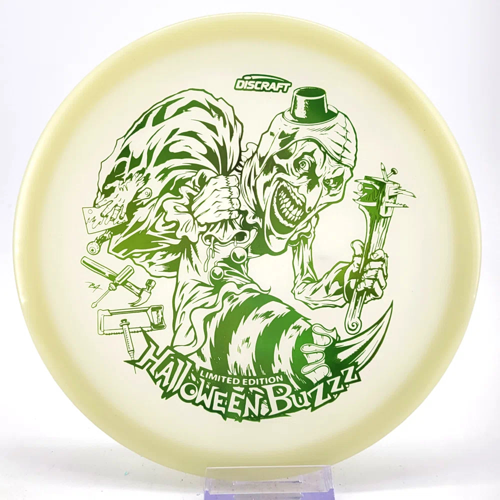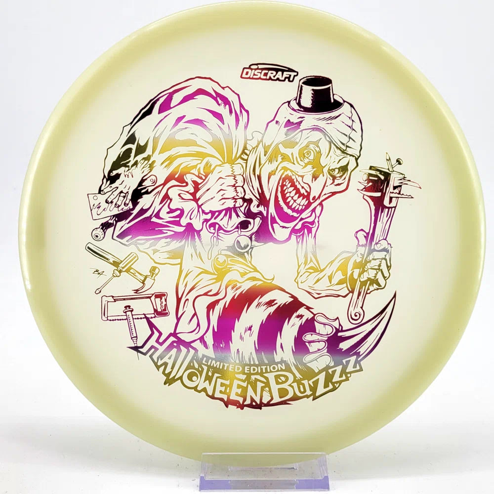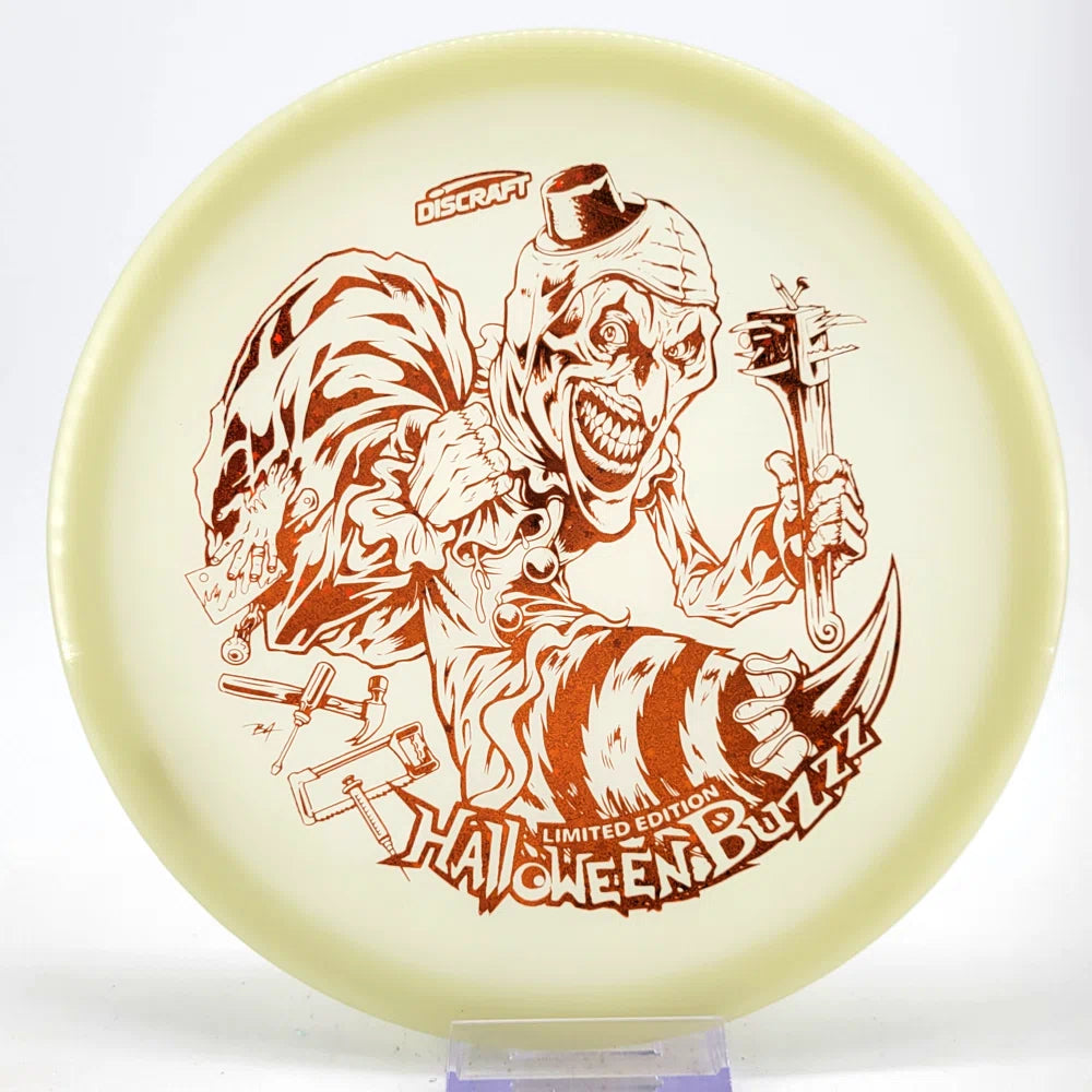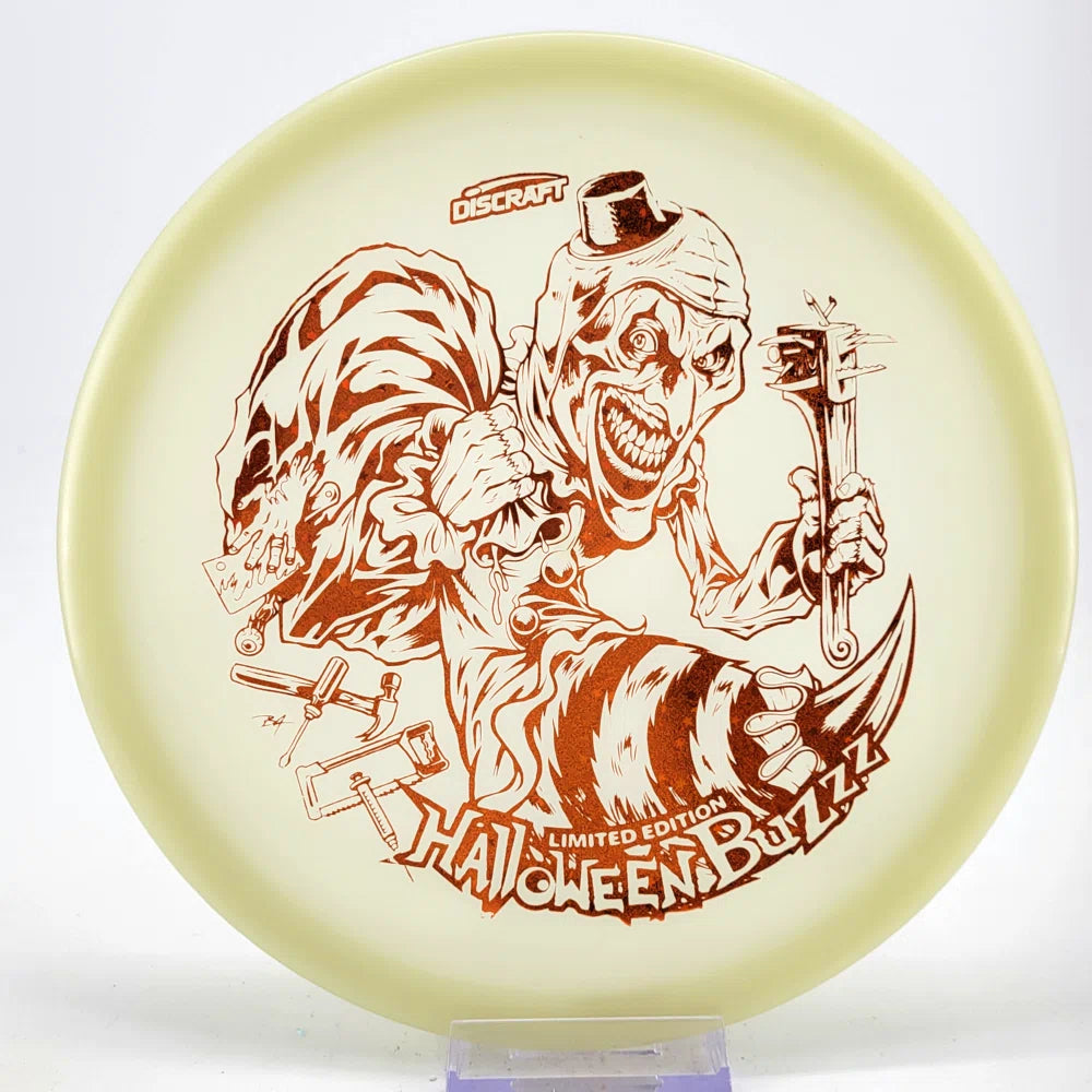 The Single-Foil Mega-Glo Halloween Buzzz turns darkness into its stage. Made from Discraft's popular Mega-Glo blend, this disc shines brighter and longer than any glow disc we’ve ever made. A minimalist single-foil stamp lets the unsettling clown artwork glow through the night—perfect for glow leagues or collectors seeking the most luminous Halloween Buzzz to date!