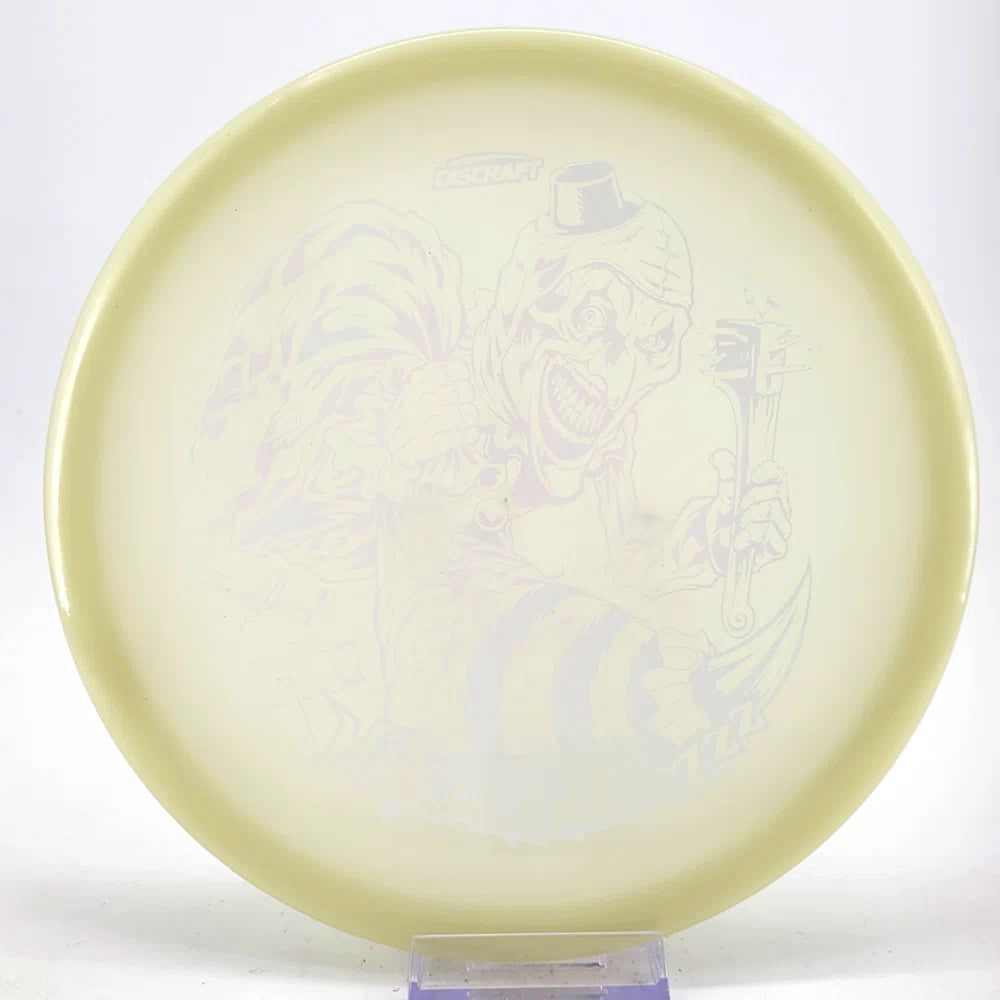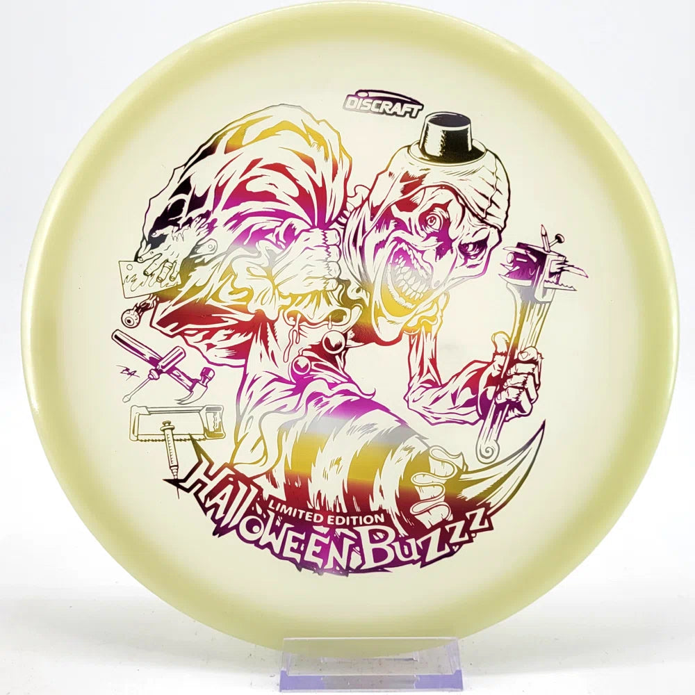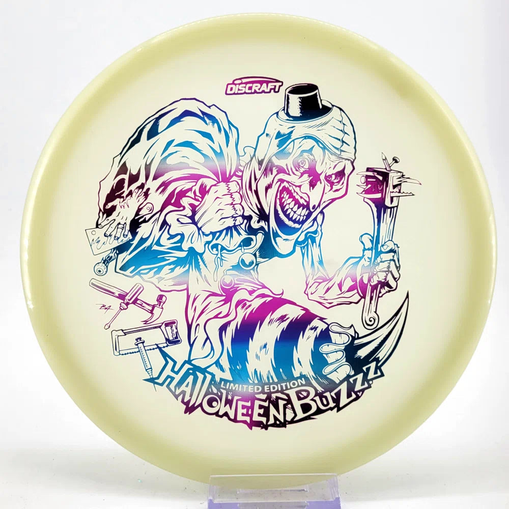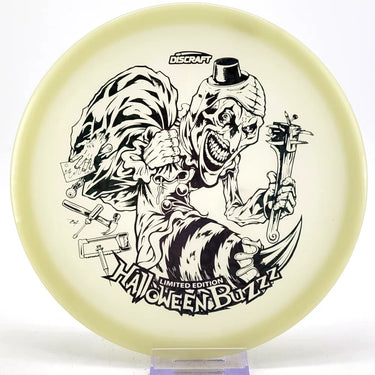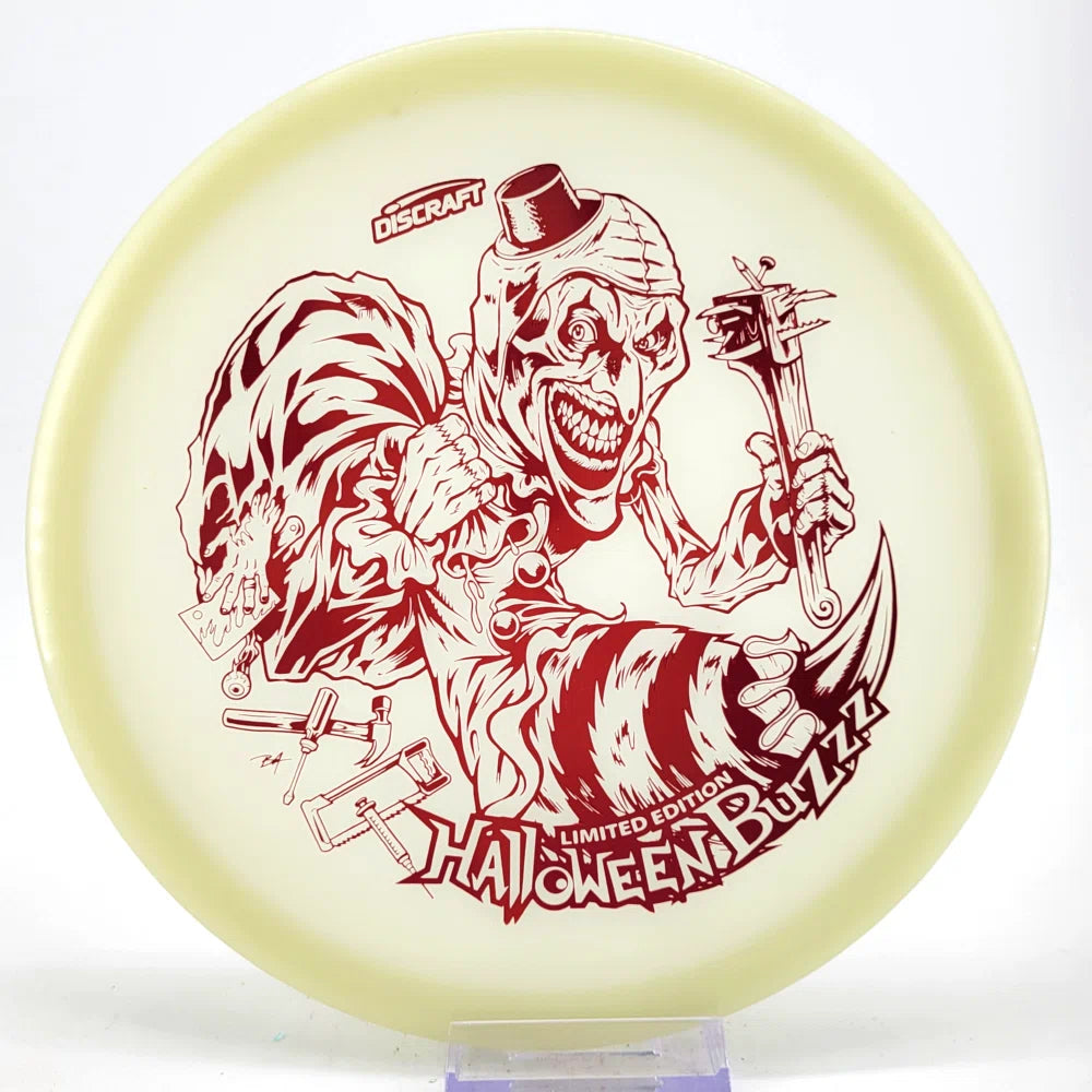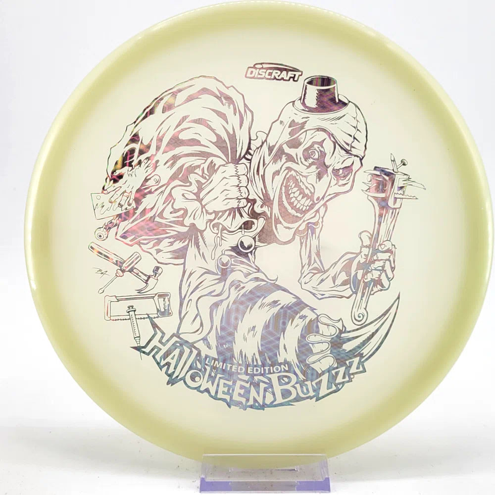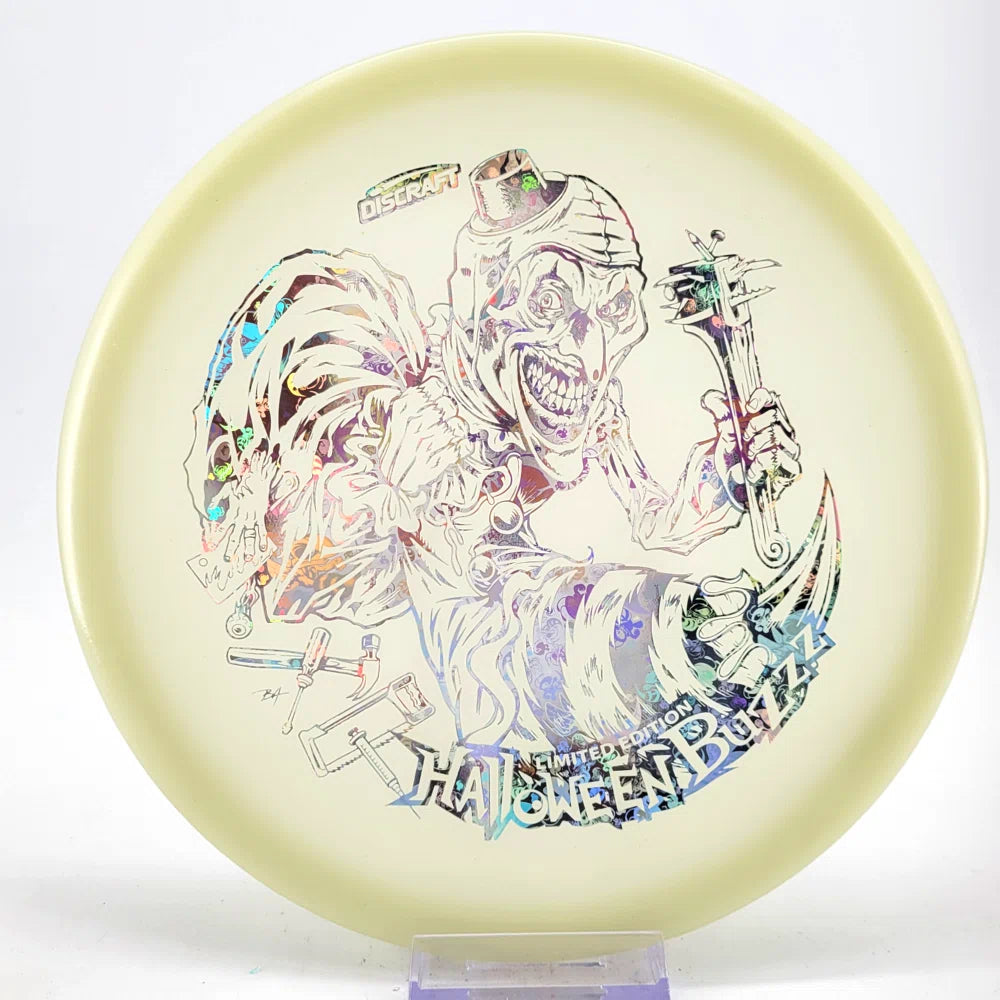 The Single-Foil Mega-Glo Halloween Buzzz turns darkness into its stage. Made from Discraft's popular Mega-Glo blend, this disc shines brighter and longer than any glow disc we’ve ever made. A minimalist single-foil stamp lets the unsettling clown artwork glow through the night—perfect for glow leagues or collectors seeking the most luminous Halloween Buzzz to date!