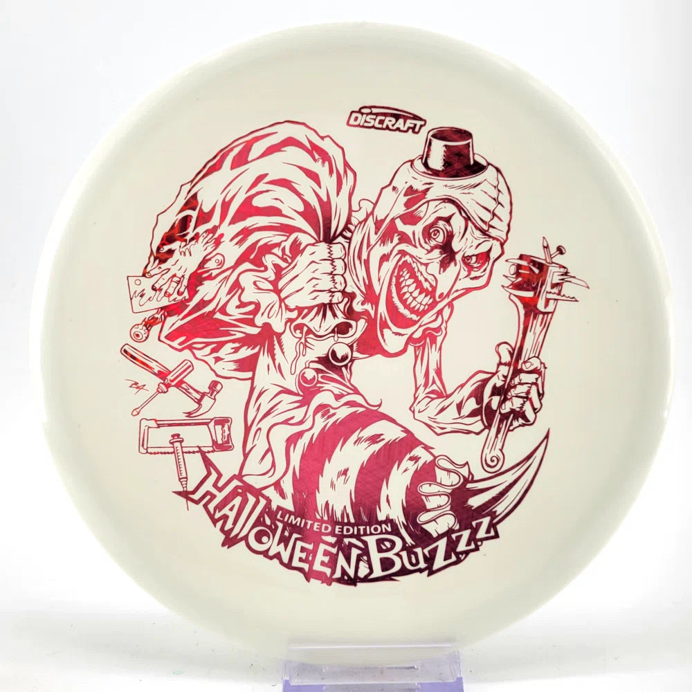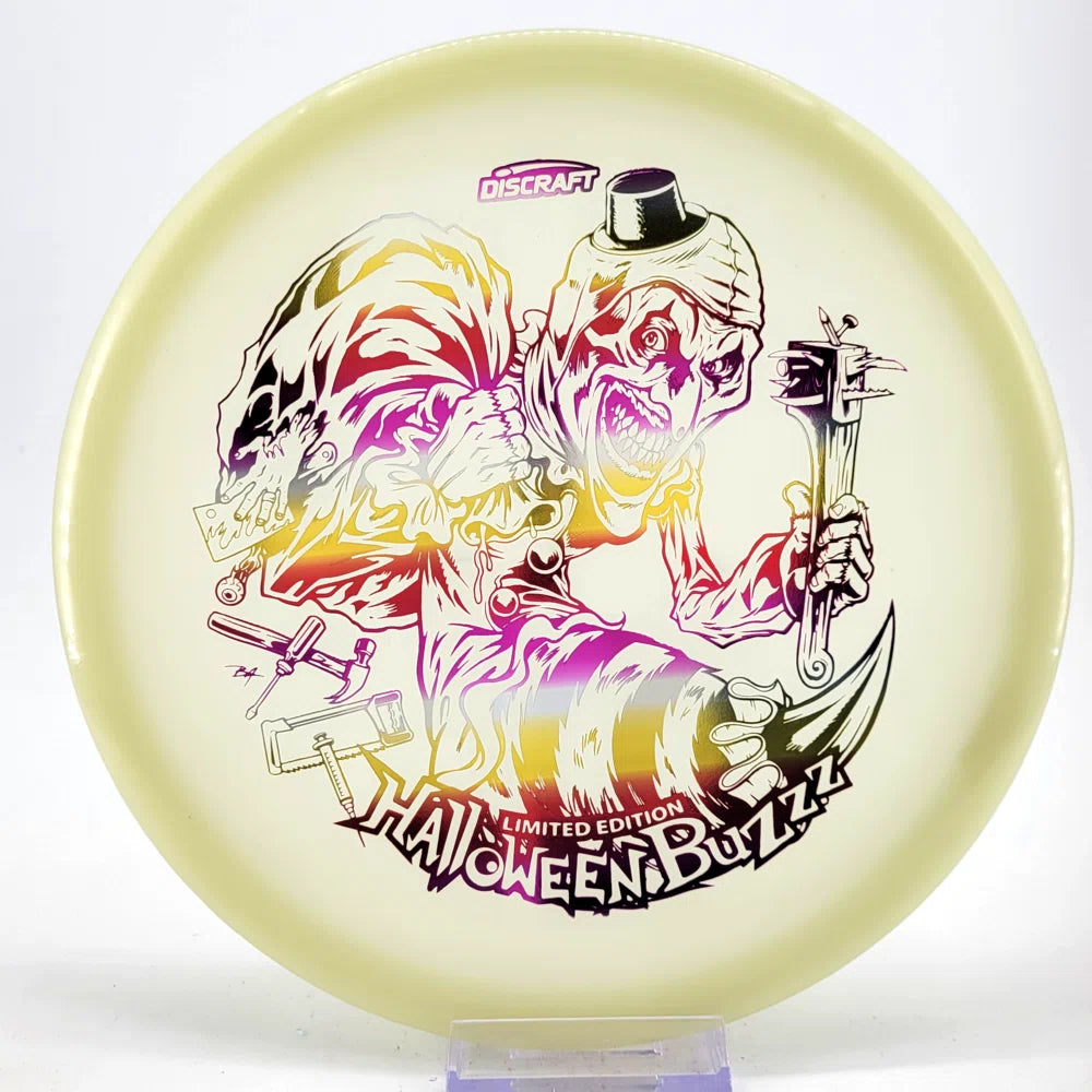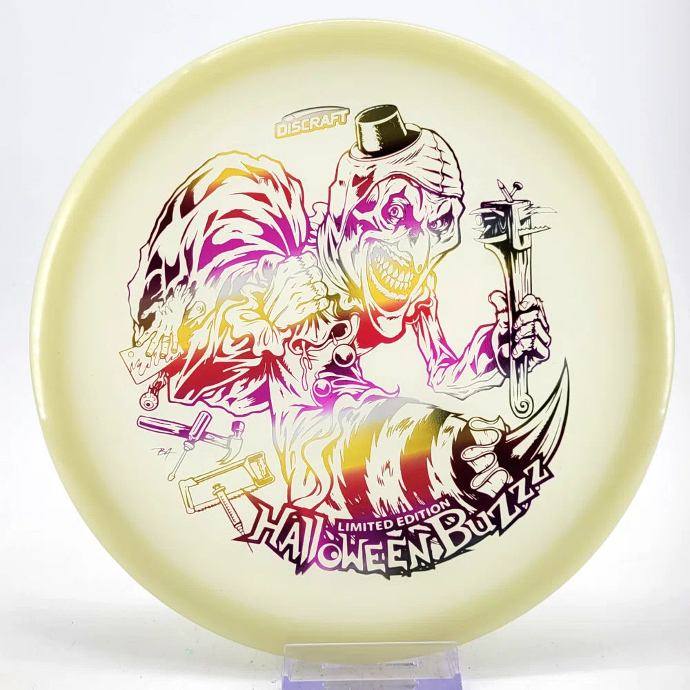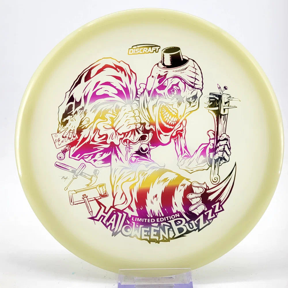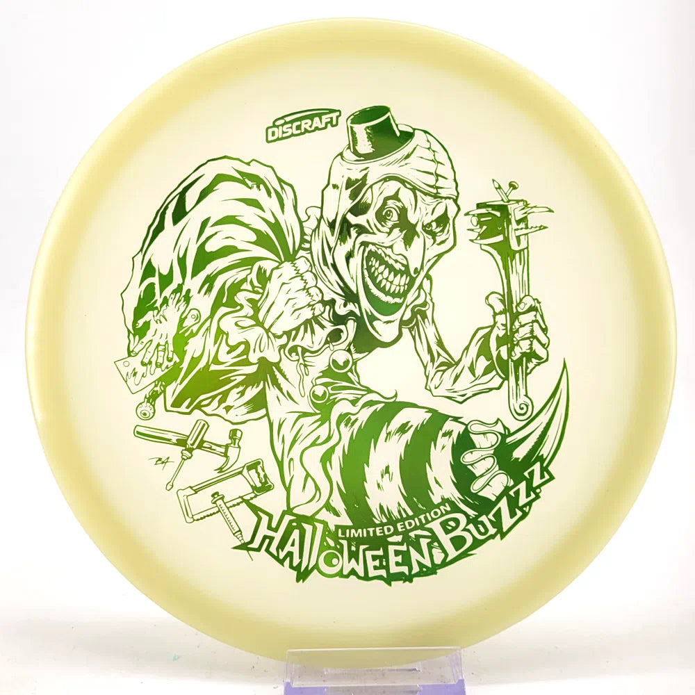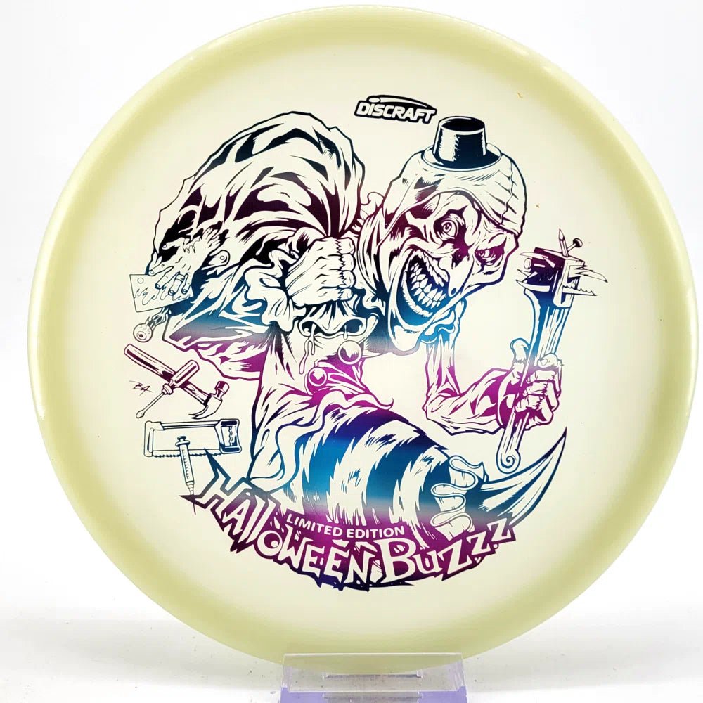 The Single-Foil Mega-Glo Halloween Buzzz turns darkness into its stage. Made from Discraft's popular Mega-Glo blend, this disc shines brighter and longer than any glow disc we’ve ever made. A minimalist single-foil stamp lets the unsettling clown artwork glow through the night—perfect for glow leagues or collectors seeking the most luminous Halloween Buzzz to date!