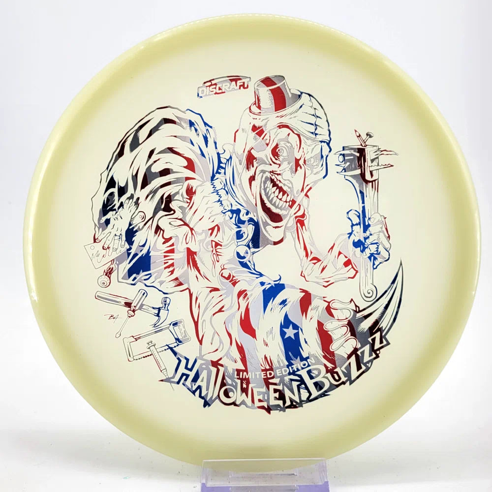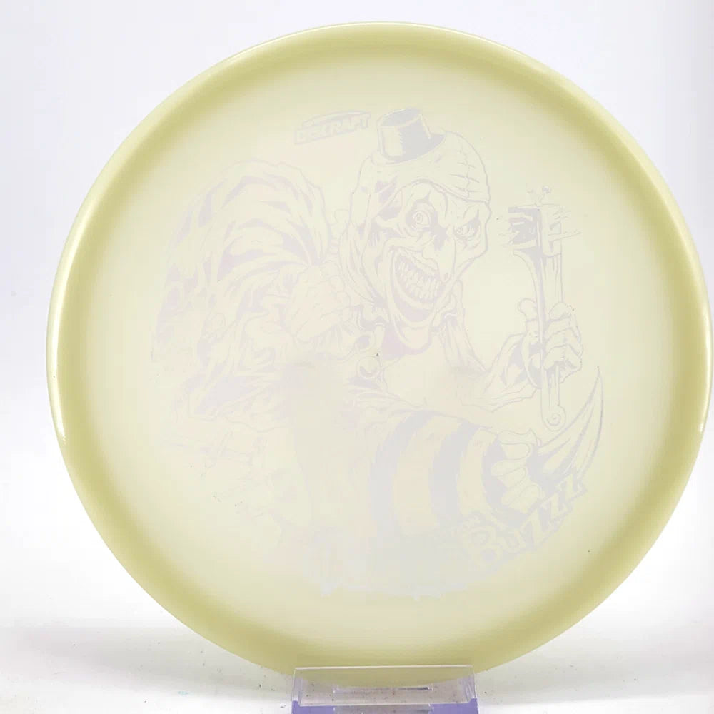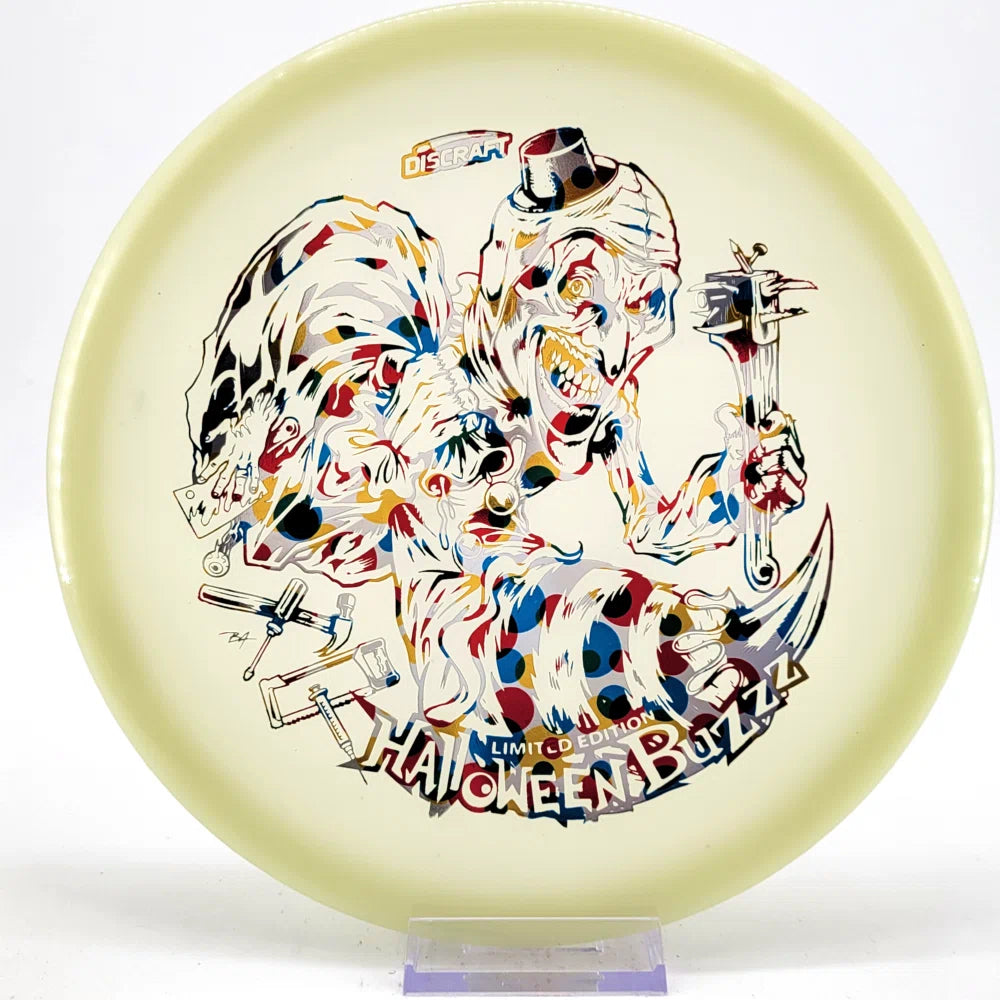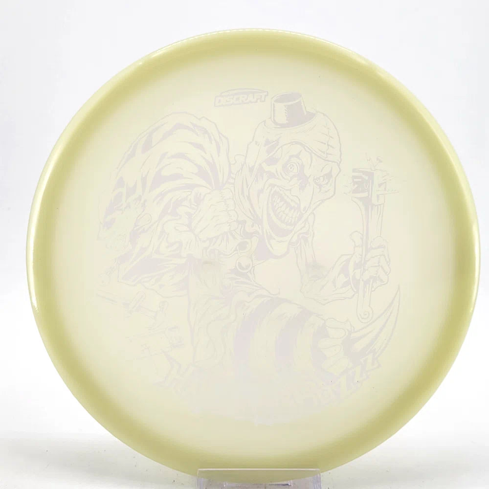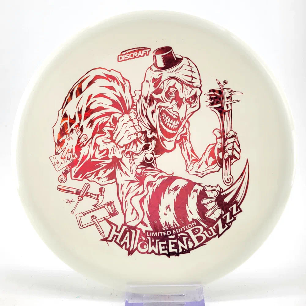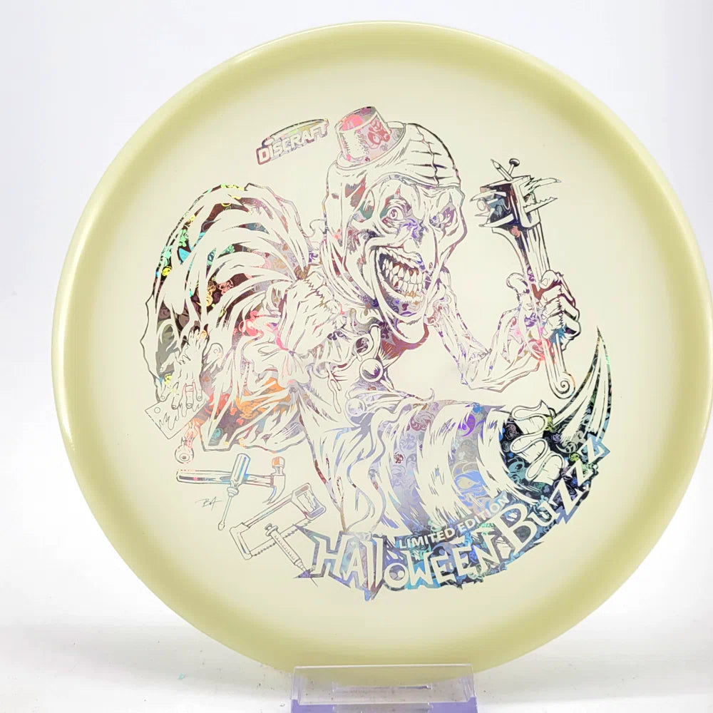 The Single-Foil Mega-Glo Halloween Buzzz turns darkness into its stage. Made from Discraft's popular Mega-Glo blend, this disc shines brighter and longer than any glow disc we’ve ever made. A minimalist single-foil stamp lets the unsettling clown artwork glow through the night—perfect for glow leagues or collectors seeking the most luminous Halloween Buzzz to date!