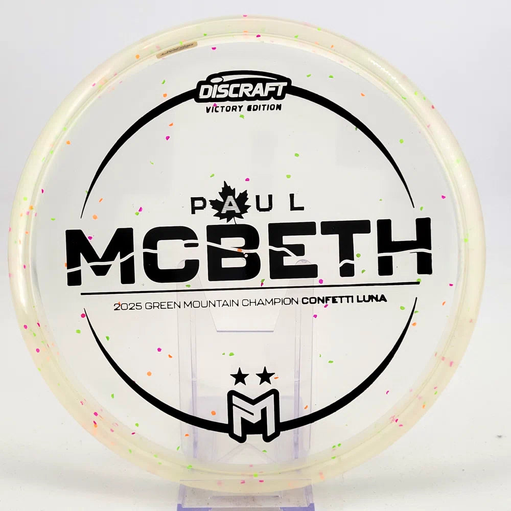 Celebrate greatness with the Paul McBeth Victory Edition Luna. Released in Z Confetti, this special edition honors Paul’s impressive win at the Green Mountain Championship—his second DGPT victory of the season. The Luna is already one of the most trusted putters in disc golf, and this limited Victory Edition offers retailers and players alike a collectible piece tied directly to a major achievement in Paul’s 2025 season.