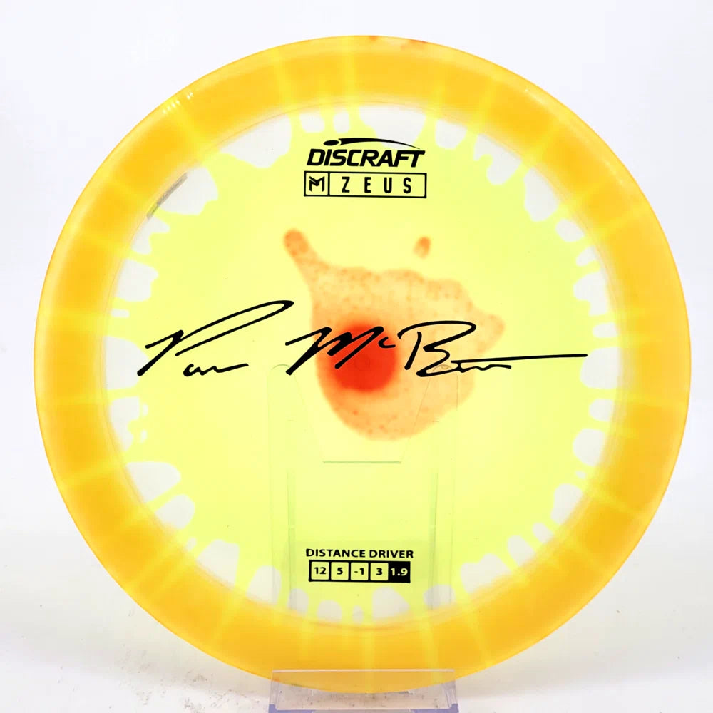 The Zeus is Paul McBeth’s first distance driver in his lineup. The Zeus is a powerfully overstable driver meant for full power distance drives for advanced players. Now as a special edition run in Big Z plastic, this driver gets a new plastic with a special stamp, adding even more versatility to the flight paths you can achieve.