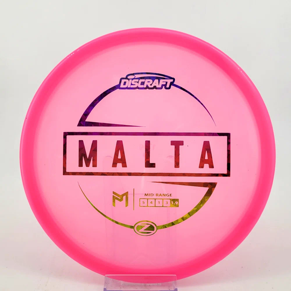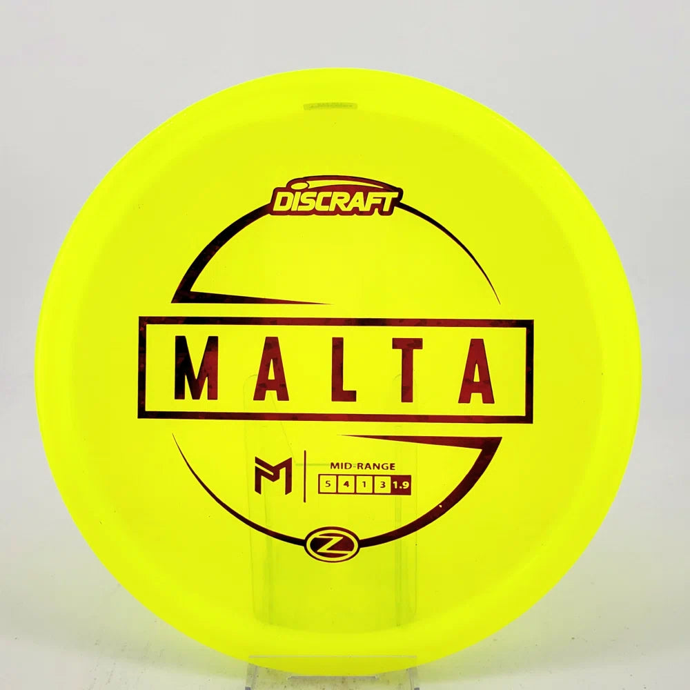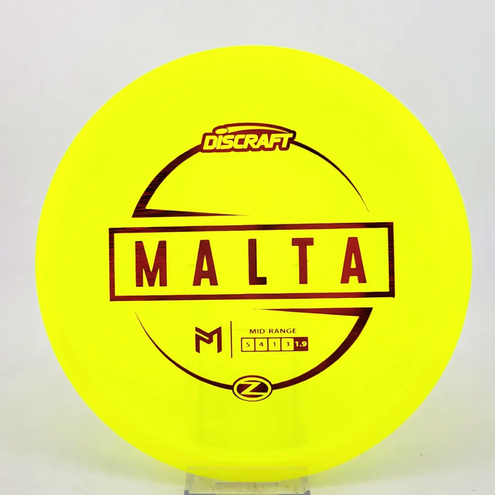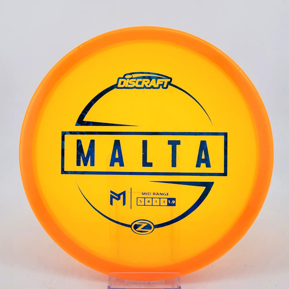 The Malta is Paul McBeth's 4th disc, an overstable midrange. The Malta has a strong and controllable flight. It has a similar feel and flight to the Zone, but having the distance and trustworthiness as a Buzzz. The Diameter is slightly bigger than a Zone, but not as wide as a full size wide-diameter mid range.