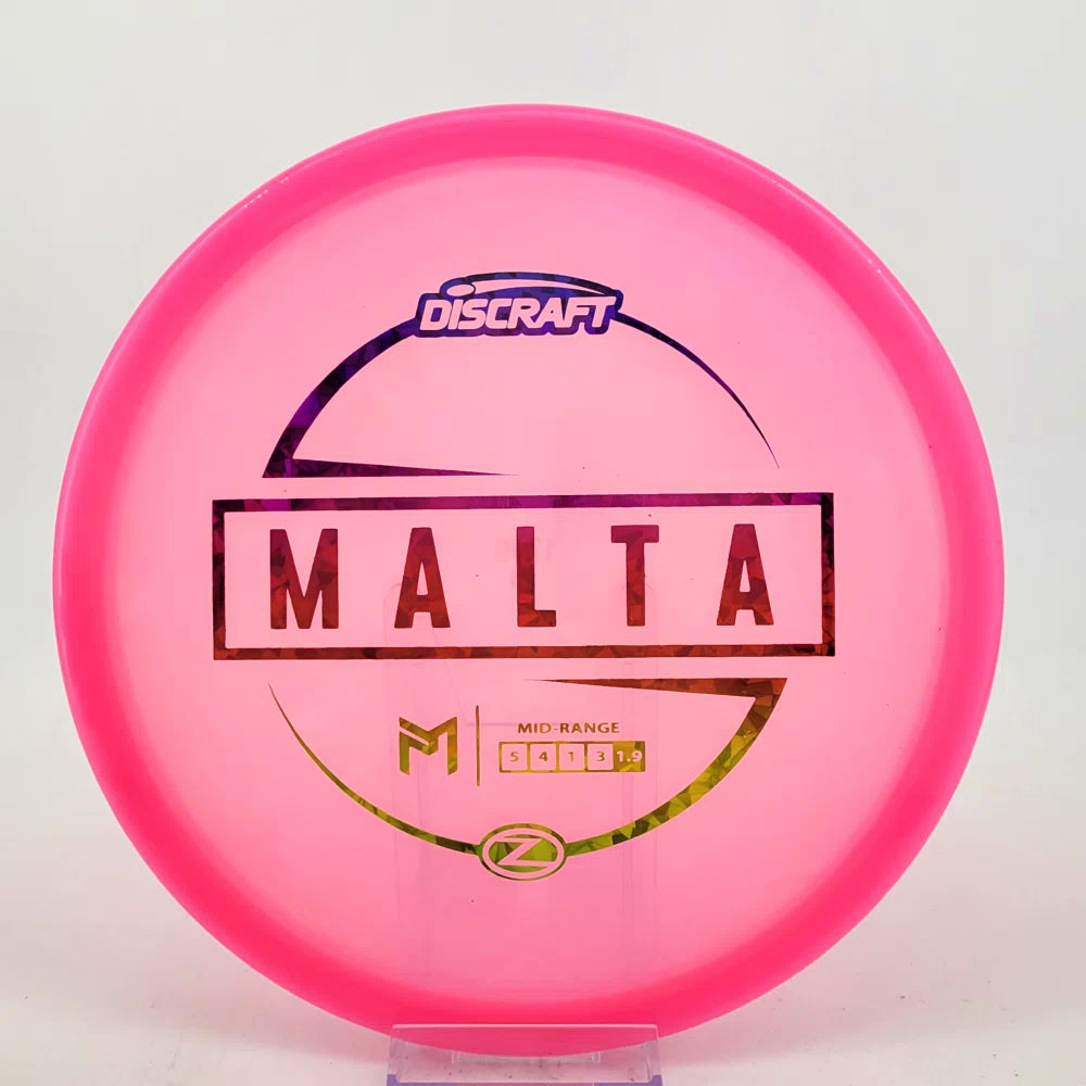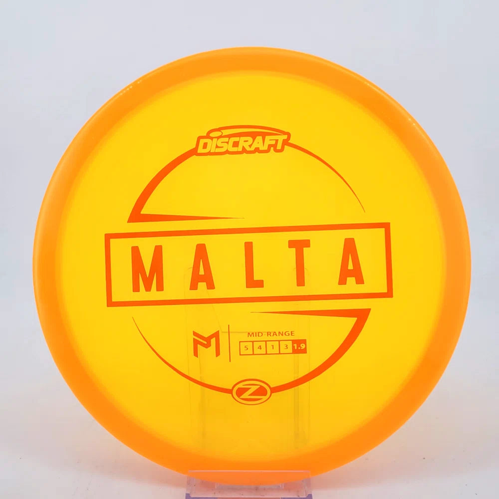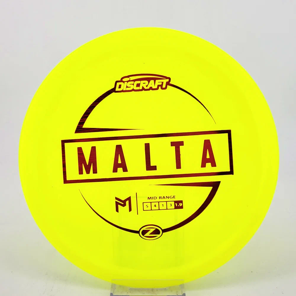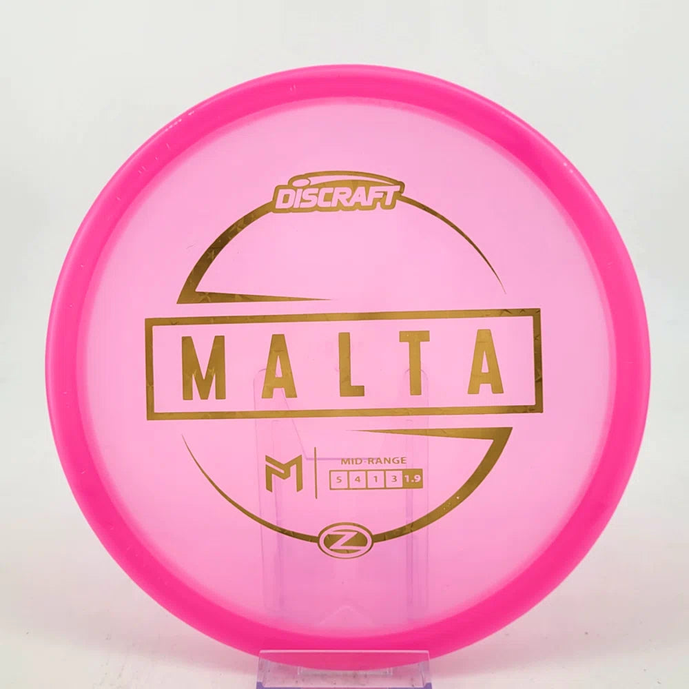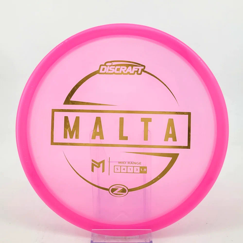 The Malta is Paul McBeth's 4th disc, an overstable midrange. The Malta has a strong and controllable flight. It has a similar feel and flight to the Zone, but having the distance and trustworthiness as a Buzzz. The Diameter is slightly bigger than a Zone, but not as wide as a full size wide-diameter mid range.