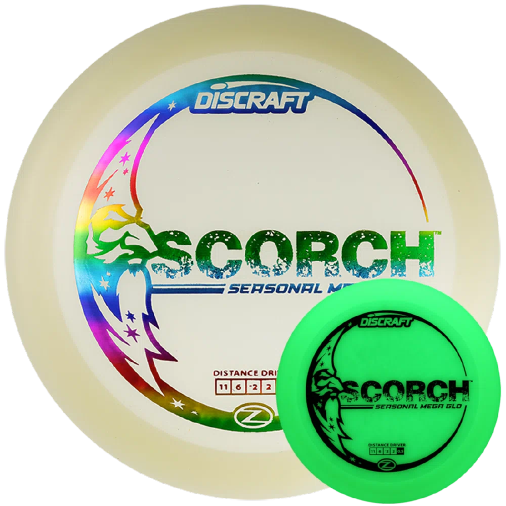 The Scorch brings explosive distance with a controllable understable-to-stable flight, making it a go-to driver for shaping long turnover lines and big hyzer-flips. It offers maximum glide and sneaky distance potential, giving players effortless power that holds the line before it fades. Now in Mega Glo, the Scorch becomes even more versatile — ready to light up your longest shots well after the sun goes down!