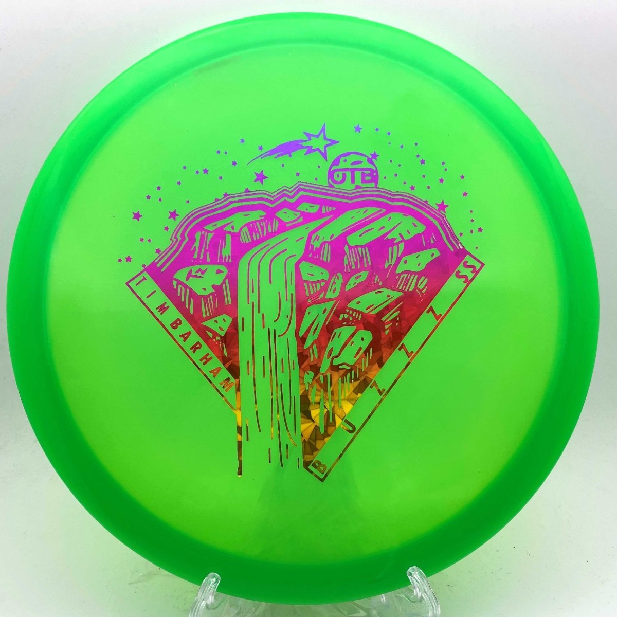 This is the Tim Barham Buzzz SS, a special Glo Z run just for him! Tim Barham is one of the best woods players in the game and he loves throwing his Buzzz SS on those tight lines. The Buzzz SS has a feel similar to a Buzzz but with a more understable flight. It gets some nice flip and glide perfect for navigating those long tight hallways in the woods. The stamp features a Tim Barham logo that was made by Kyle Coon in collaboration with Tim. This disc will help support Tim on his 2022 Tour efforts. Grab a Tim Barham Glow Z Buzzz SS today.