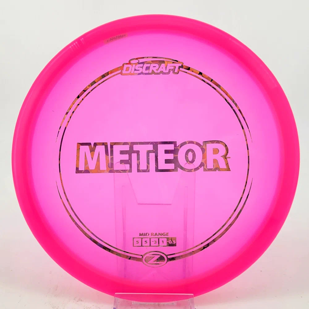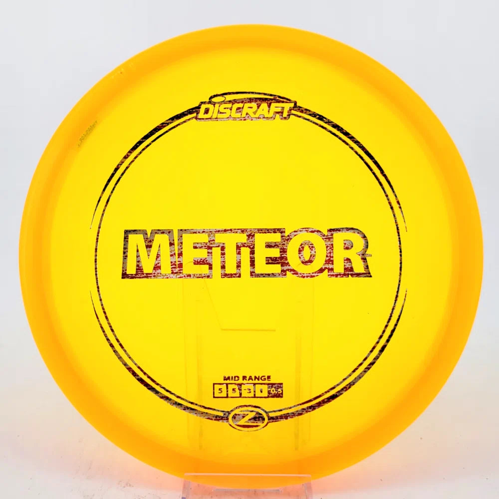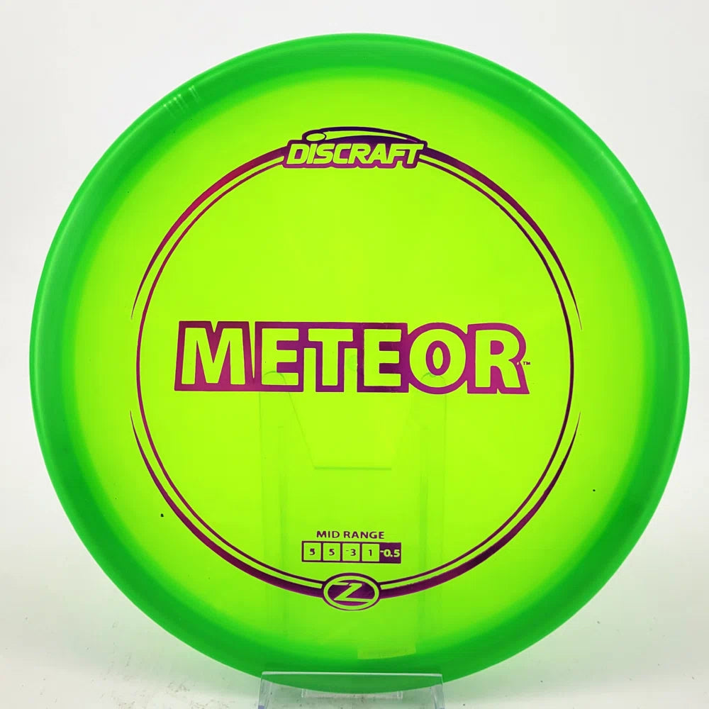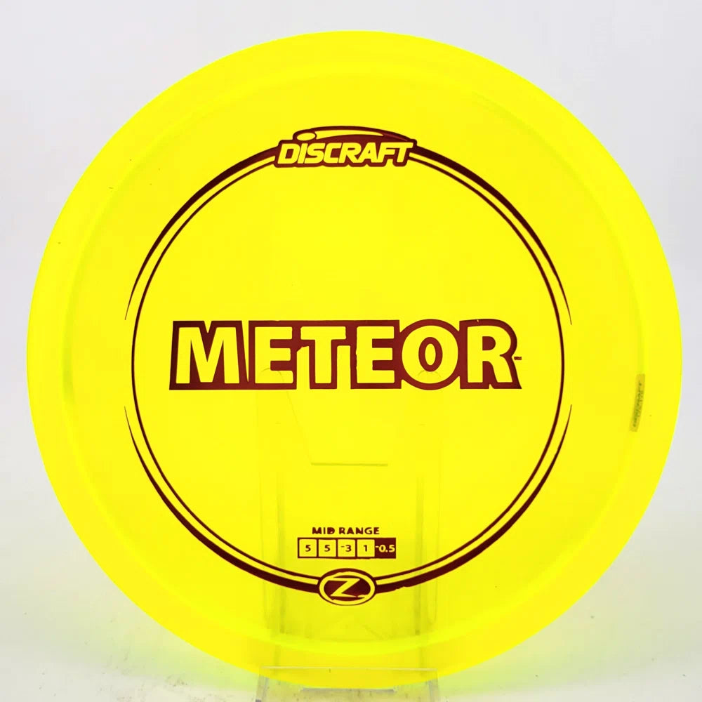 The Meteor is an understable midrange designed for glide and effortless straight flights. In Z blend, the Meteor will break in slowly into an easy turning midrange for technical control shots with the durability for a long life of consistent flight. In ESP, expect it to beat in quicker to make it a fantastic turnover or hyzerflip mid-range.