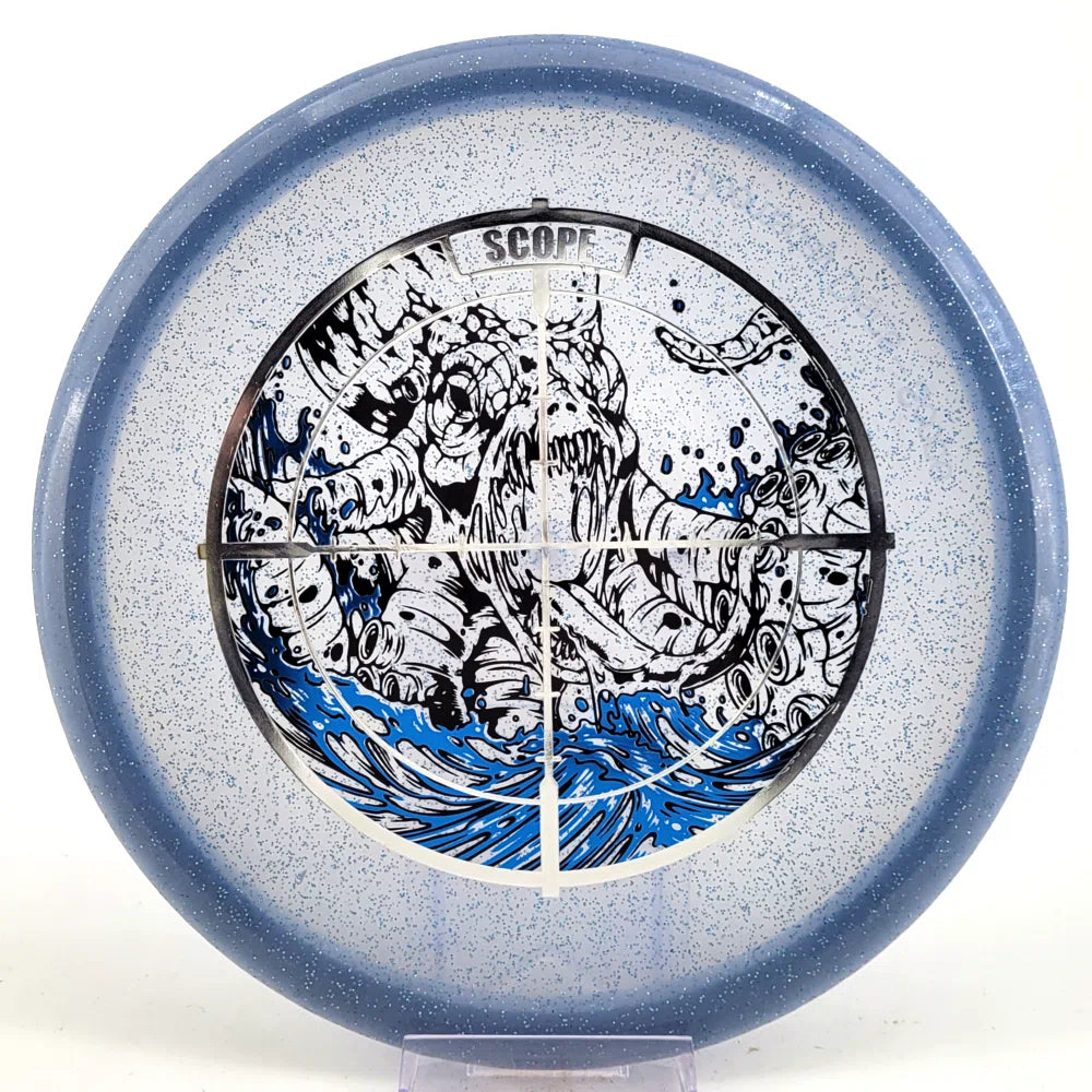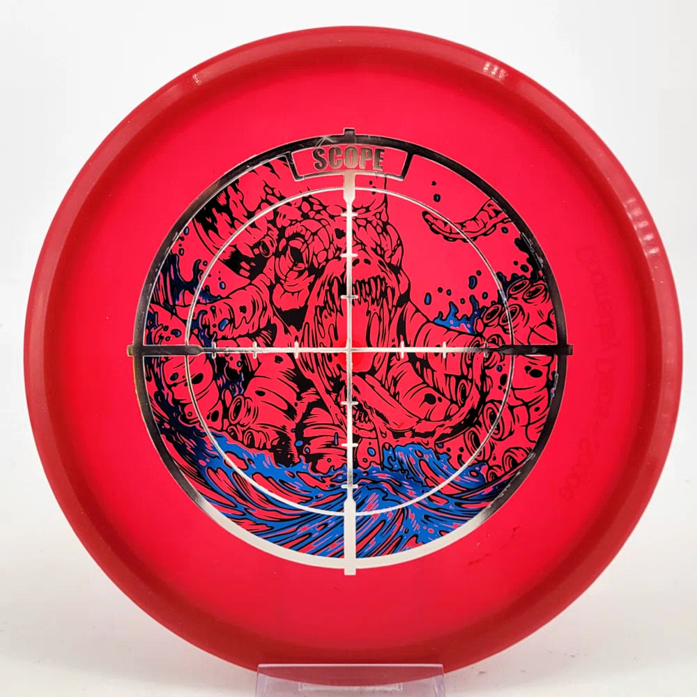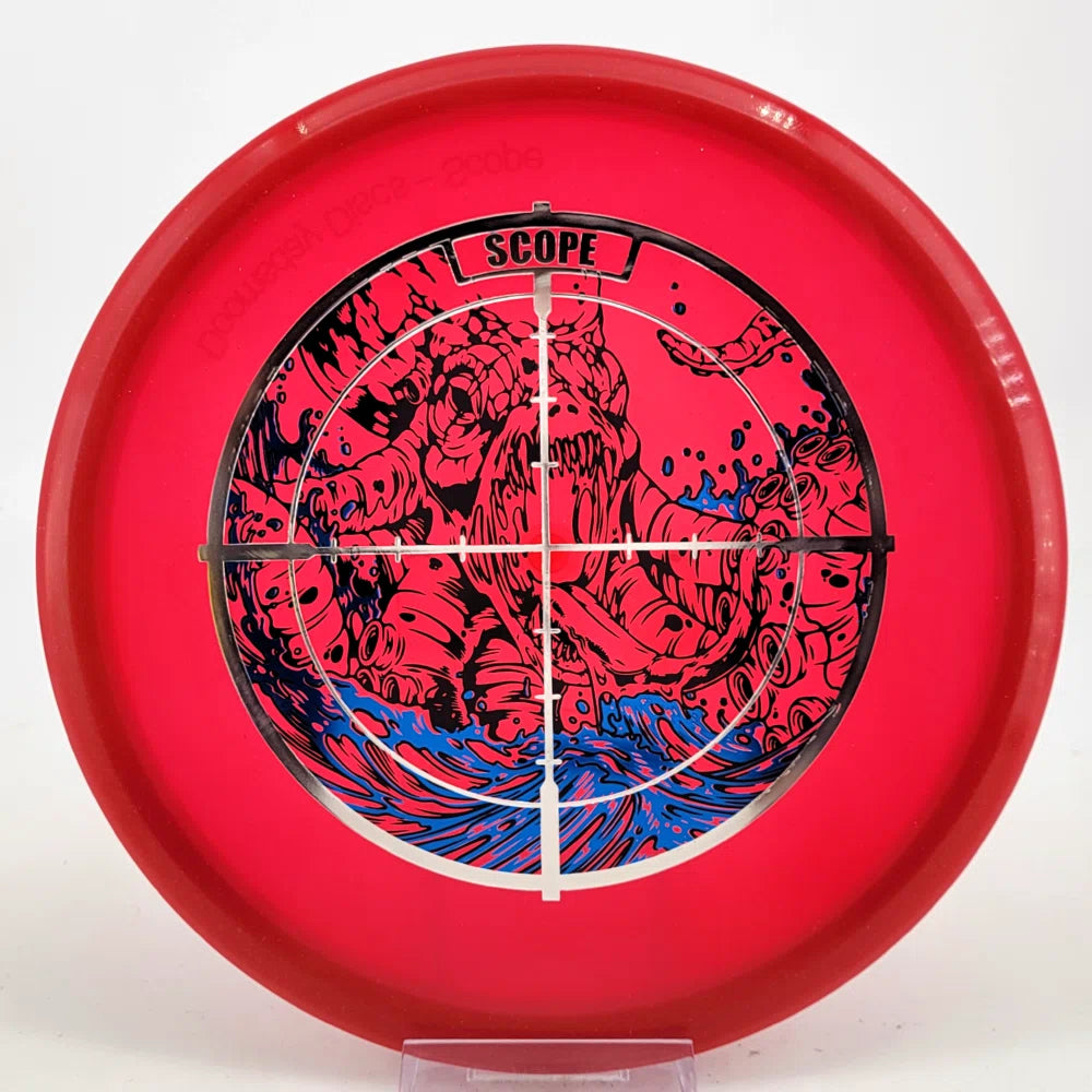 The Scope is a unique approach midrange disc that features a unique rim configuration. It was 3D modelled by Team Doomsday member "Most Average Joey." At first glance, a player might think the rim looks bizarre, but once in the hand and thrown either backhand or forehand, it feels smooth upon release and dependably follows its flight path. The Scope holds a straight line with a slight fade to finish, making disc placement easy.